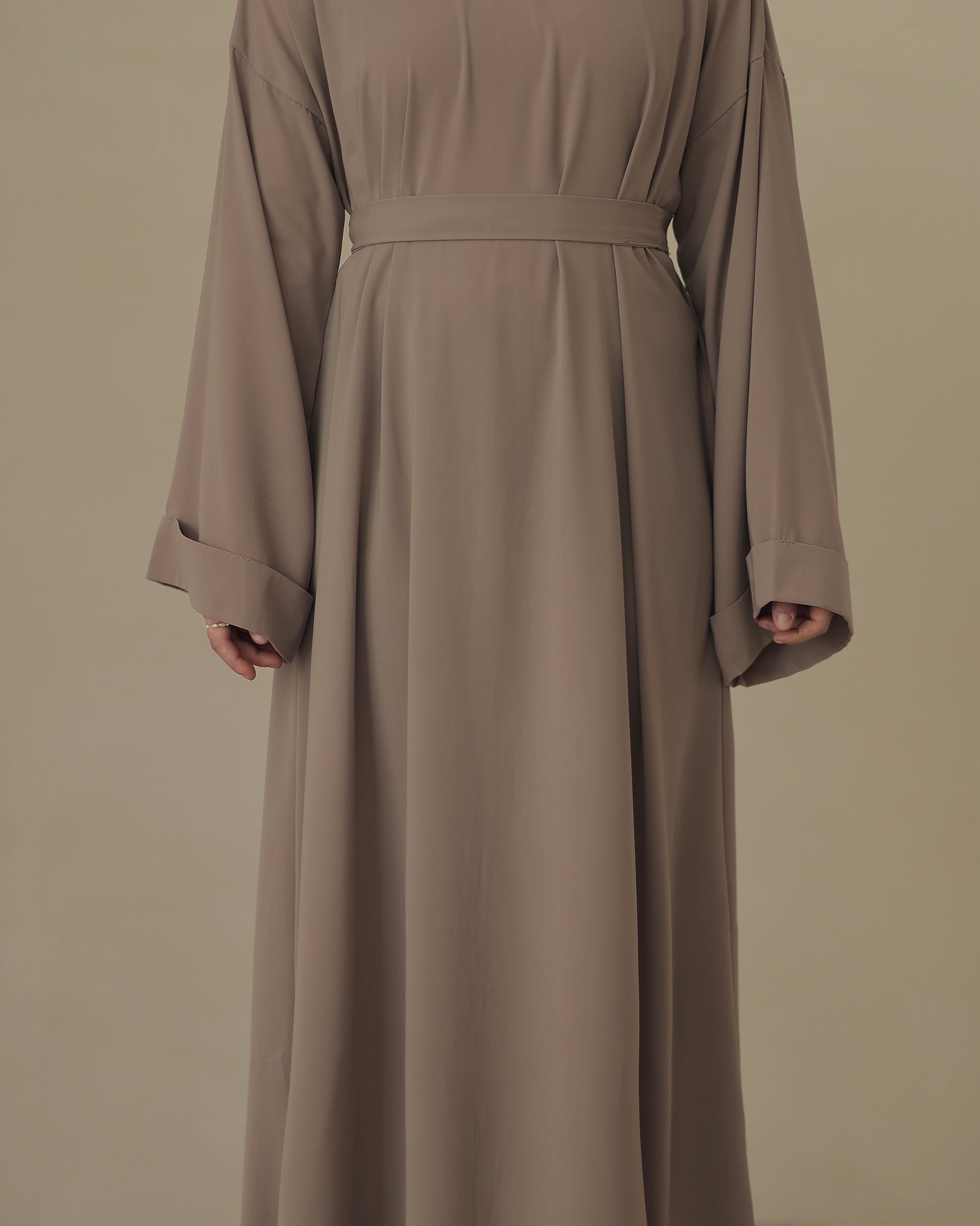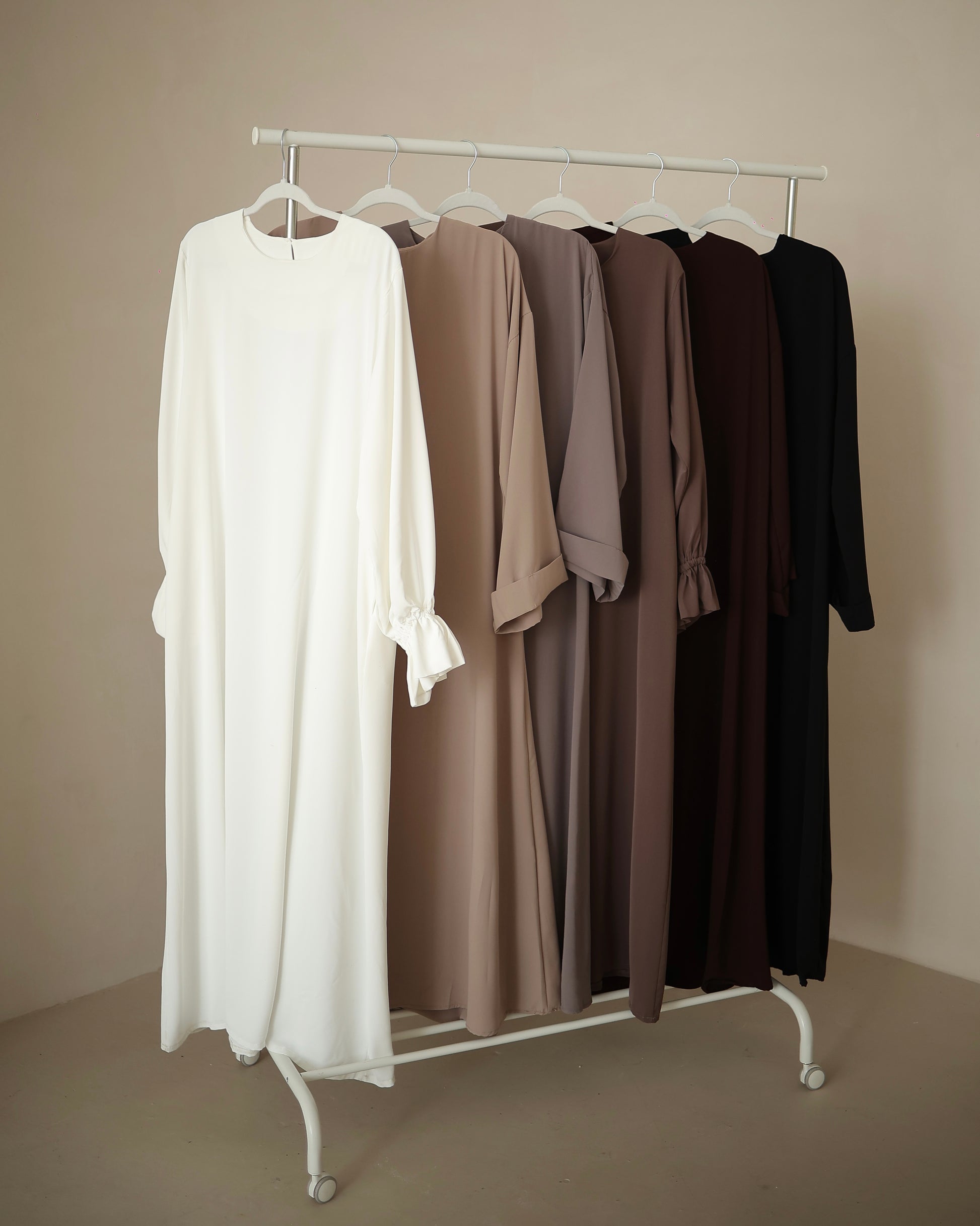 An absolute must-have! Our timeless basic abaya is made from luxurious Medina silk for an elegant and comfortable feel. With a length of 143cm, it offers a slim silhouette and maximum coverage. This versatile piece is perfect for every occasion and can be effortlessly combined with various accessories to underline your personal style. Add a timeless essential to your wardrobe!