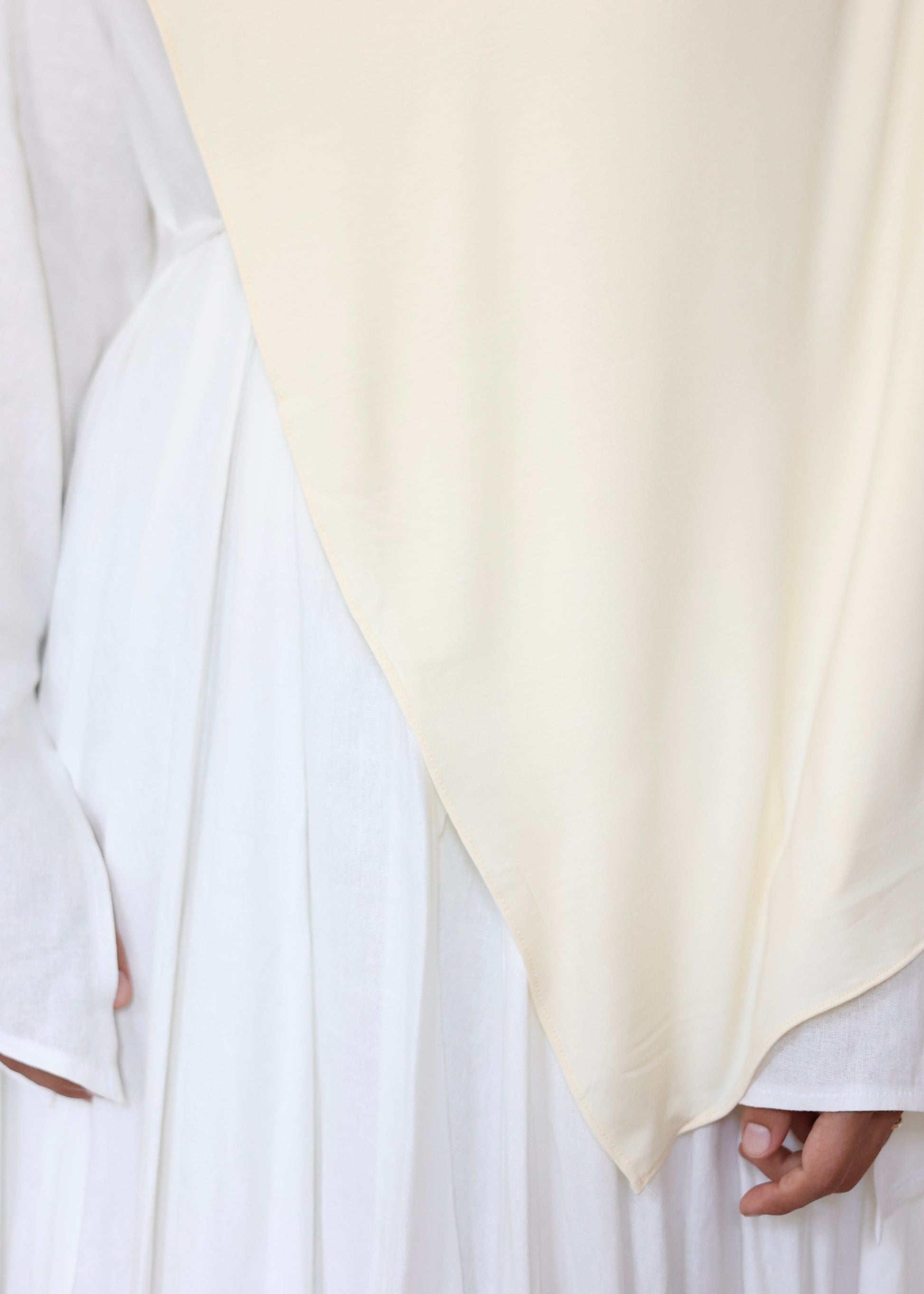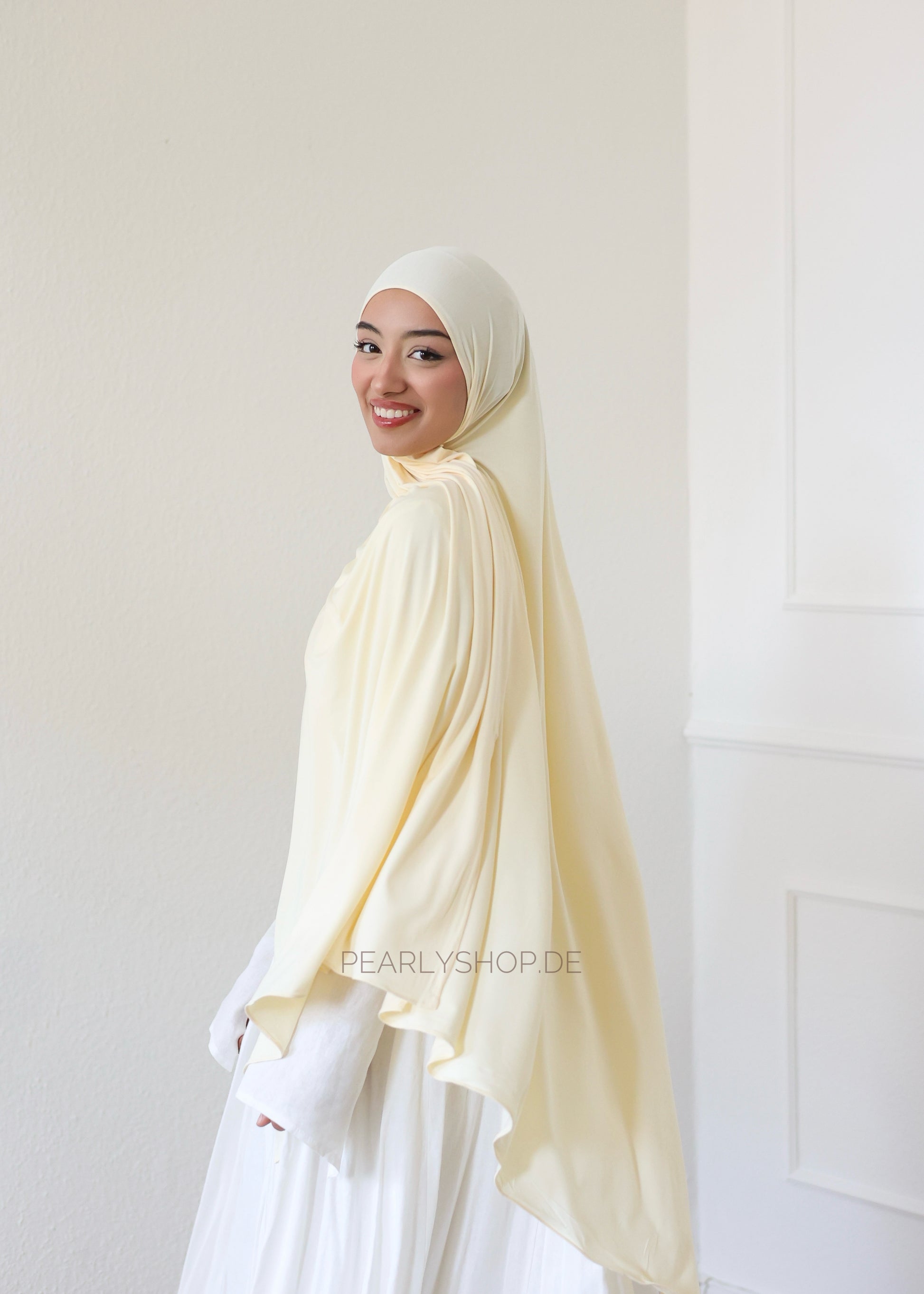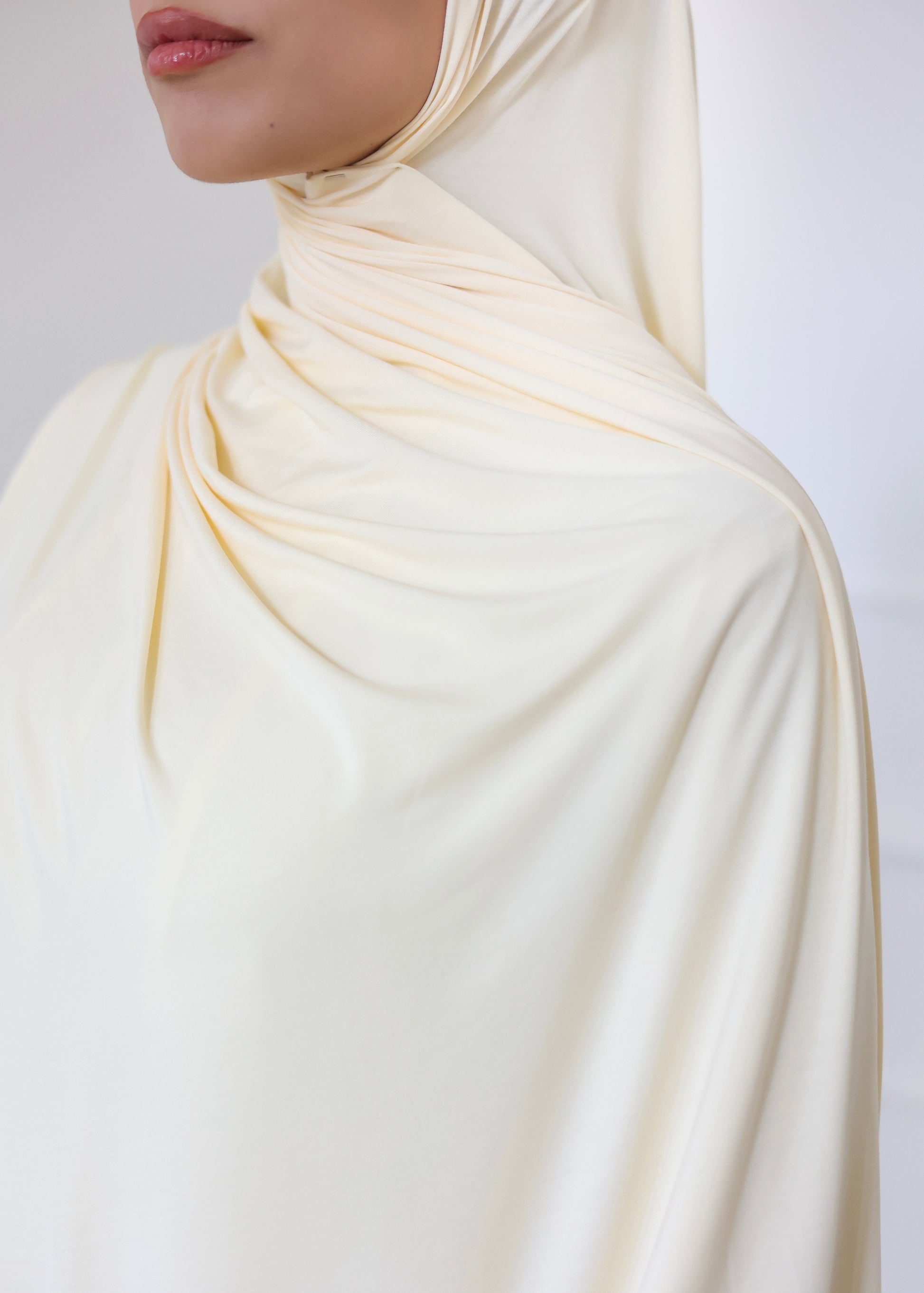 Die Bambusfaser ist von Natur aus atmungsaktiv, feuchtigkeitsregulierend und hypoallergen, was den Hijab besonders angenehm für empfindliche Haut macht. Dank des leichten Stretch-Anteils sitzt er sicher, ohne einzuengen, und sorgt gleichzeitig für Bewegungsfreiheit und Halt, ganz ohne Verrutschen.