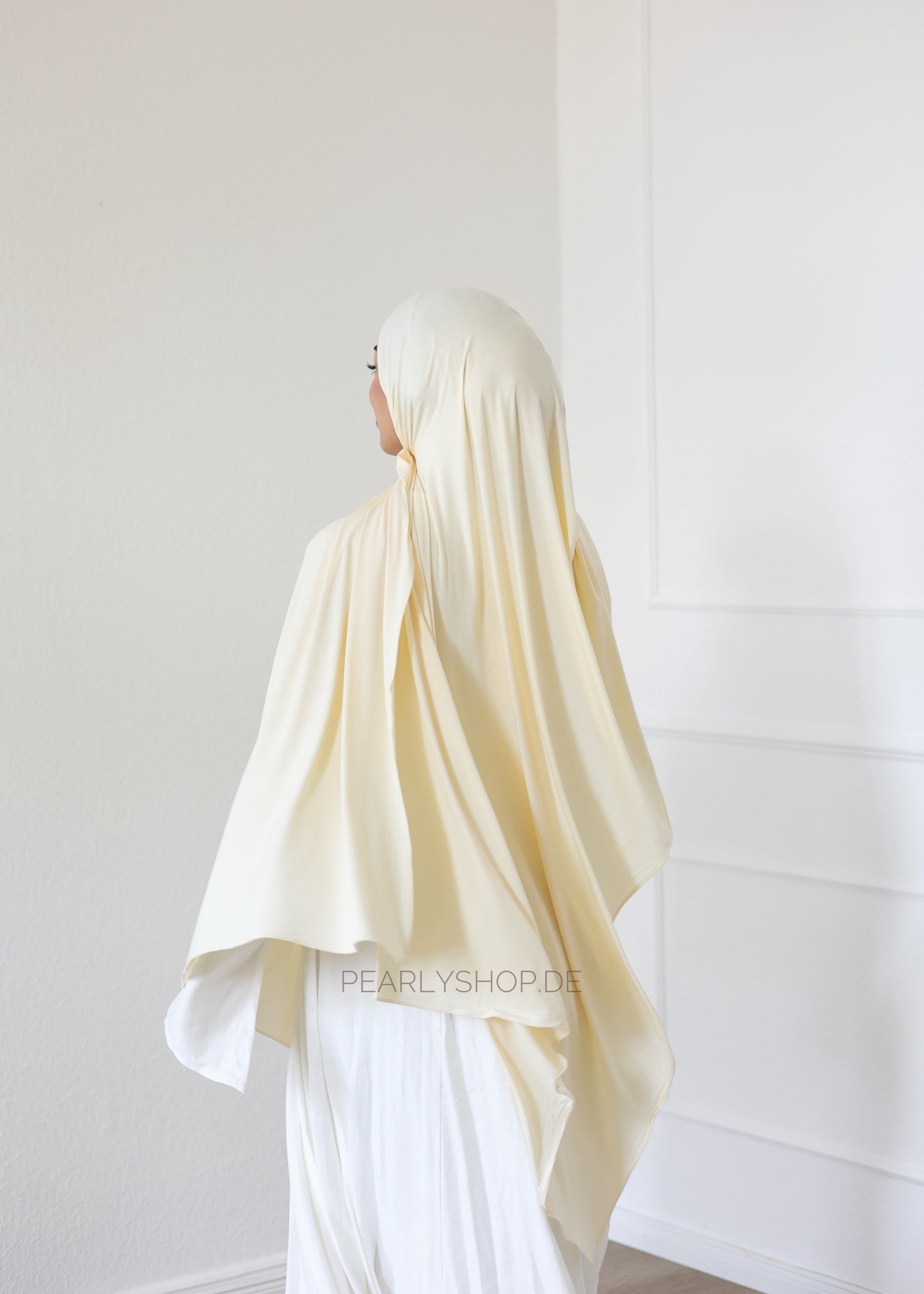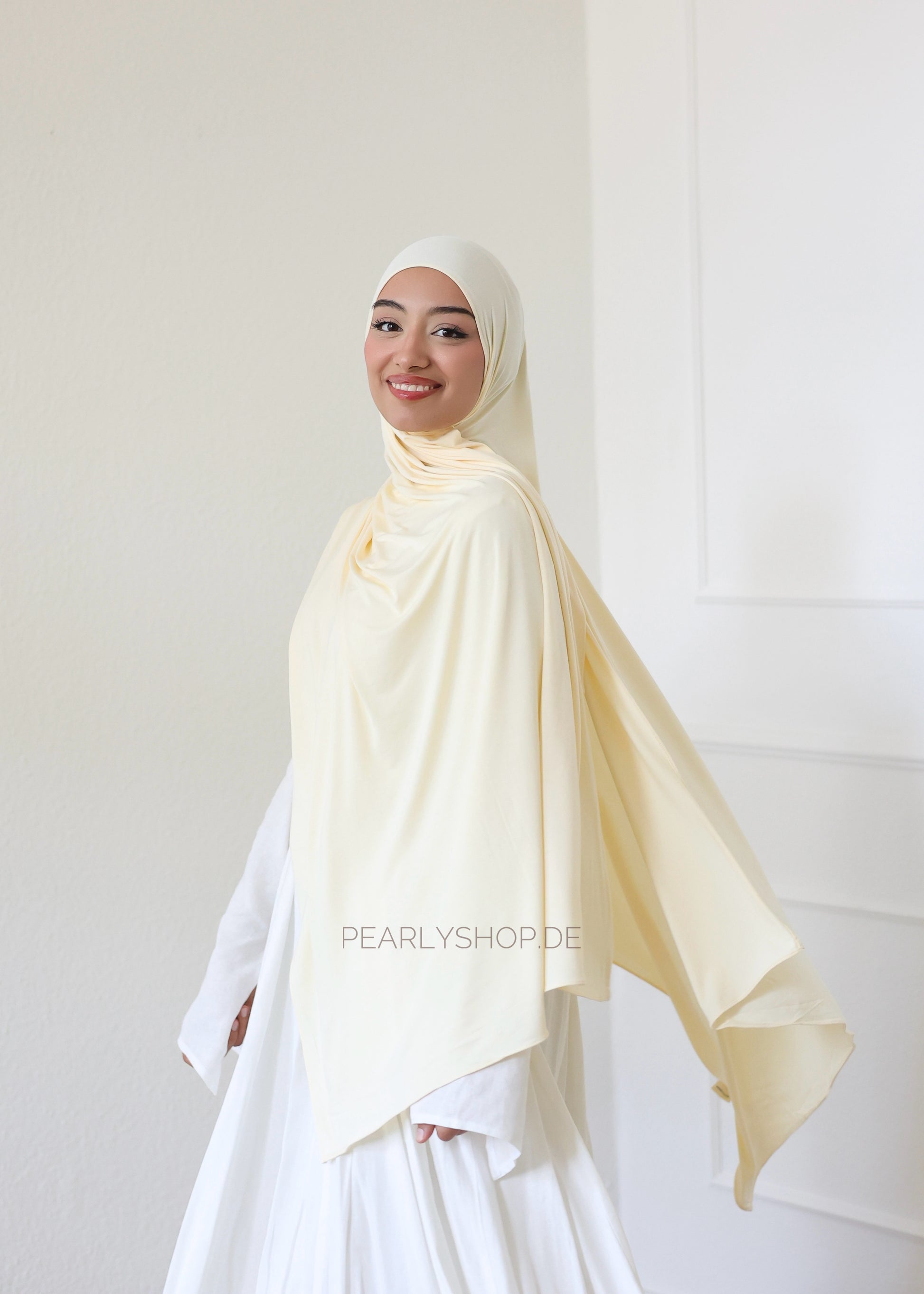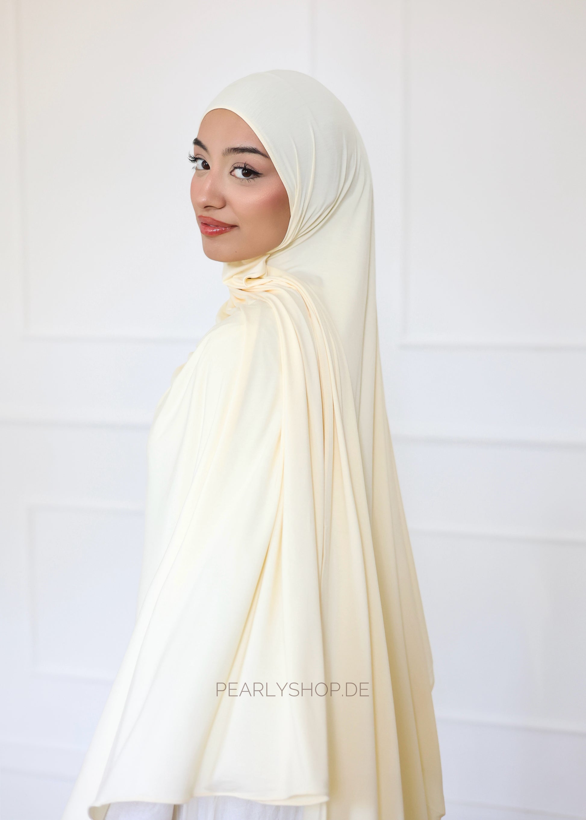 Die Bambusfaser ist von Natur aus atmungsaktiv, feuchtigkeitsregulierend und hypoallergen, was den Hijab besonders angenehm für empfindliche Haut macht. Dank des leichten Stretch-Anteils sitzt er sicher, ohne einzuengen, und sorgt gleichzeitig für Bewegungsfreiheit und Halt, ganz ohne Verrutschen.