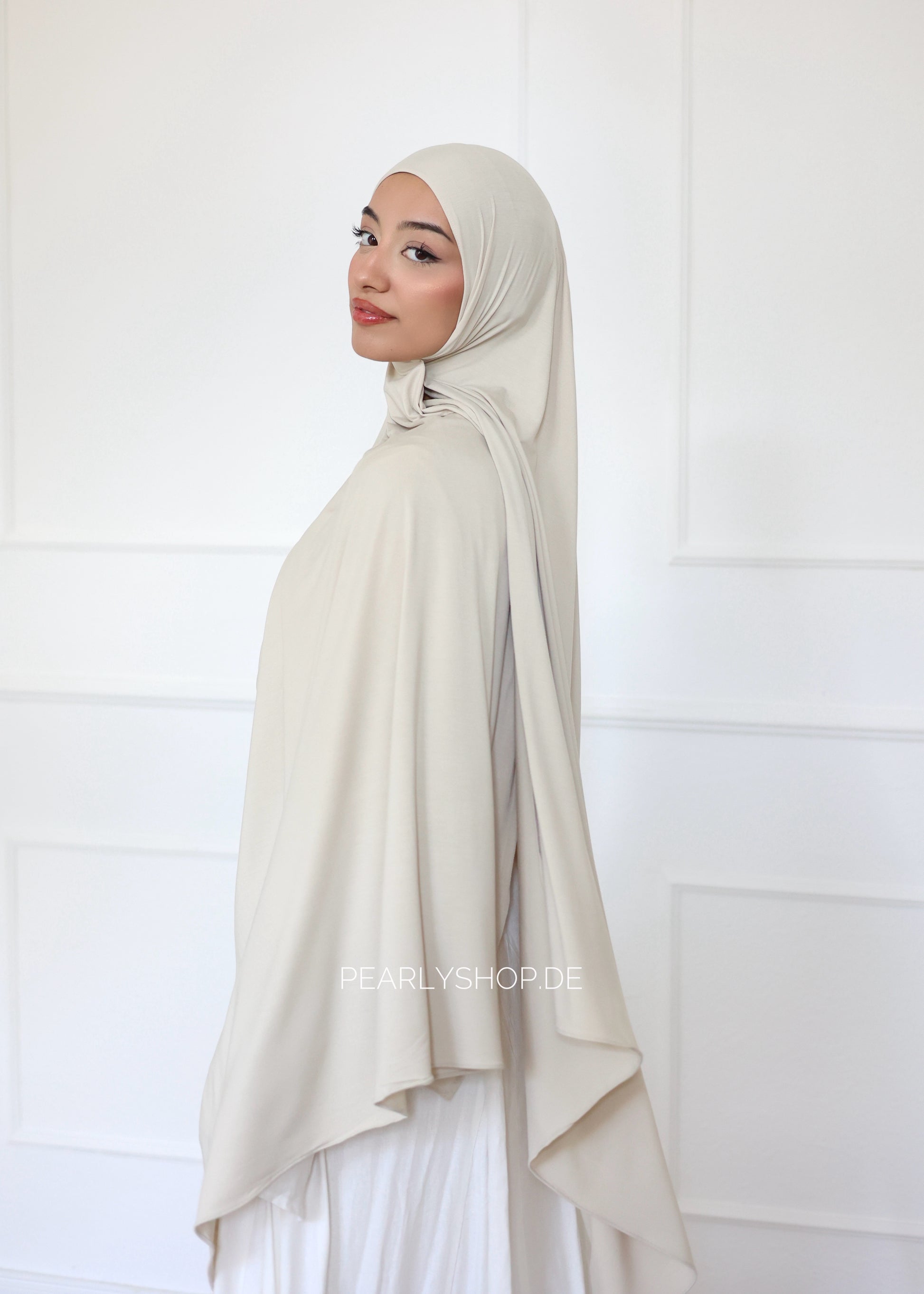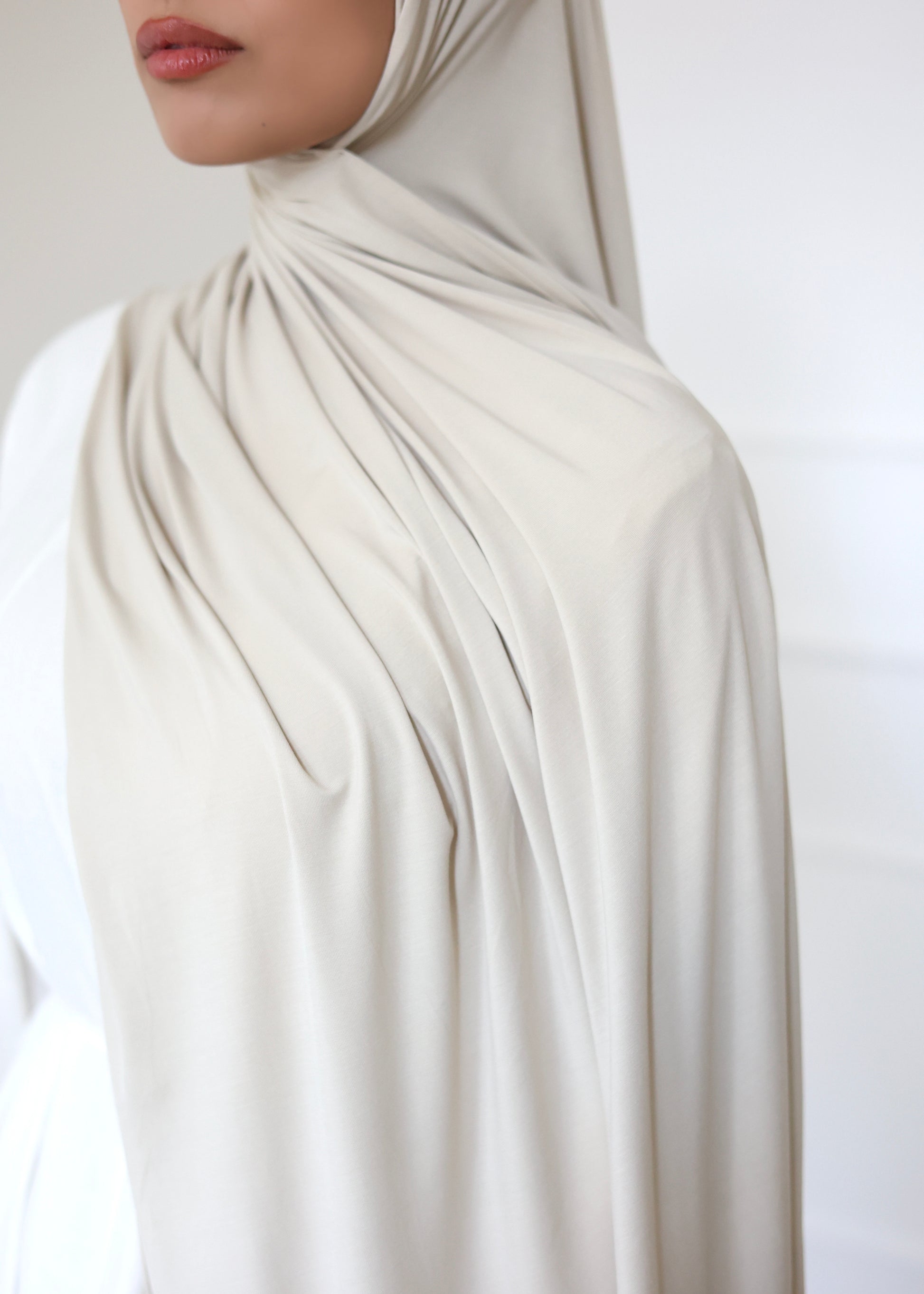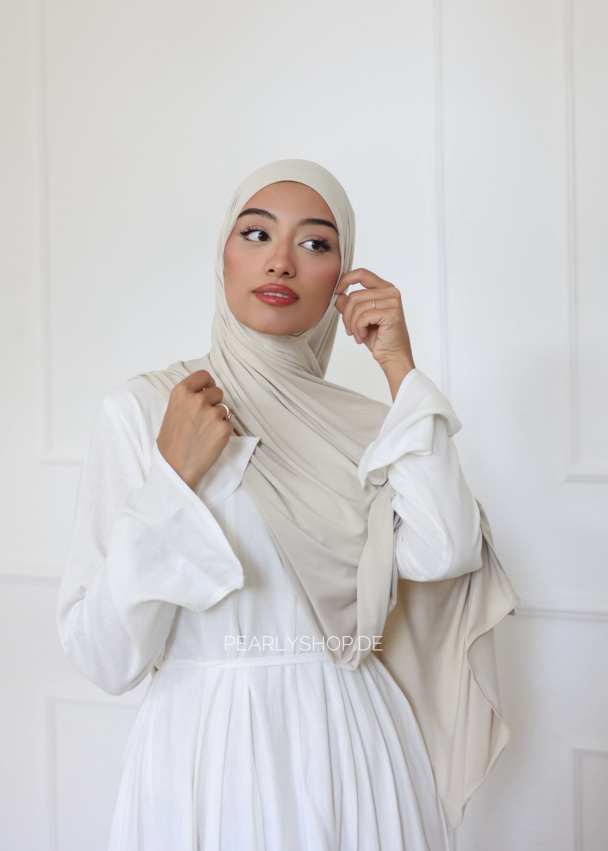 Die Bambusfaser ist von Natur aus atmungsaktiv, feuchtigkeitsregulierend und hypoallergen, was den Hijab besonders angenehm für empfindliche Haut macht. Dank des leichten Stretch-Anteils sitzt er sicher, ohne einzuengen, und sorgt gleichzeitig für Bewegungsfreiheit und Halt, ganz ohne Verrutschen.