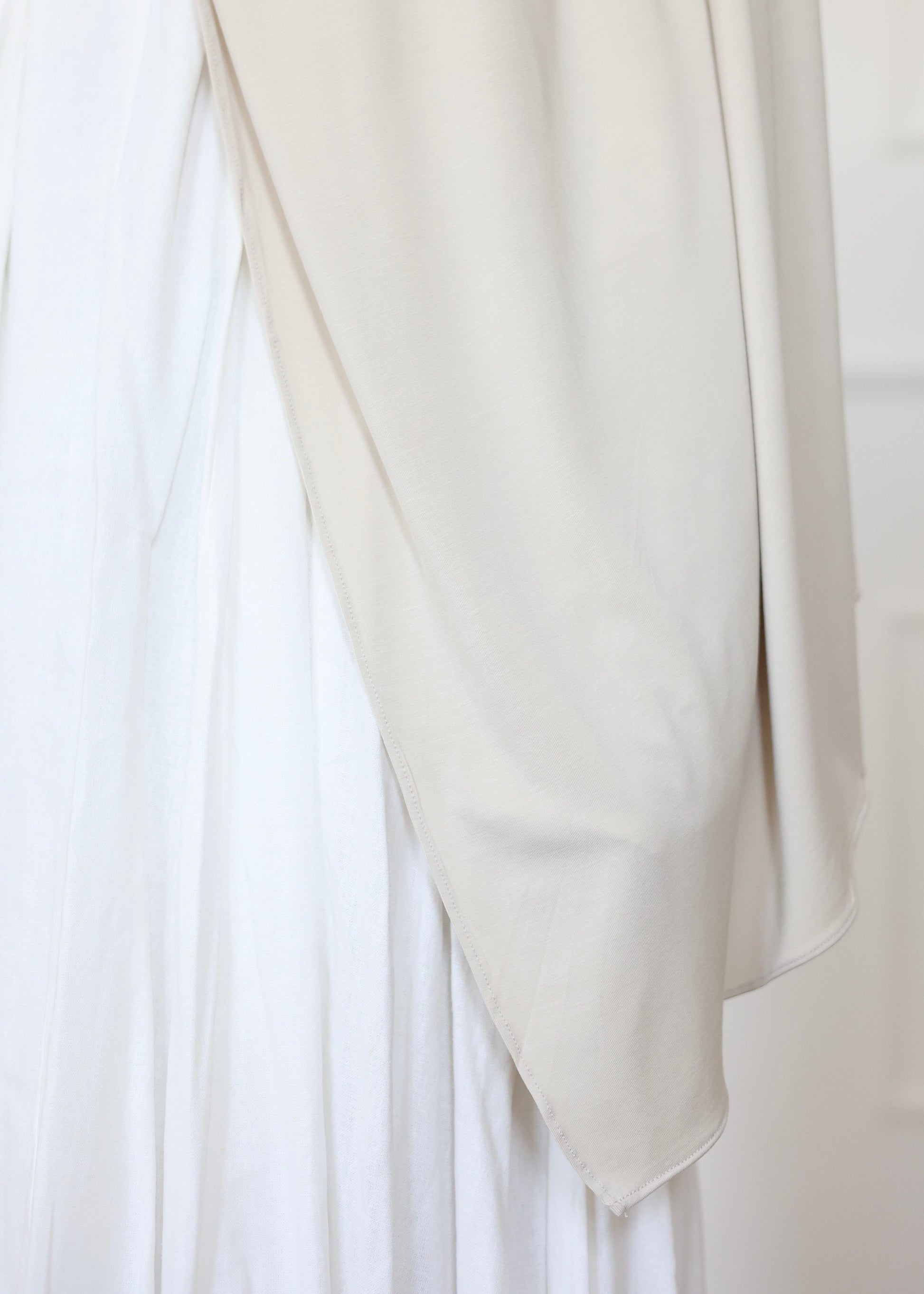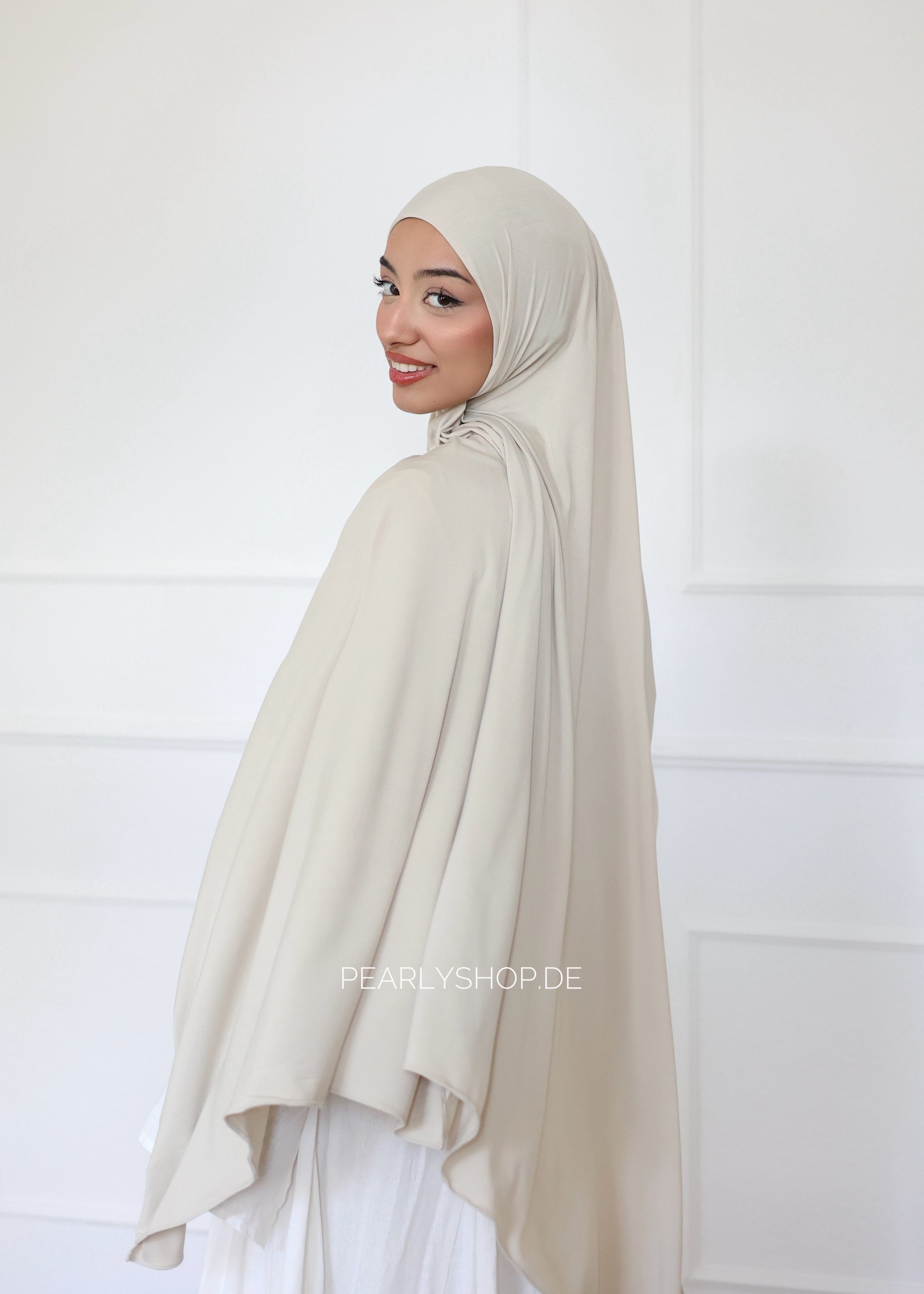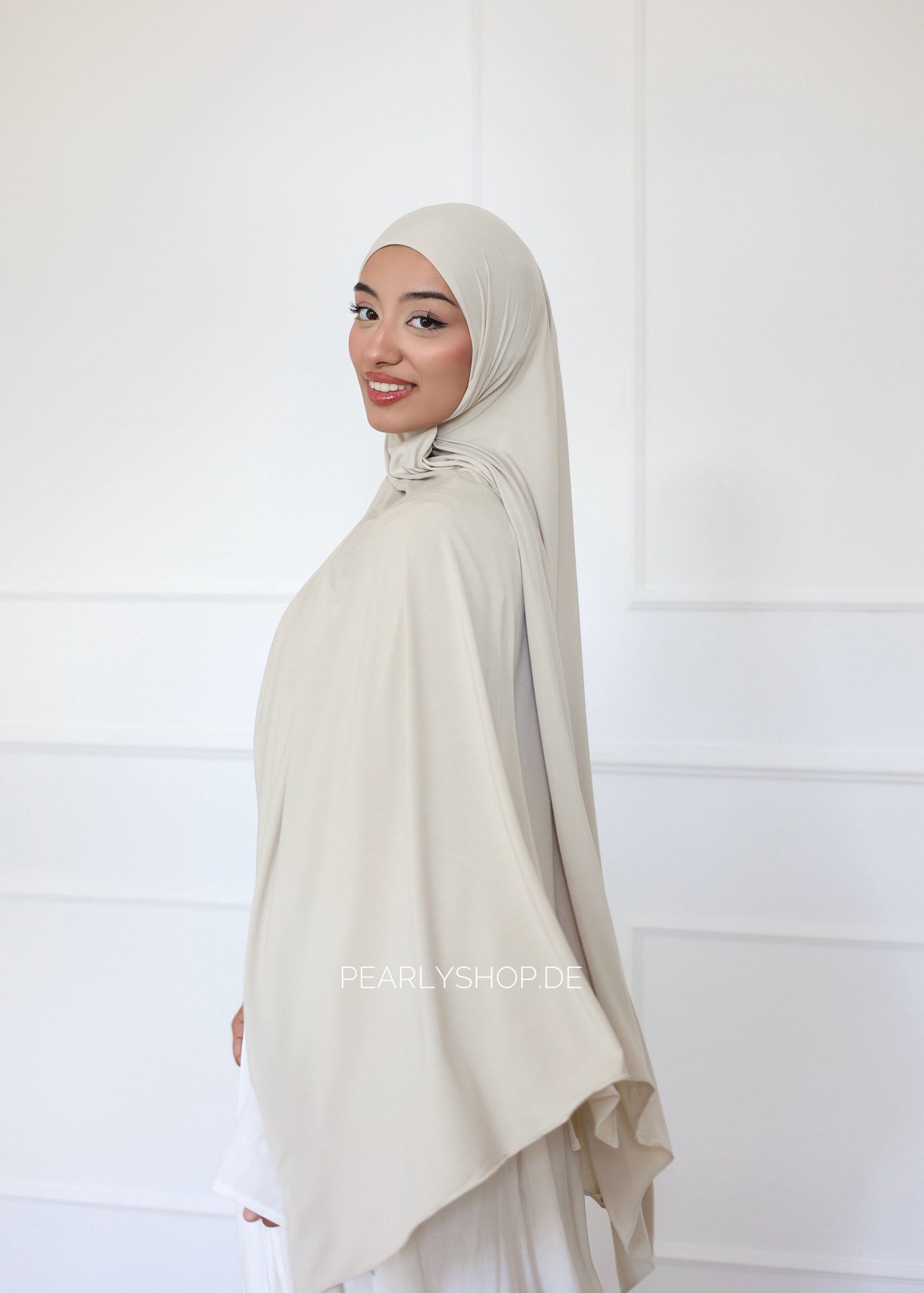 Die Bambusfaser ist von Natur aus atmungsaktiv, feuchtigkeitsregulierend und hypoallergen, was den Hijab besonders angenehm für empfindliche Haut macht. Dank des leichten Stretch-Anteils sitzt er sicher, ohne einzuengen, und sorgt gleichzeitig für Bewegungsfreiheit und Halt, ganz ohne Verrutschen.
