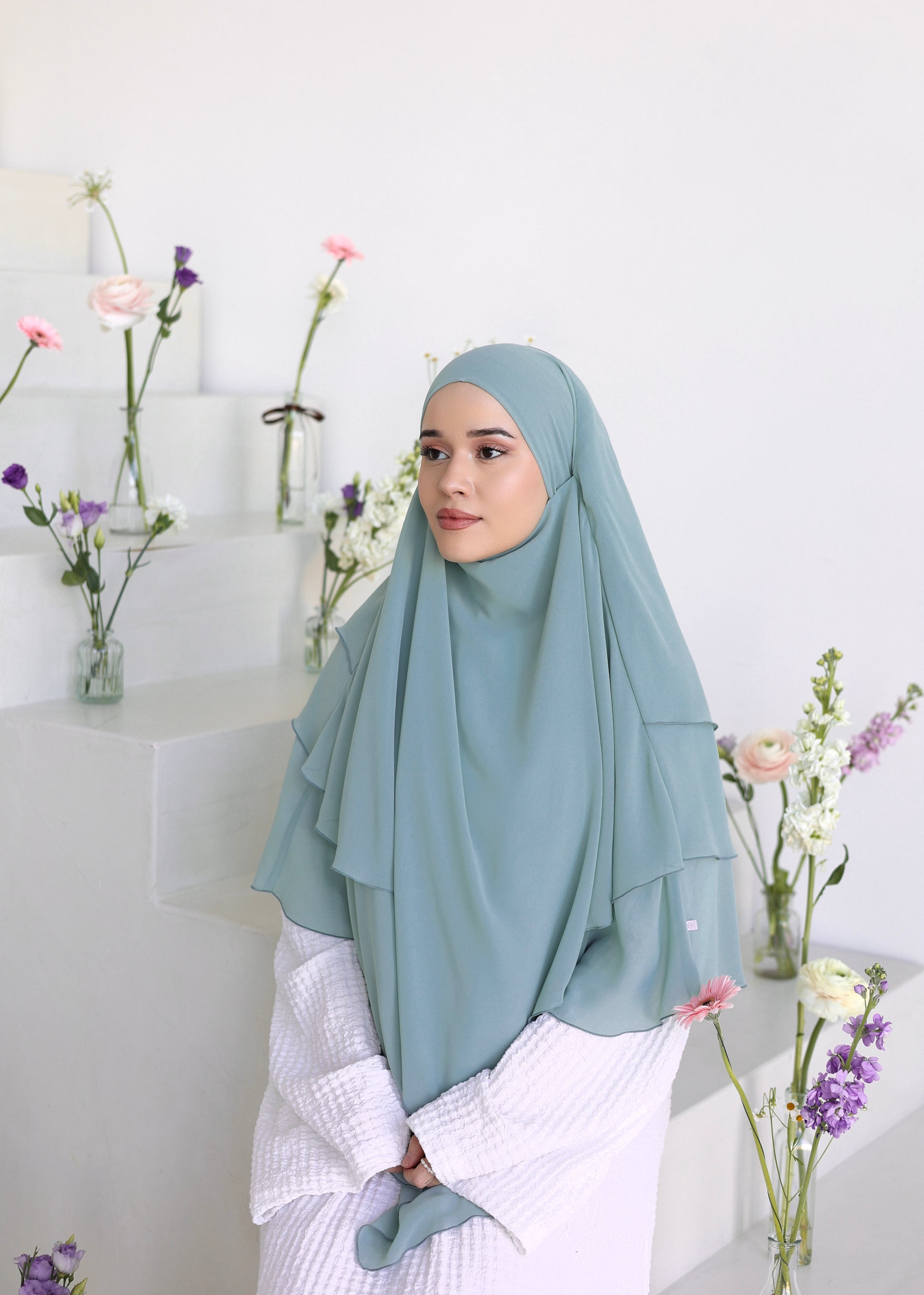 Unser dreilagiger Chiffon Khimar verkörpert schlichte Eleganz mit maximaler Leichtigkeit. Hergestellt aus hochwertigem Chiffon und vernäht mit größter Präzision, bietet er eine luxuriöse Fülle und einen schönen Fall - und ist dabei ultralcht auf deinem Kopf! Die großzügige Länge und der weiche Griff sorgen für maximalen Tragekomfort bei optimaler Bedeckung. Mit seinem romantischen Design ist dieser Khimar perfekt für jeden Anlass und verleiht deinem Gesicht die schönste Umrandung! Probier‘s unbedingt aus - wir LIEBEN es!