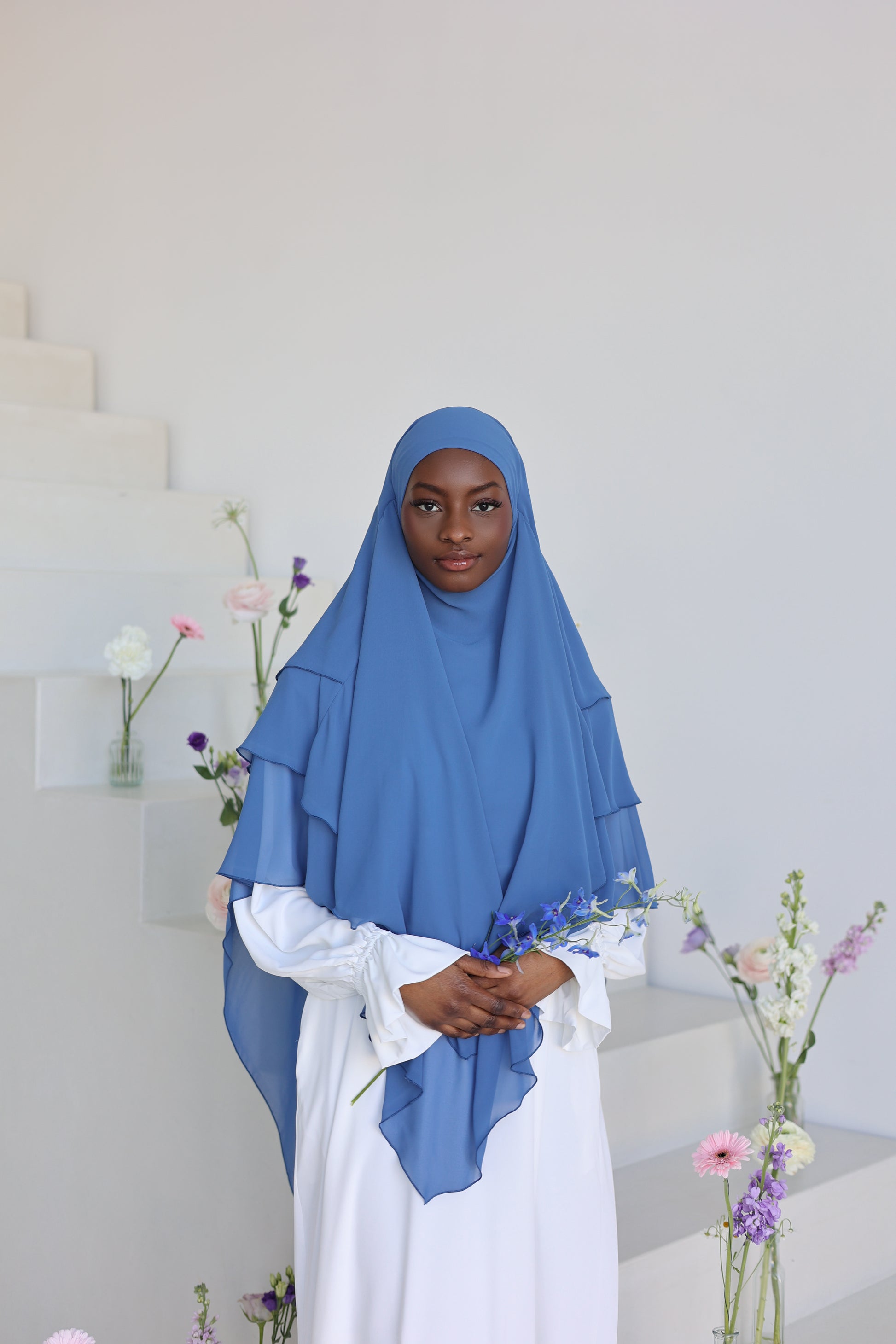 Unser dreilagiger Chiffon Khimar verkörpert schlichte Eleganz mit maximaler Leichtigkeit. Hergestellt aus hochwertigem Chiffon und vernäht mit größter Präzision, bietet er eine luxuriöse Fülle und einen schönen Fall - und ist dabei ultralcht auf deinem Kopf! Die großzügige Länge und der weiche Griff sorgen für maximalen Tragekomfort bei optimaler Bedeckung. Mit seinem romantischen Design ist dieser Khimar perfekt für jeden Anlass und verleiht deinem Gesicht die schönste Umrandung! Probier‘s unbedingt aus - wir LIEBEN es!