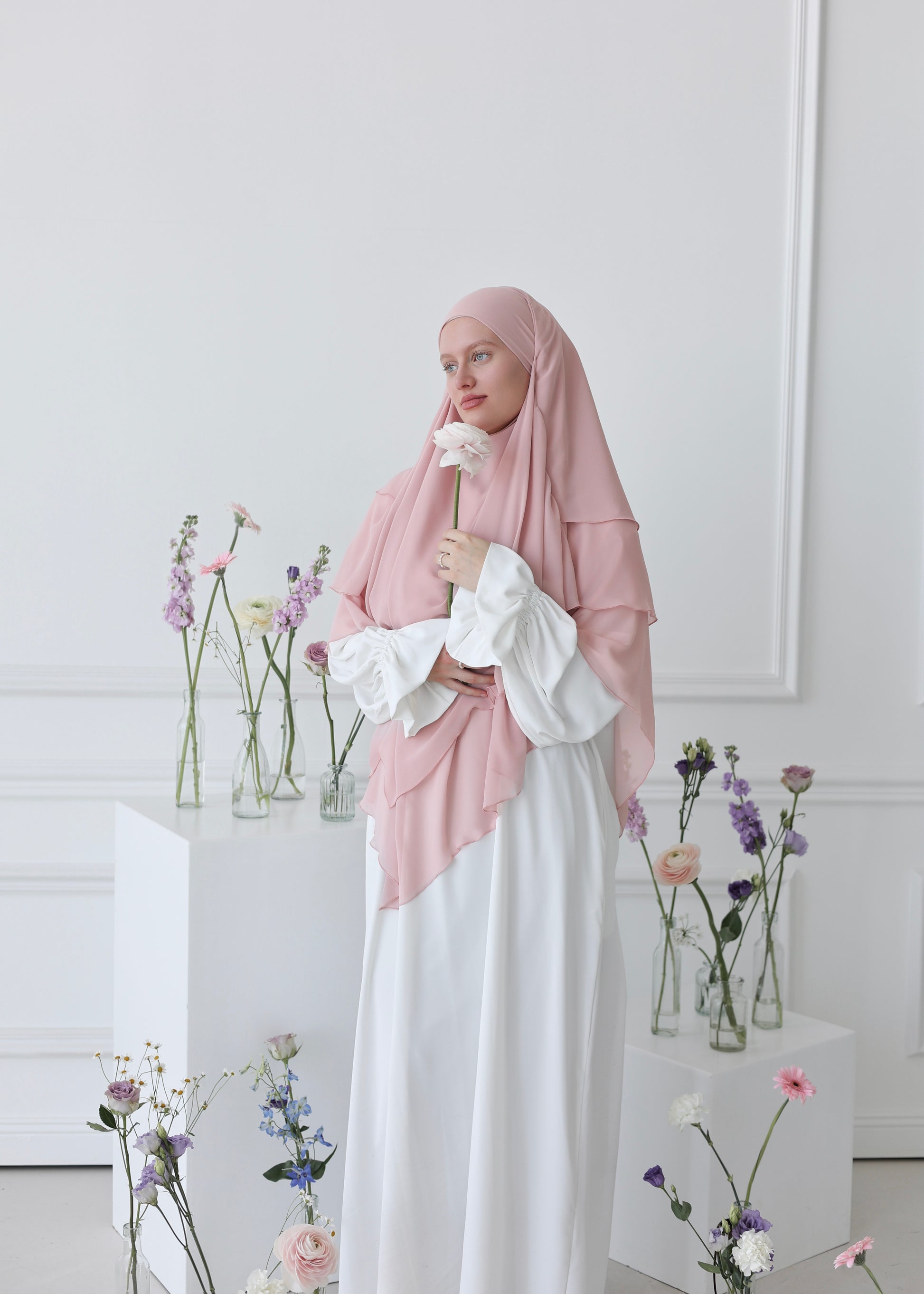 Unser dreilagiger Chiffon Khimar verkörpert schlichte Eleganz mit maximaler Leichtigkeit. Hergestellt aus hochwertigem Chiffon und vernäht mit größter Präzision, bietet er eine luxuriöse Fülle und einen schönen Fall - und ist dabei ultralcht auf deinem Kopf! Die großzügige Länge und der weiche Griff sorgen für maximalen Tragekomfort bei optimaler Bedeckung. Mit seinem romantischen Design ist dieser Khimar perfekt für jeden Anlass und verleiht deinem Gesicht die schönste Umrandung! Probier‘s unbedingt aus - wir LIEBEN es!
