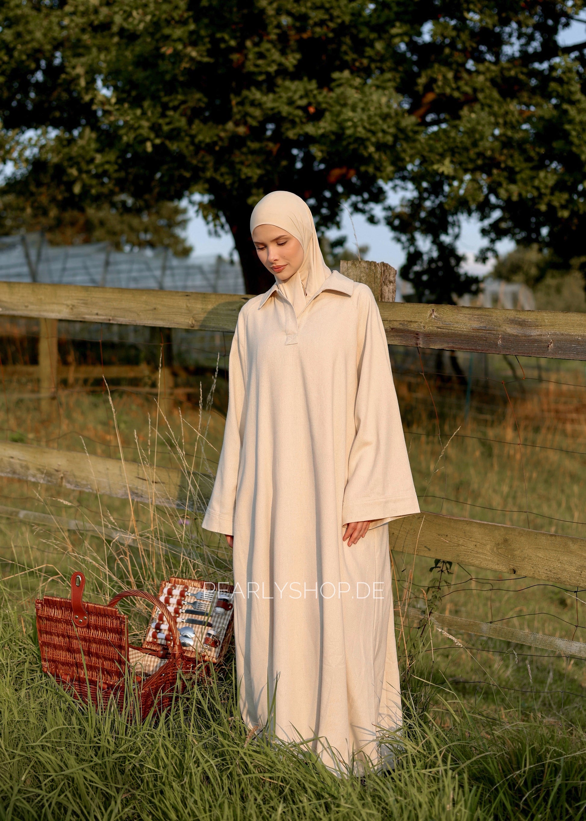 Diese Abaya ist so gemütlich, du wirst es lieben! Der Schnitt ist derselbe wie unsere Debul Abaya - der Stoff allerdings viel dünner und perfekt für wärmere Tage!