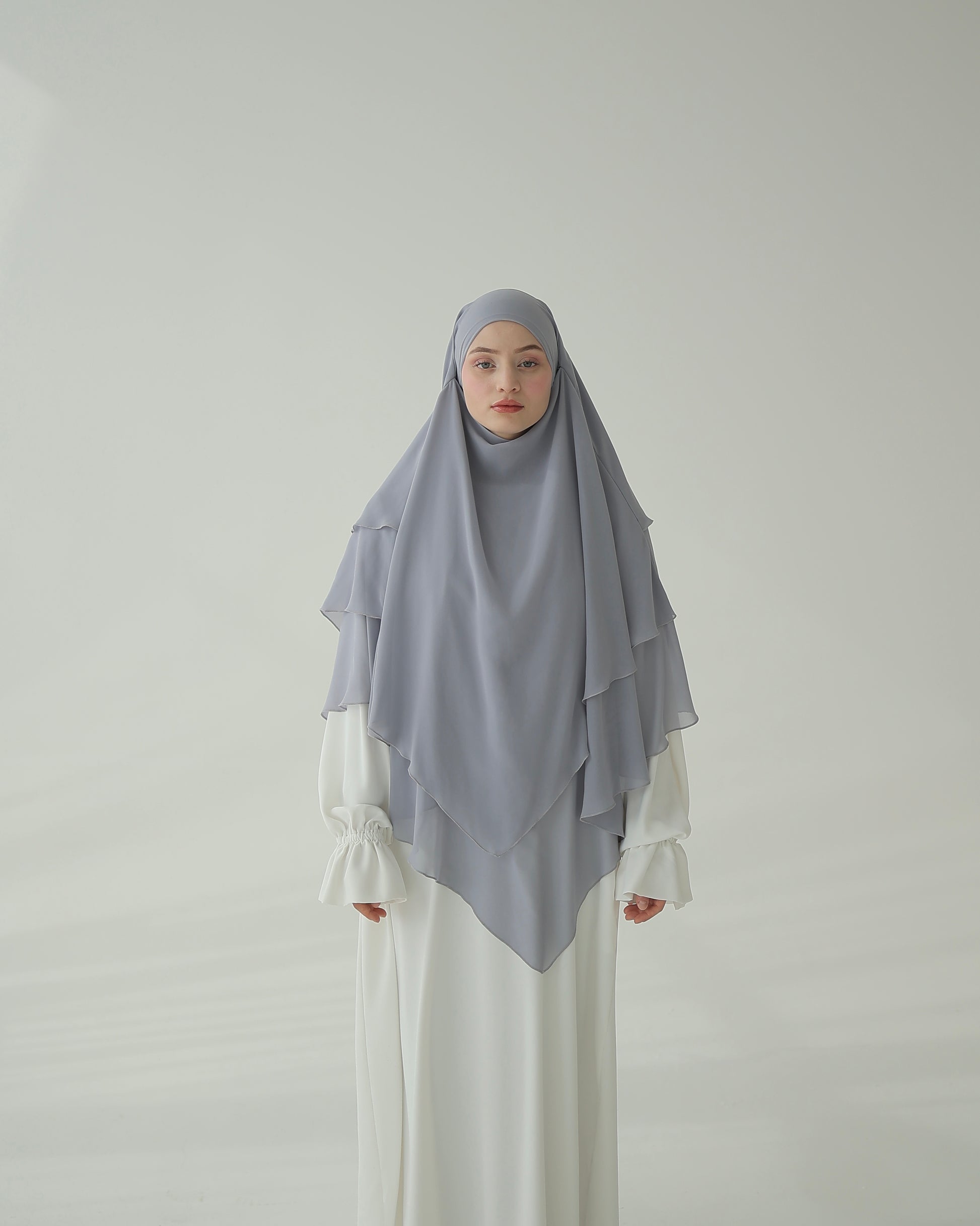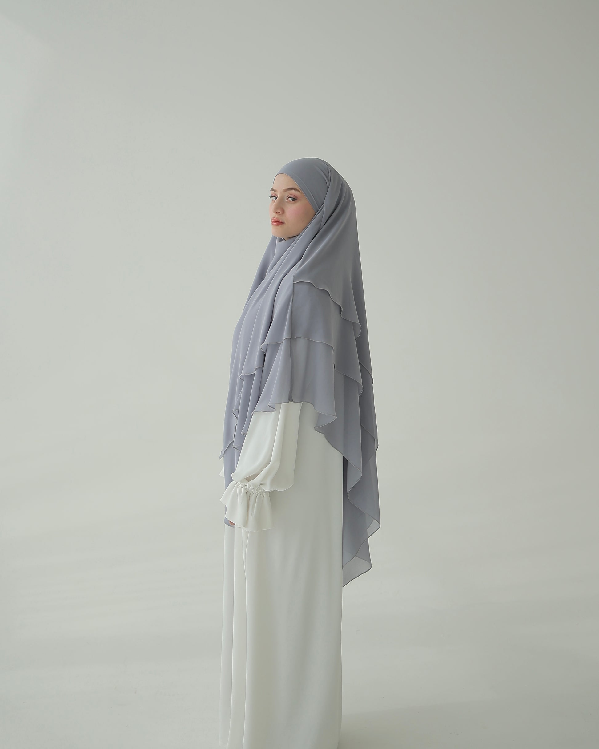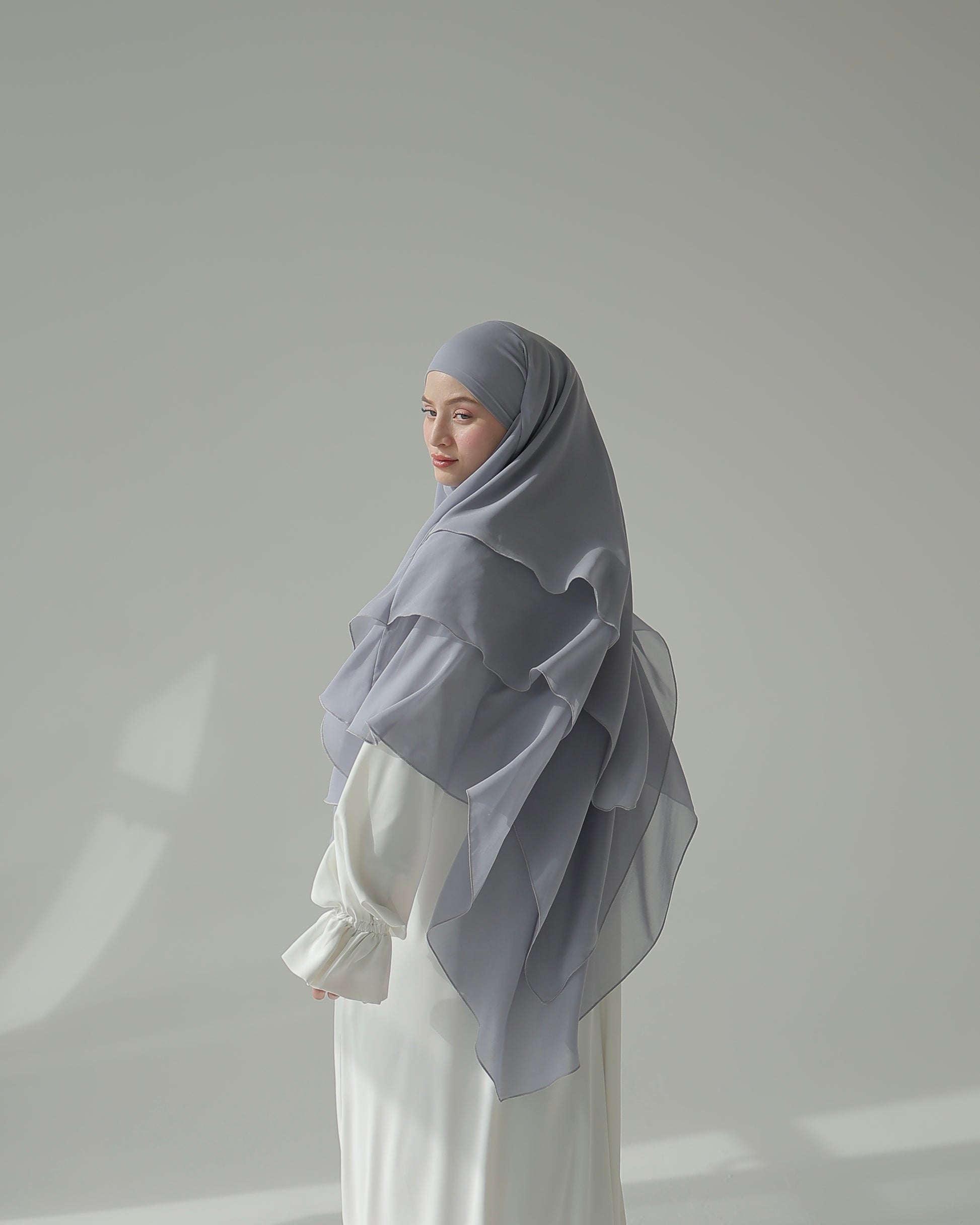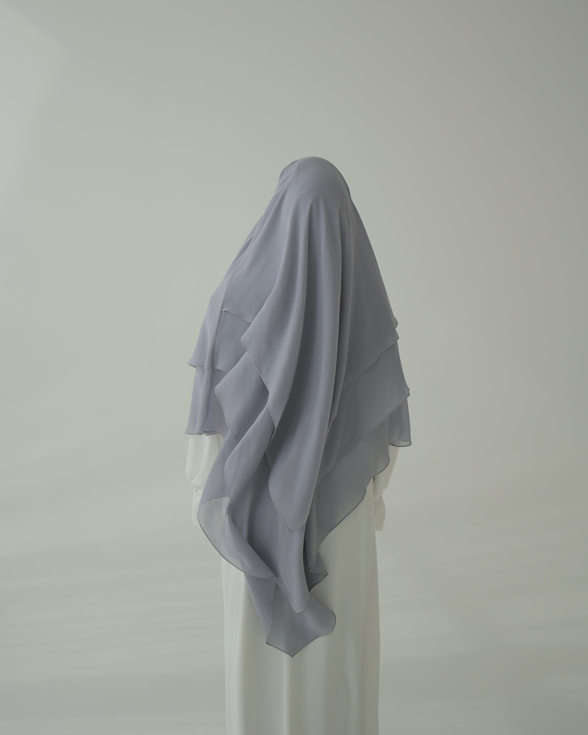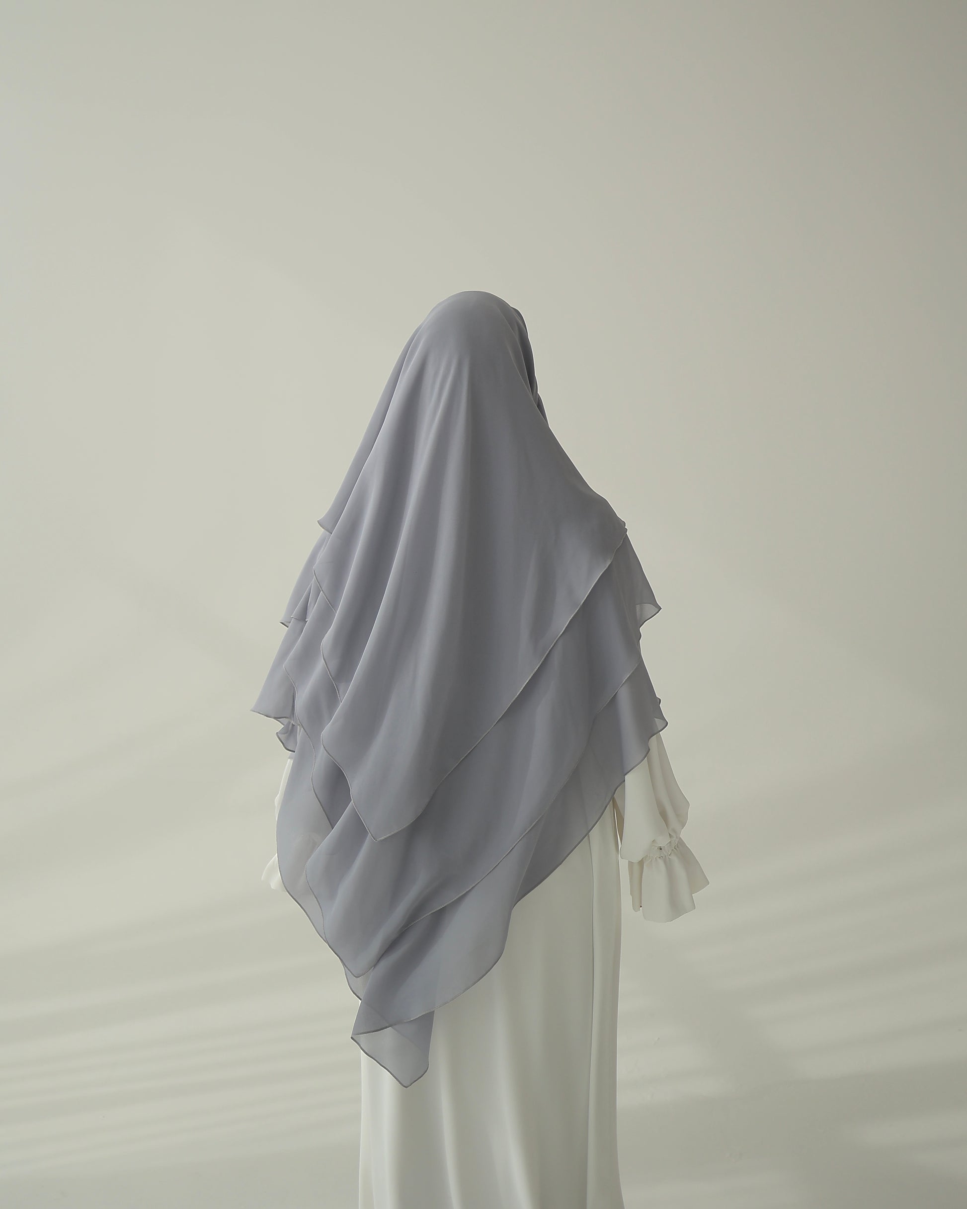 Our three-layer chiffon khimar embodies simple elegance. Made from high-quality chiffon and sewn with the utmost precision, it offers luxurious fullness and a beautiful drape. The generous length and soft feel ensure maximum comfort with optimal coverage. With its romantic design, this khimar is perfect for every occasion and gives your face the most beautiful frame! Be sure to try it - we LOVE it!