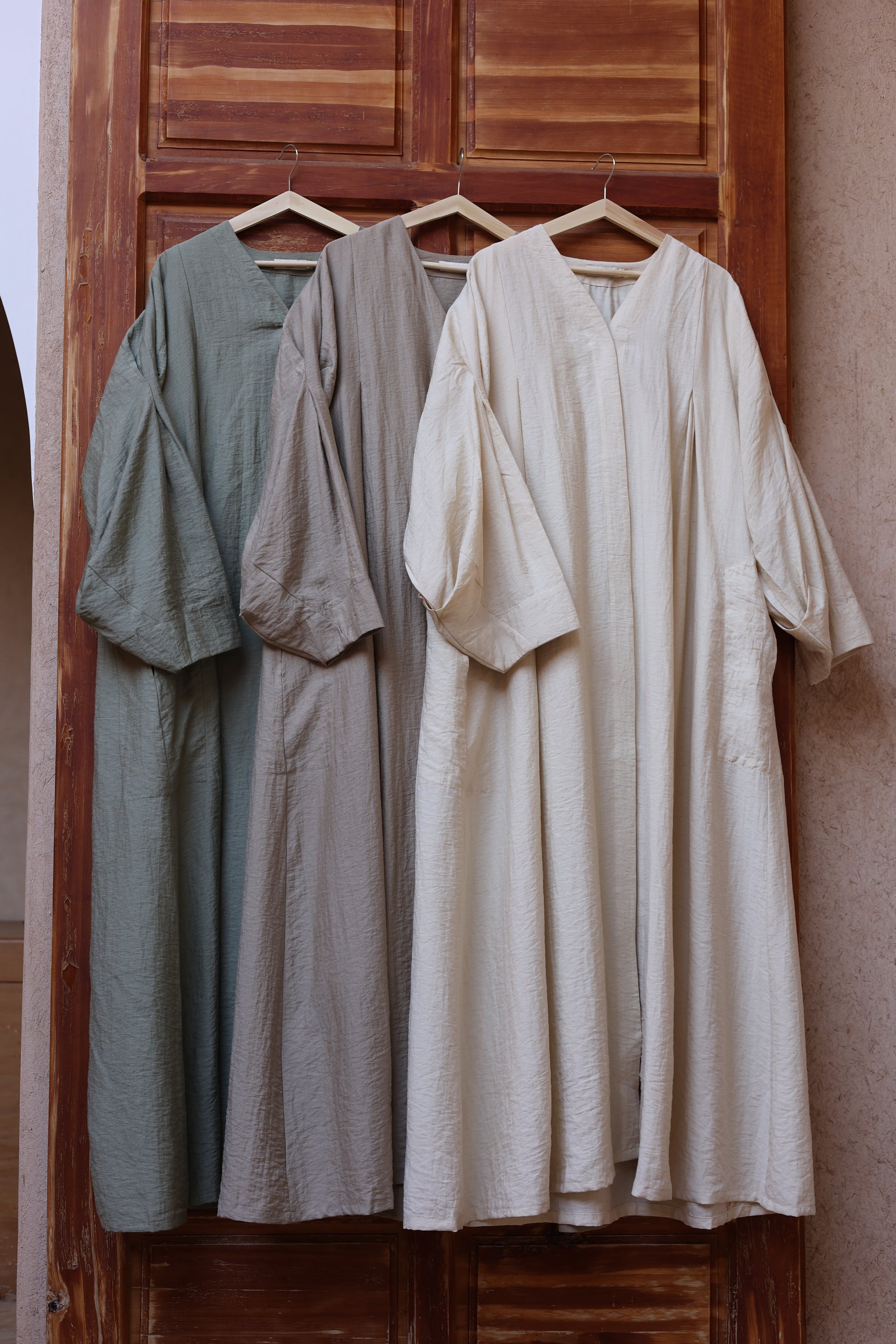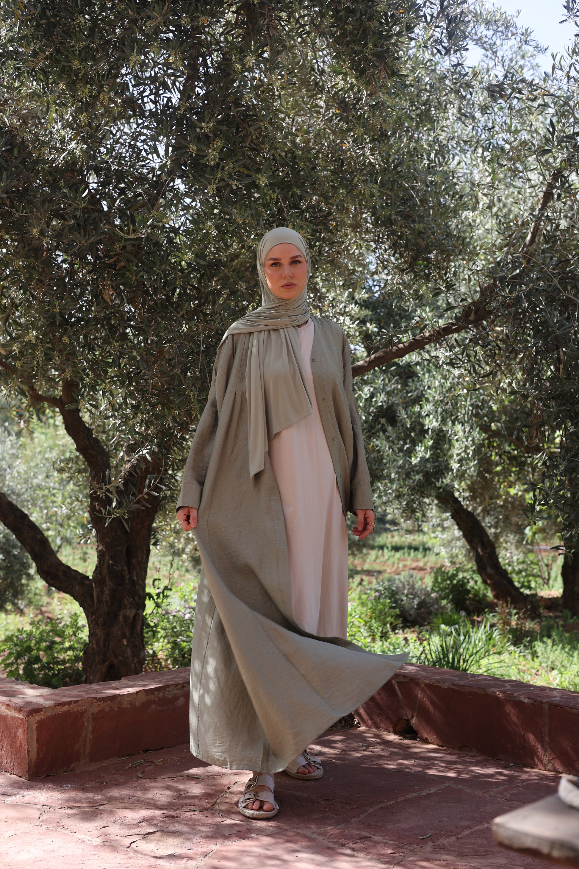 Our linen abaya is your indispensable all-rounder this summer! Whether as a dress or a wrap with the buttons open - whether in the city or on the beach - it always fits! Its cozy cut ensures you ultimate comfort without having to forego elegance. The pockets and hidden button placket add even more functionality to be your best companion this summer!