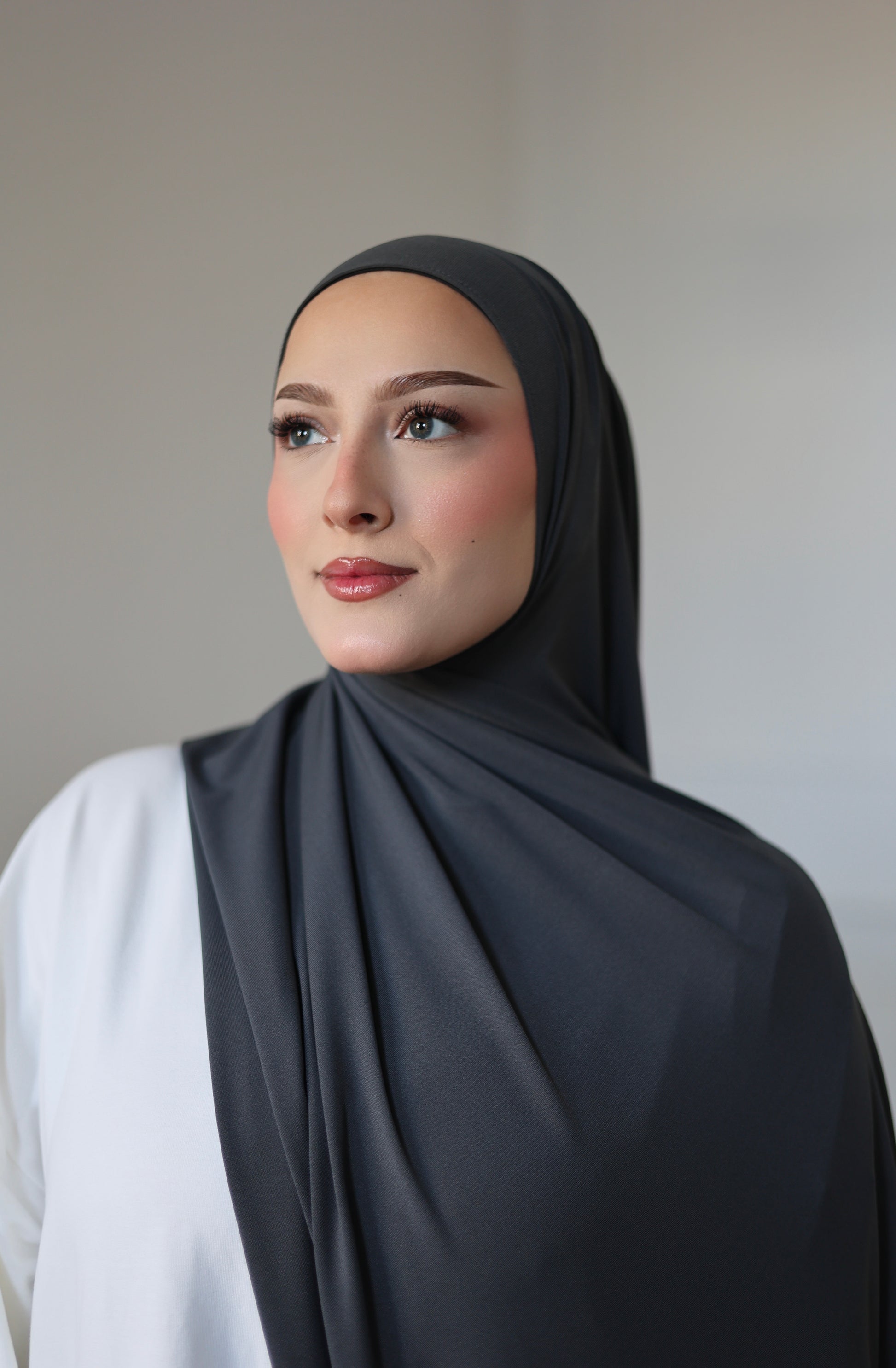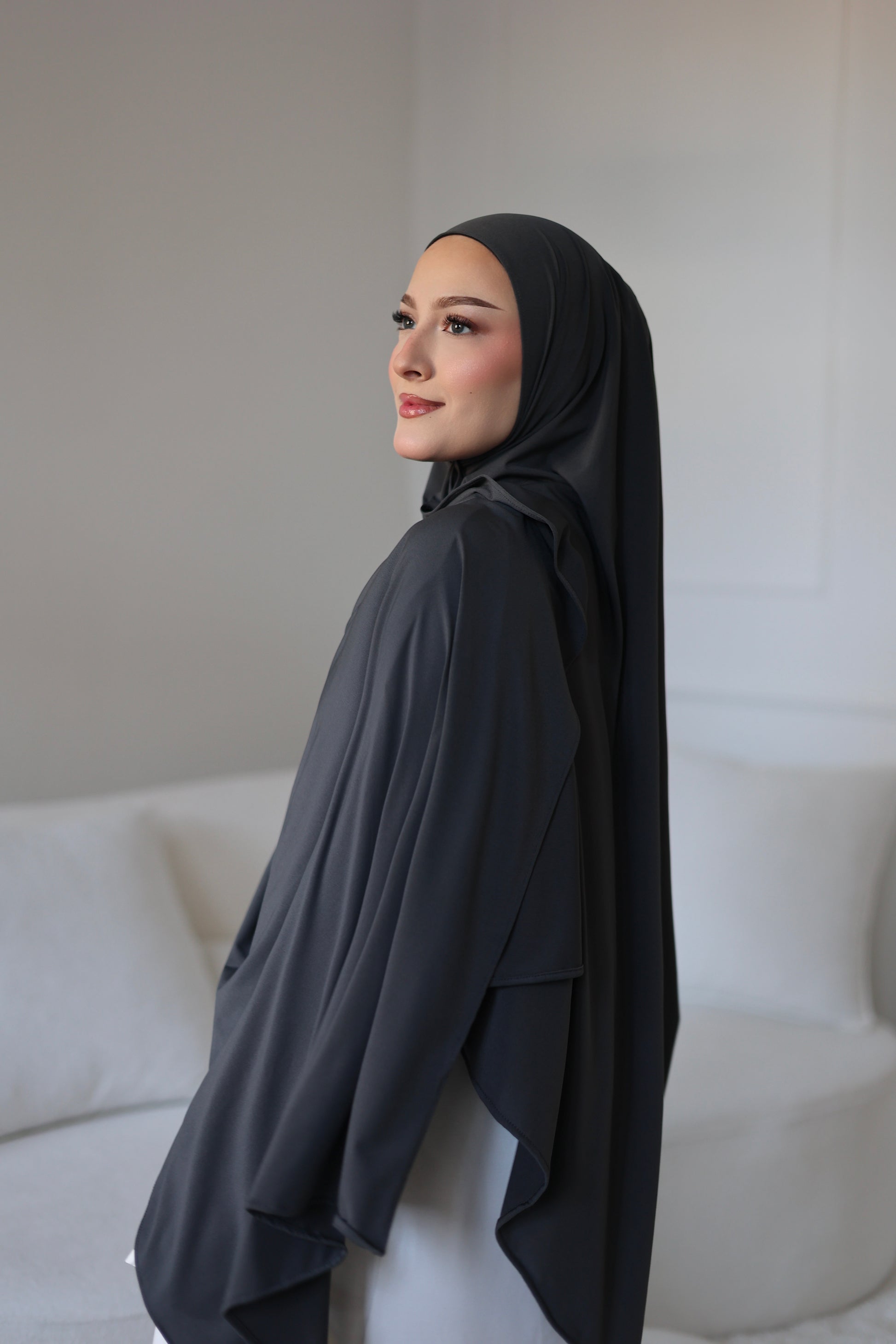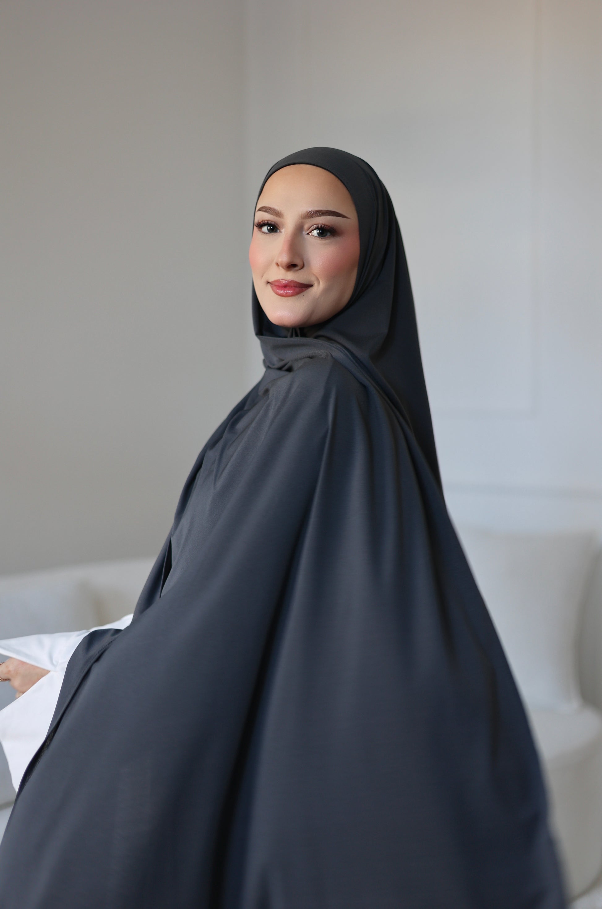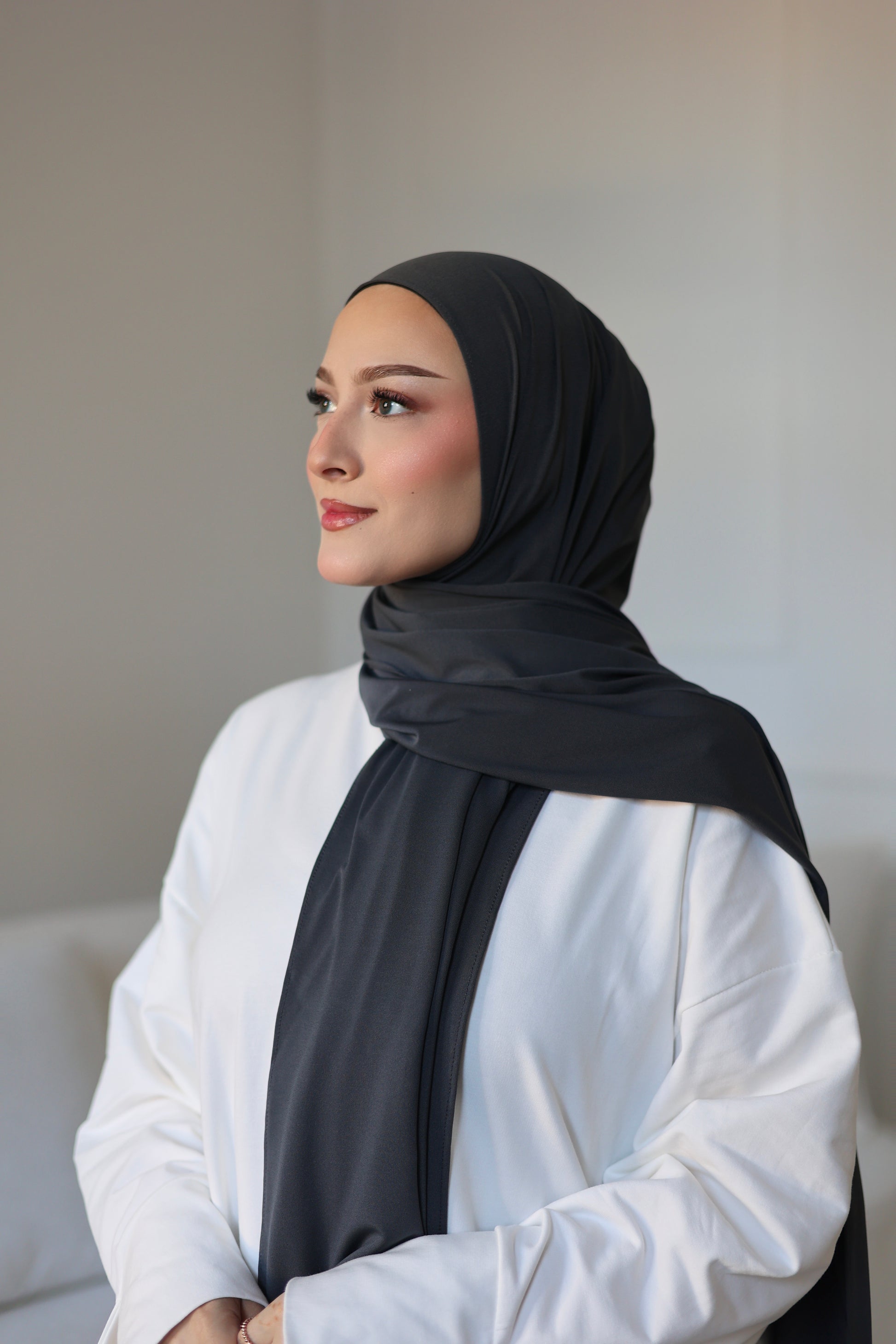 Our premium jersey hijab is wrinkle-free, stretchy and stays in shape all day long, whether for everyday wear, work or special occasions. Thanks to its versatile size and pleasant texture, it is ideal for different wearing options and offers optimal coverage with an elegant drape and maximum comfort.