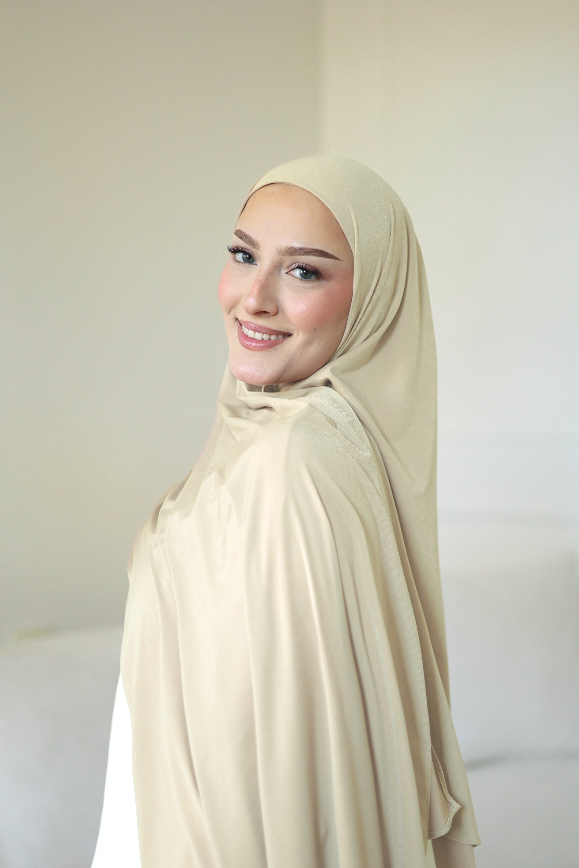 Our premium jersey hijab is wrinkle-free, stretchy and stays in shape all day long, whether for everyday wear, work or special occasions. Thanks to its versatile size and pleasant texture, it is ideal for different wearing options and offers optimal coverage with an elegant drape and maximum comfort.