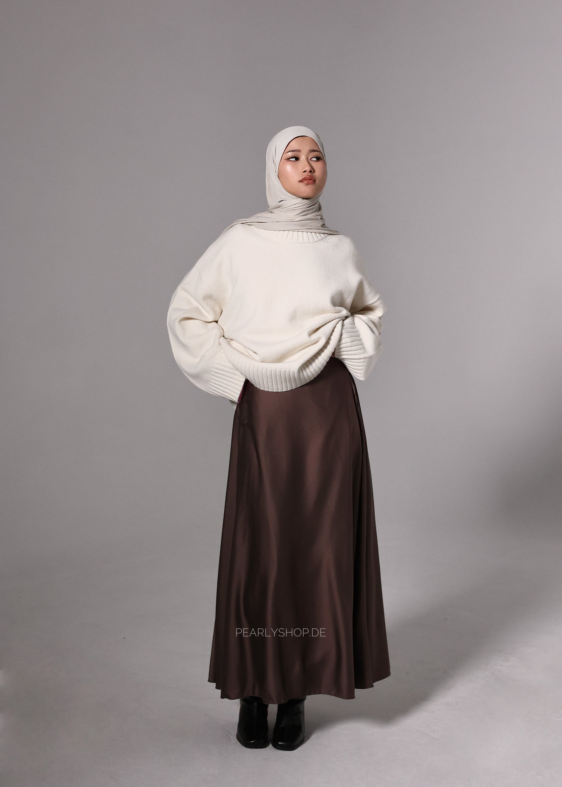 Eleganter Satinrock mit fließendem Fall und edlem Glanz. Dieser Rock überzeugt durch seine zeitlose Silhouette und einen seitlichen Reißverschluss für eine perfekte Passform. Ideal für stilvolle Alltagslooks oder elegante Anlässe.