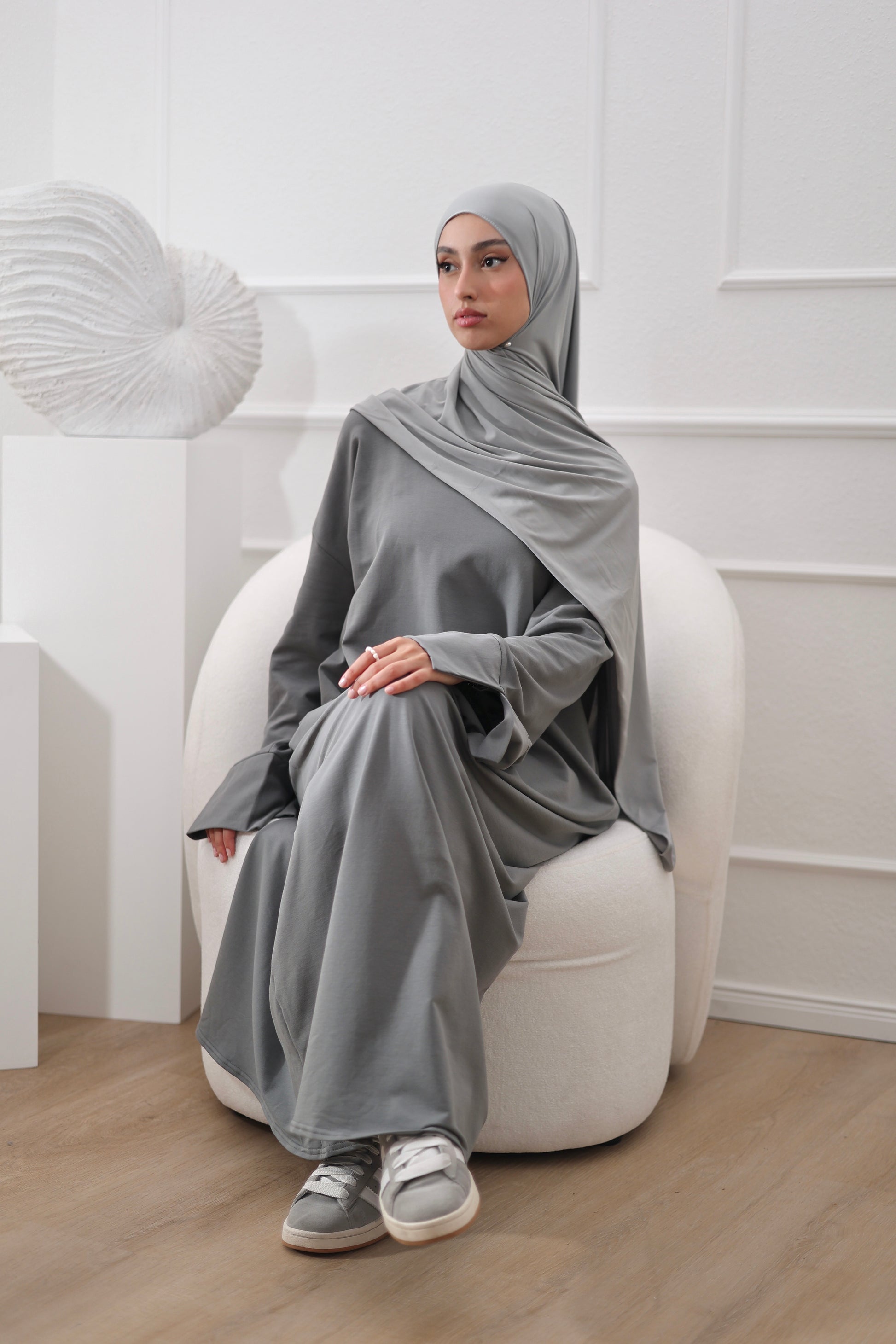 Discover the comfort of sweatpants as an abaya! Our cotton sweatshirt dress is your perfect everyday companion! Combine it comfortably with sneakers and experience how comfortable covered fashion can be!