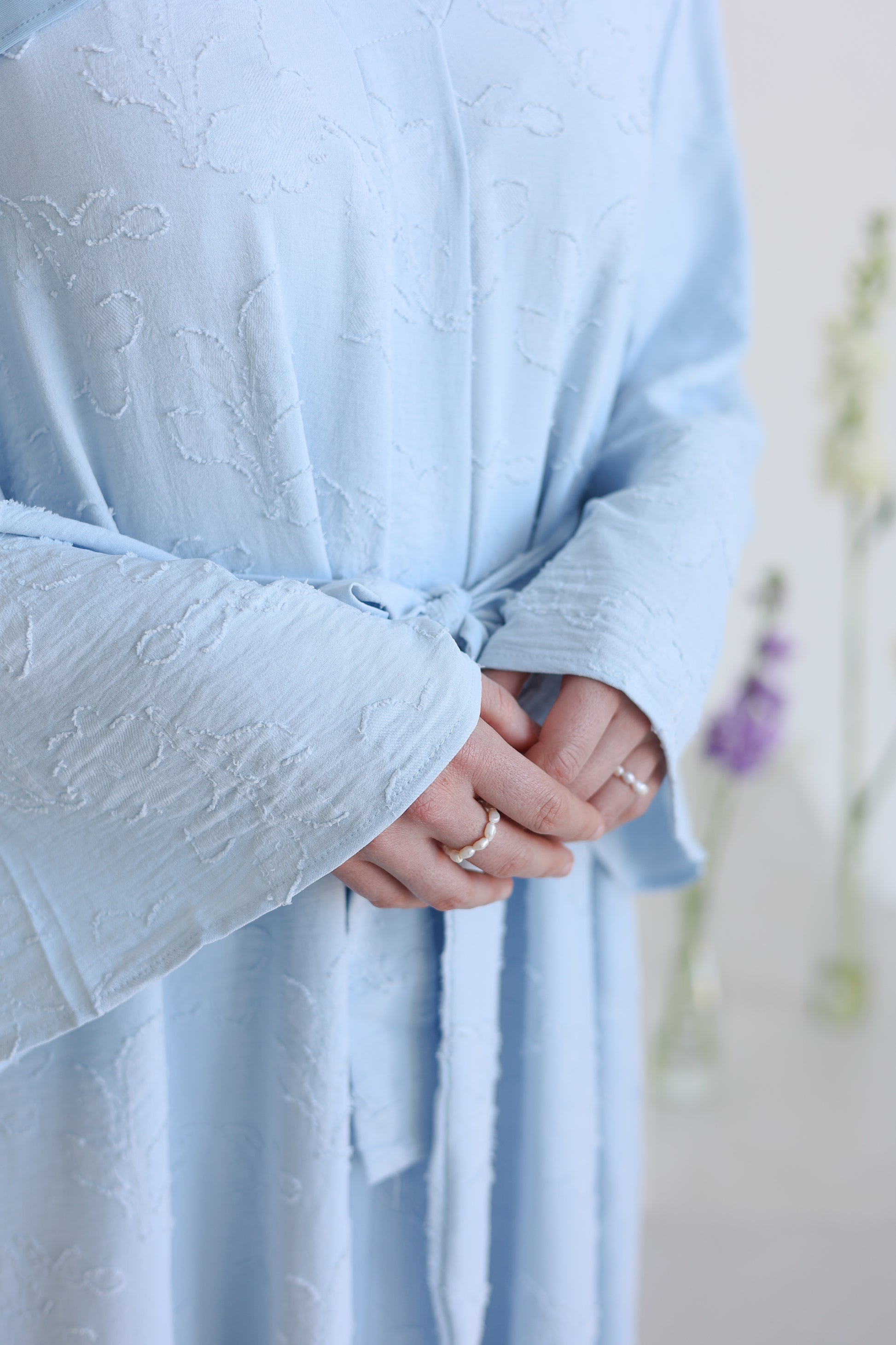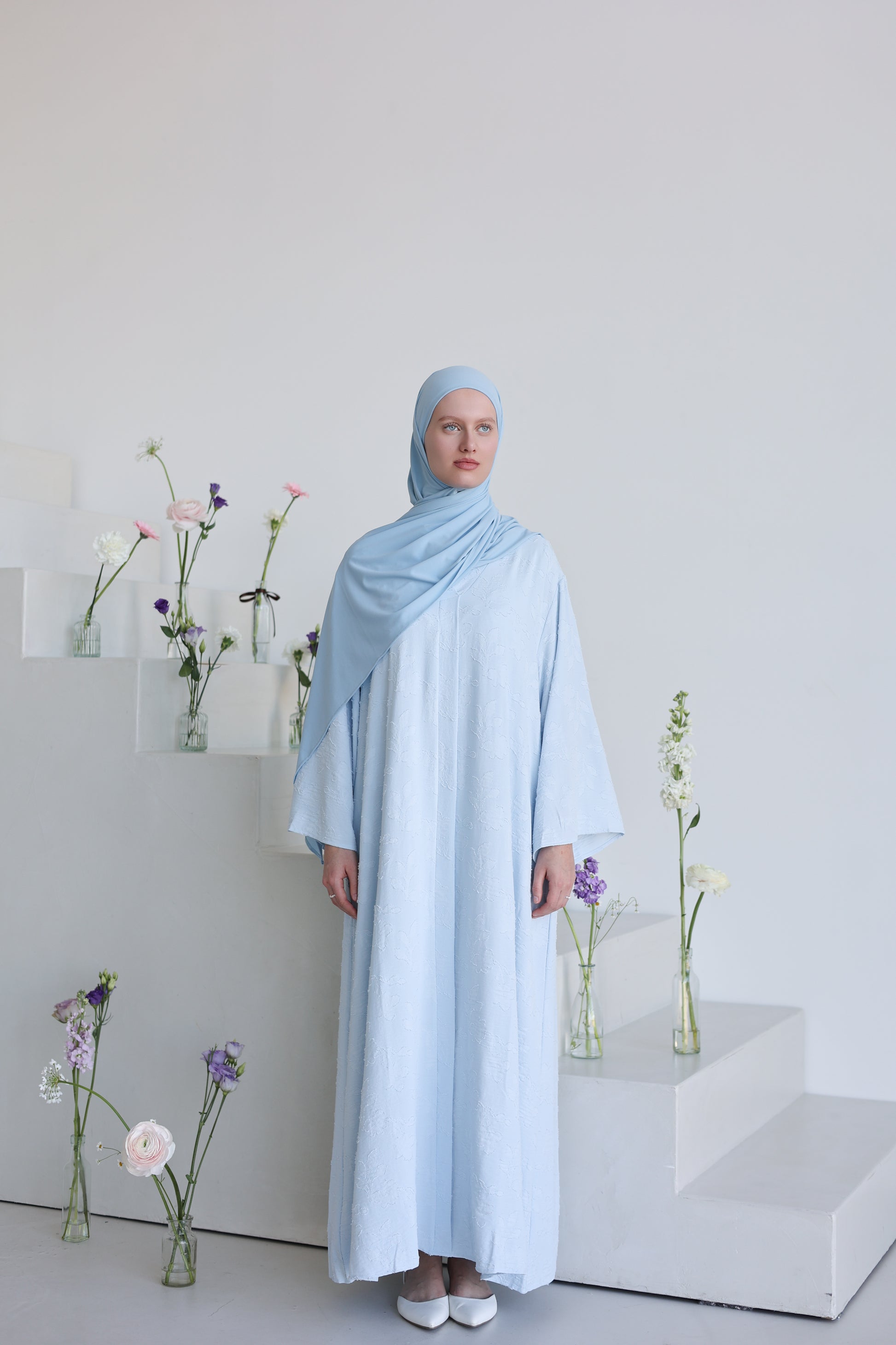 Unser Bloomy Kleid verkörpert florale Leichtigkeit und zeitlose Modesty. Es besteht aus einem hochwertigen, strukturierten Stoff, der mit dezenten floralen Mustern veredelt ist. Der fließende Schnitt sorgt für maximalen Tragekomfort und entspricht dem Anspruch an stilvolle Bedeckung.