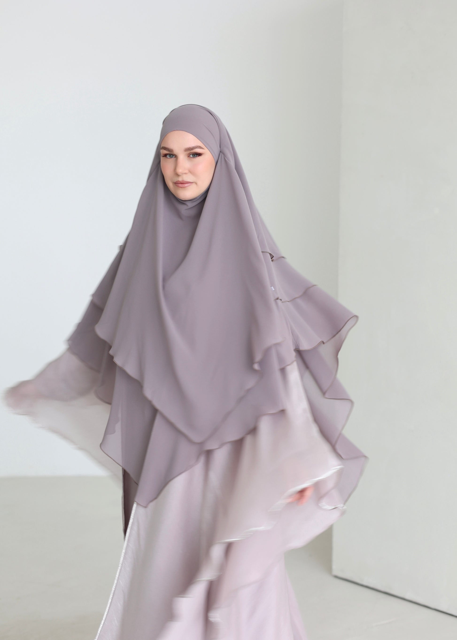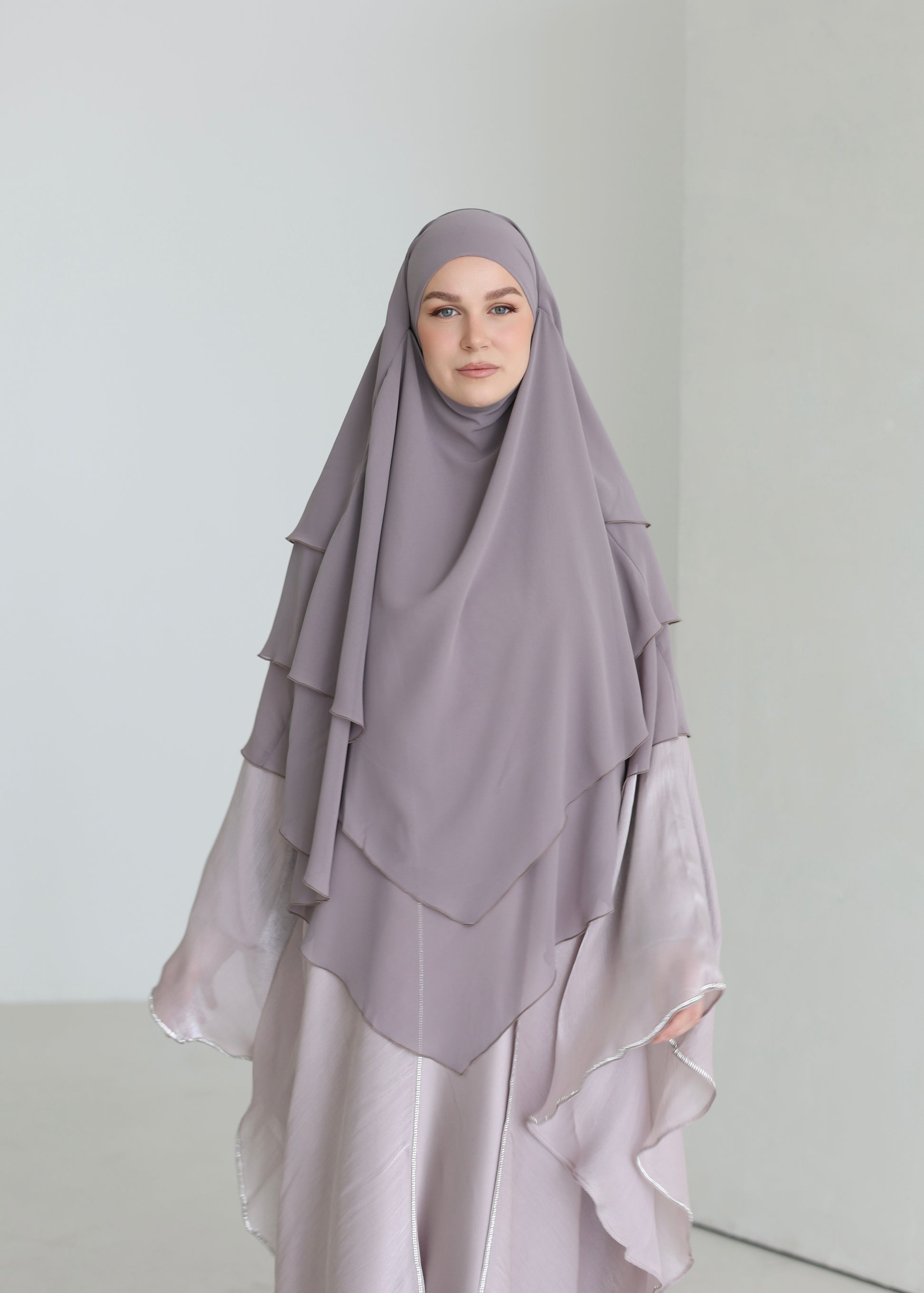 Unser dreilagiger Chiffon Khimar verkörpert schlichte Eleganz mit maximaler Leichtigkeit. Hergestellt aus hochwertigem Chiffon und vernäht mit größter Präzision, bietet er eine luxuriöse Fülle und einen schönen Fall - und ist dabei ultralcht auf deinem Kopf! Die großzügige Länge und der weiche Griff sorgen für maximalen Tragekomfort bei optimaler Bedeckung. Mit seinem romantischen Design ist dieser Khimar perfekt für jeden Anlass und verleiht deinem Gesicht die schönste Umrandung! Probier‘s unbedingt aus - wir LIEBEN es!