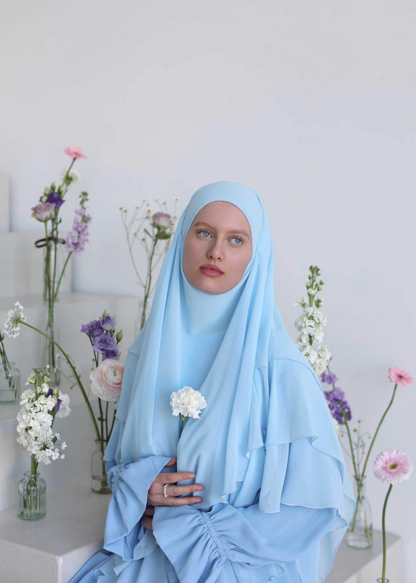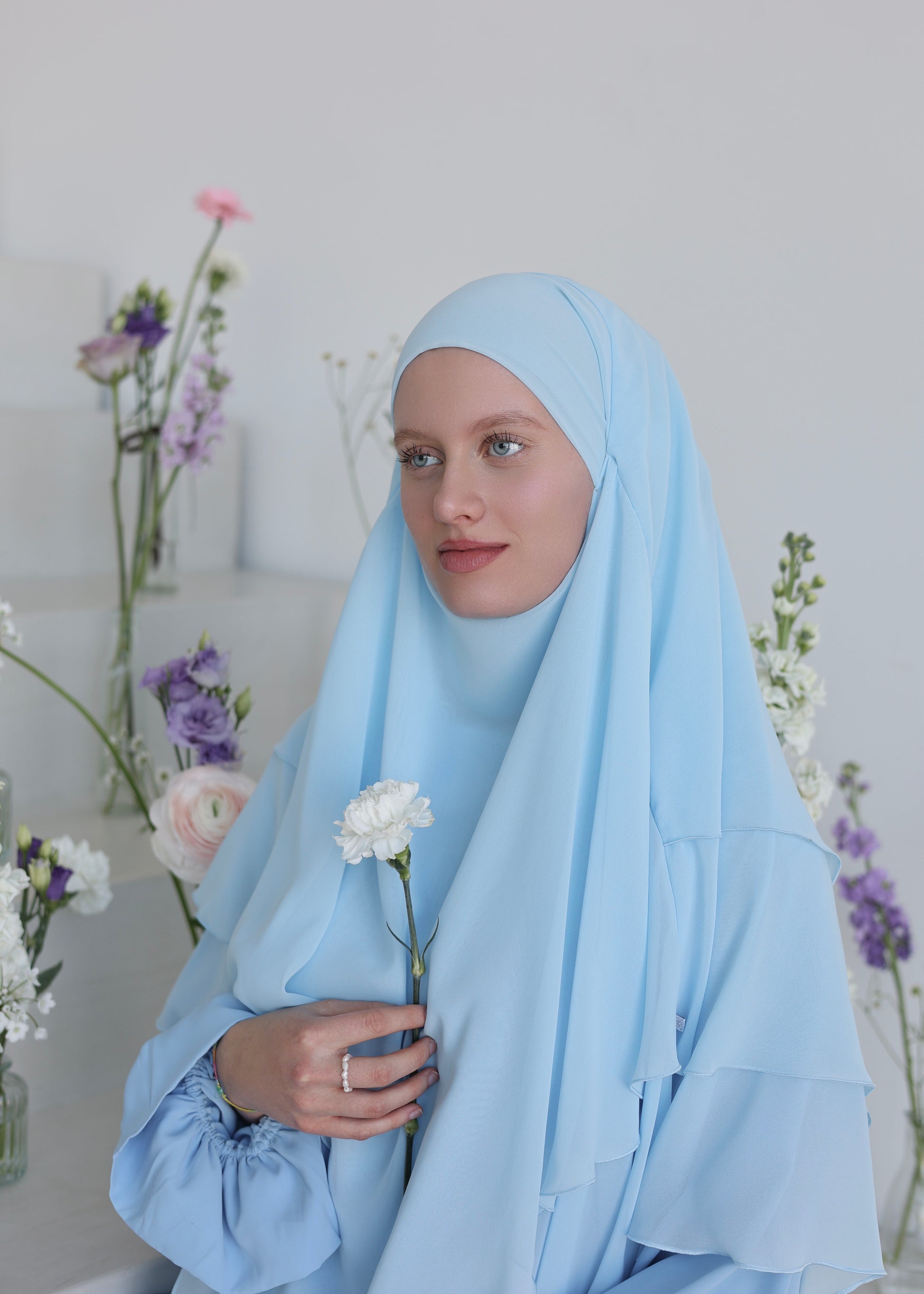 Unser dreilagiger Chiffon Khimar verkörpert schlichte Eleganz mit maximaler Leichtigkeit. Hergestellt aus hochwertigem Chiffon und vernäht mit größter Präzision, bietet er eine luxuriöse Fülle und einen schönen Fall - und ist dabei ultralcht auf deinem Kopf! Die großzügige Länge und der weiche Griff sorgen für maximalen Tragekomfort bei optimaler Bedeckung. Mit seinem romantischen Design ist dieser Khimar perfekt für jeden Anlass und verleiht deinem Gesicht die schönste Umrandung! Probier‘s unbedingt aus - wir LIEBEN es!