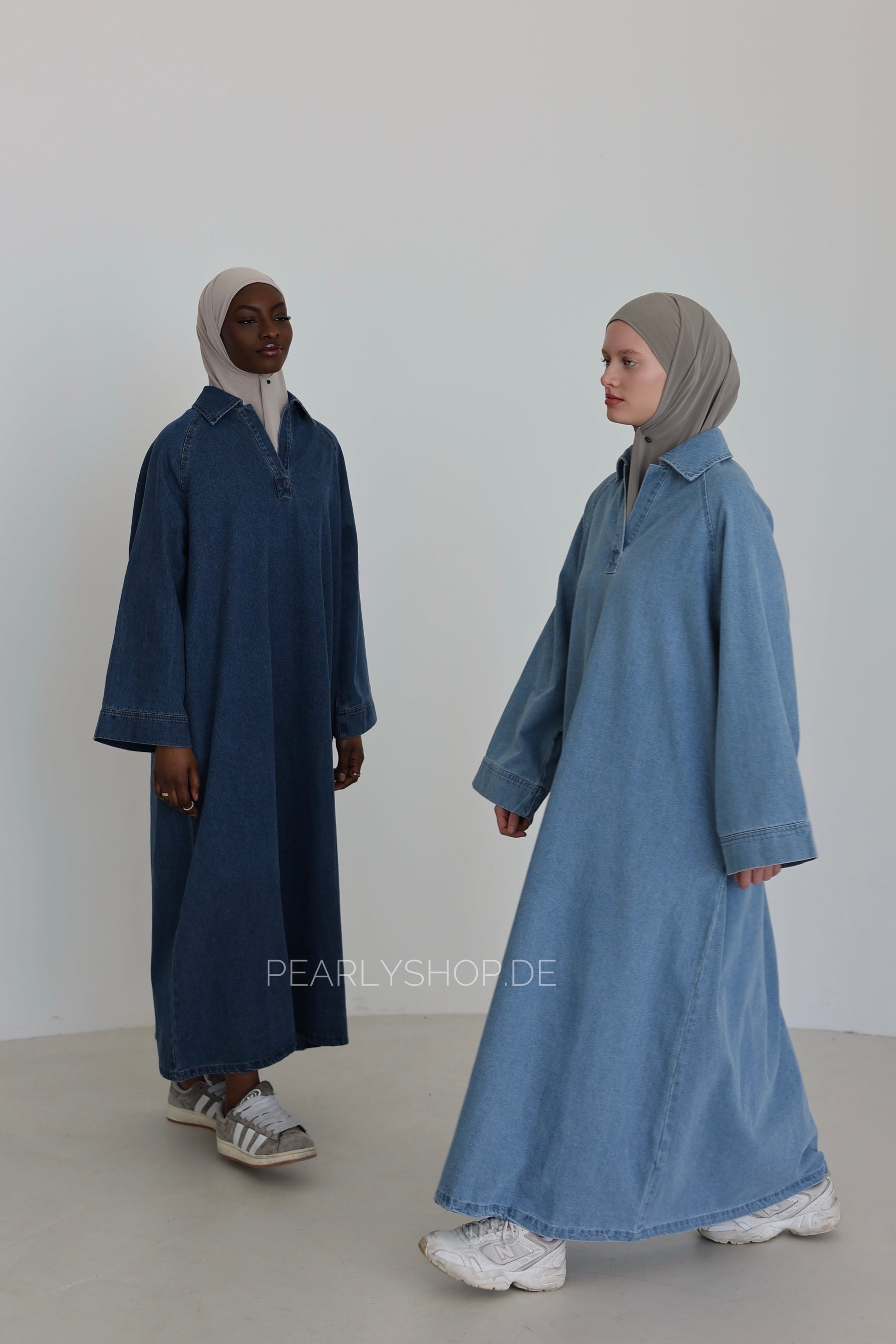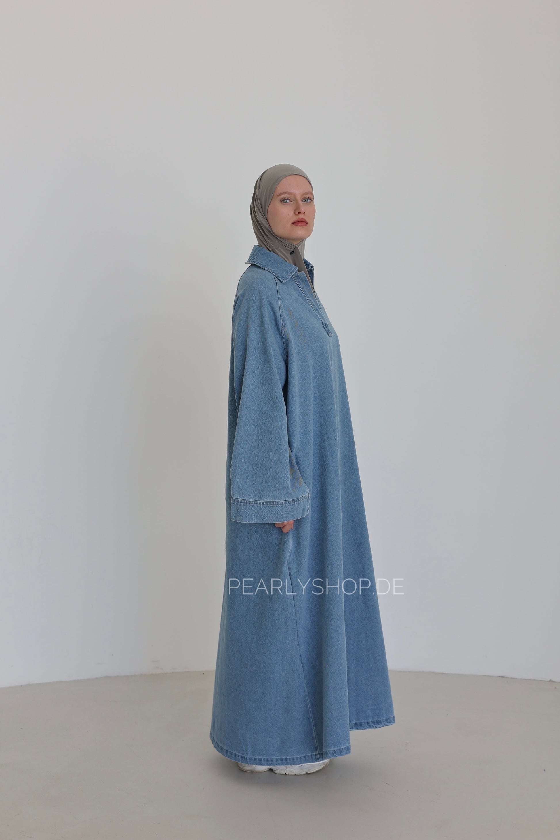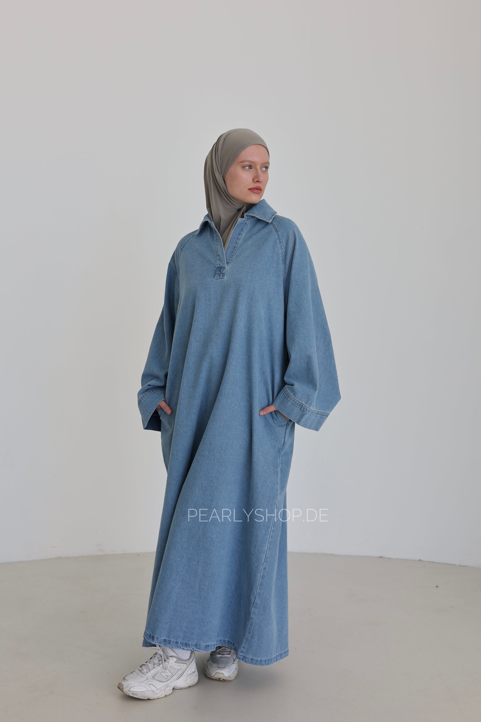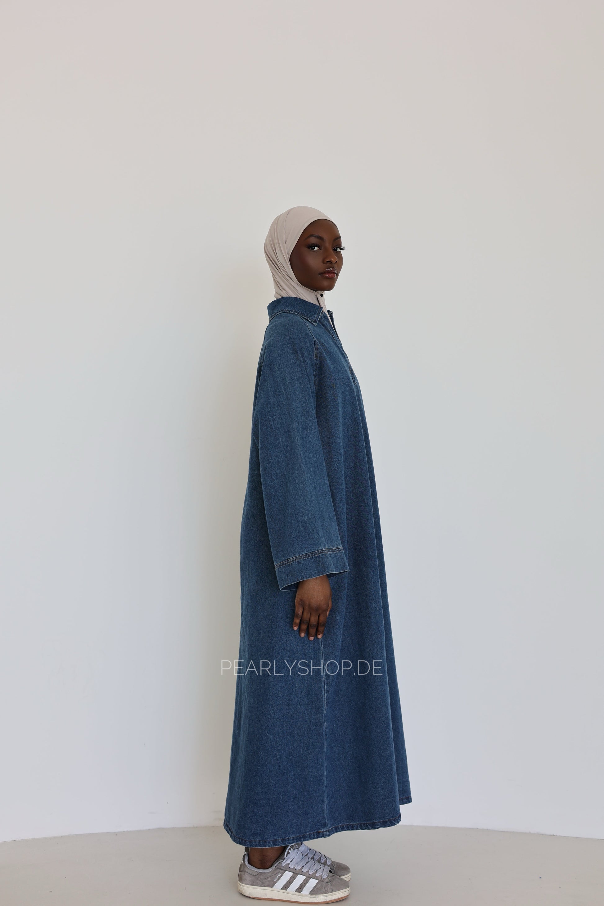 Diese Oversized-Jeans-Abaya vereint den lässigen Look von Denim mit dem Trage-komfort eines fließenden Kleides. Hergestellt aus 100 % hochwertiger Baumwolle, bietet sie ein angenehmes Tragegefühl und ist perfekt für die milden Temperaturen im Frühling.