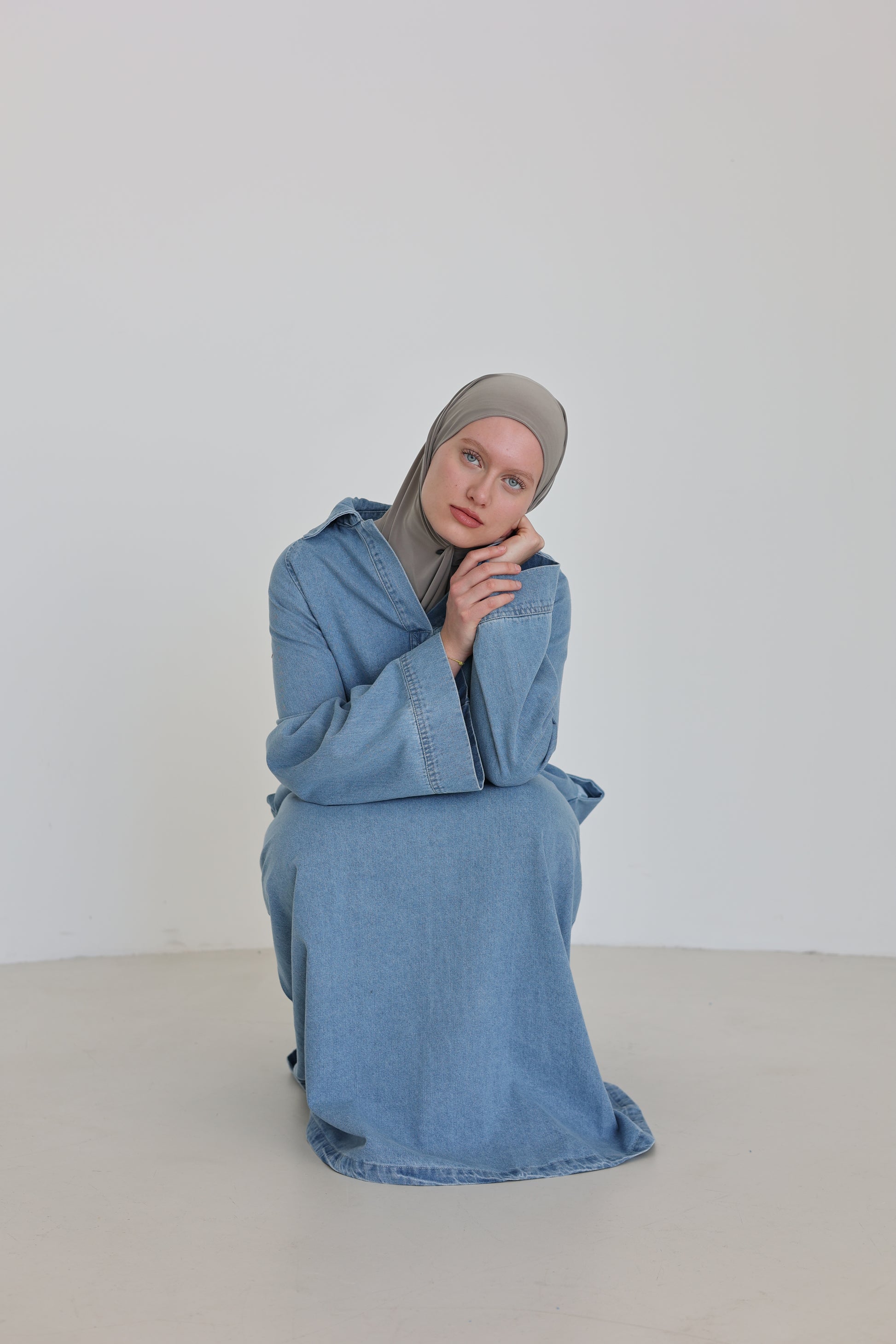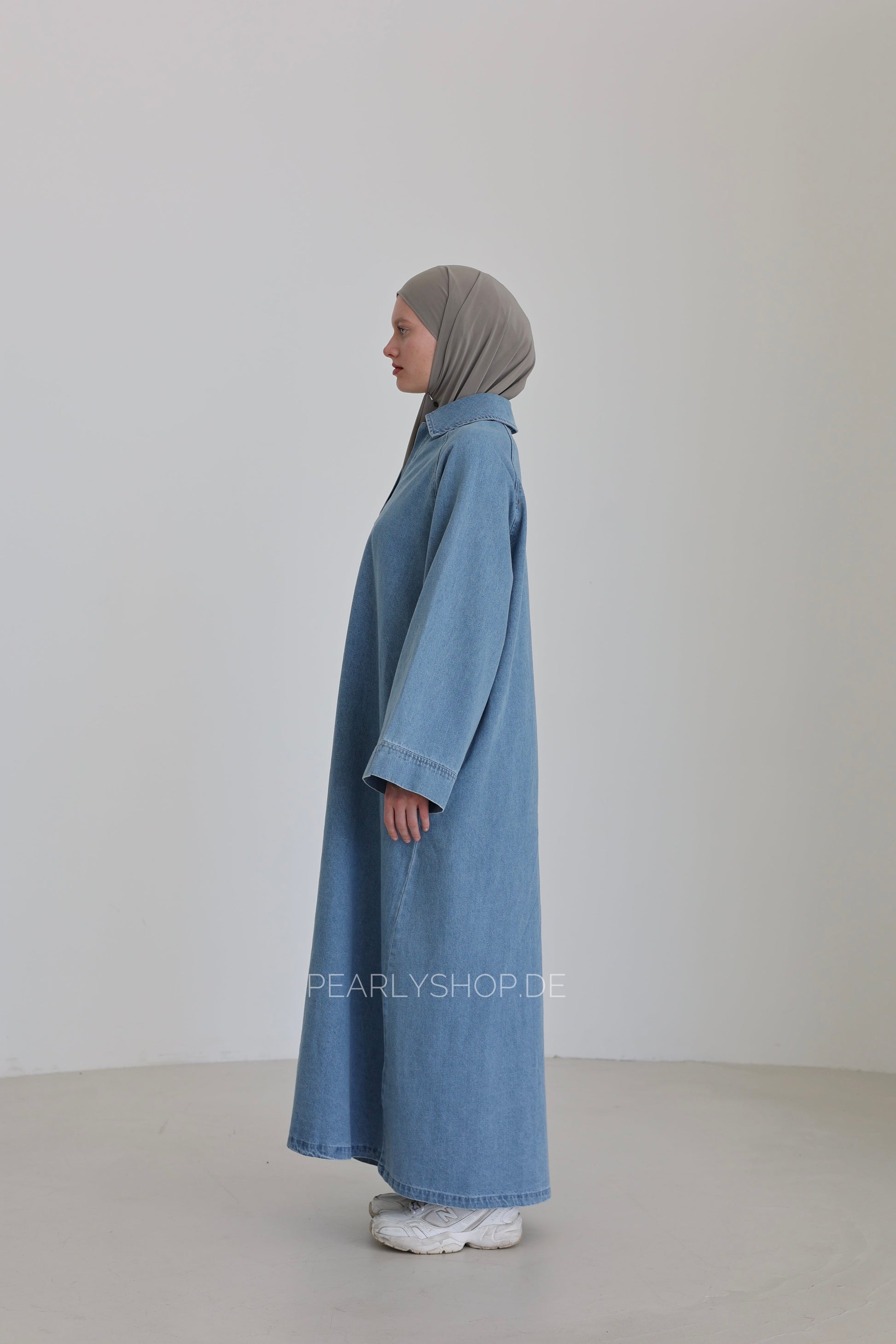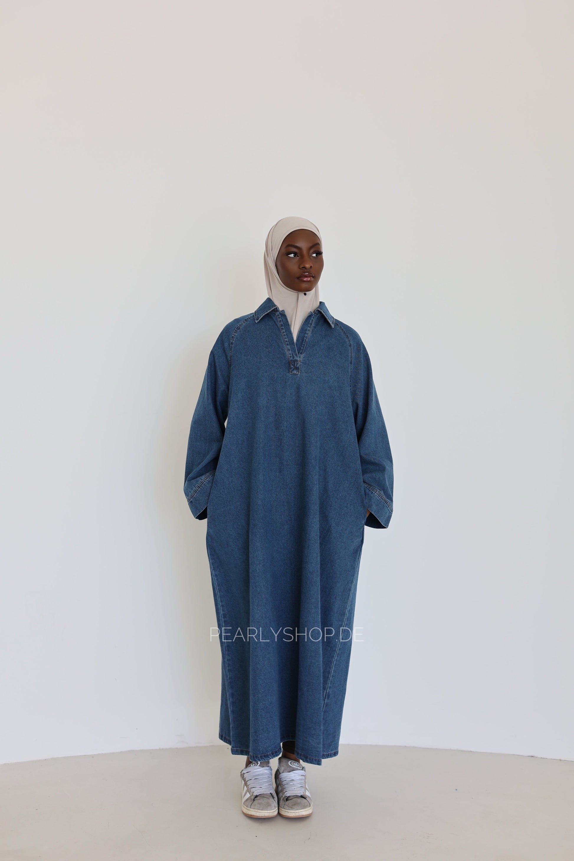 Diese Oversized-Jeans-Abaya vereint den lässigen Look von Denim mit dem Trage-komfort eines fließenden Kleides. Hergestellt aus 100 % hochwertiger Baumwolle, bietet sie ein angenehmes Tragegefühl und ist perfekt für die milden Temperaturen im Frühling.