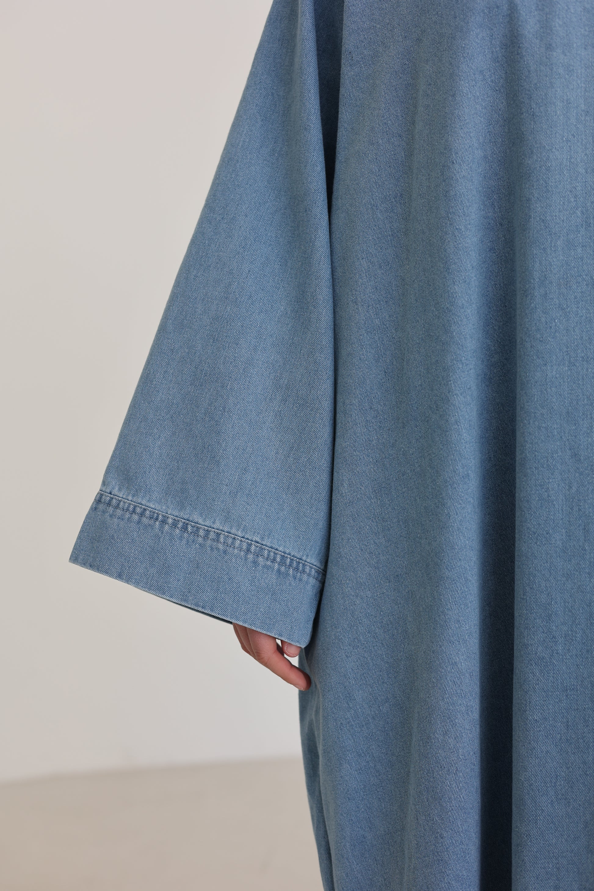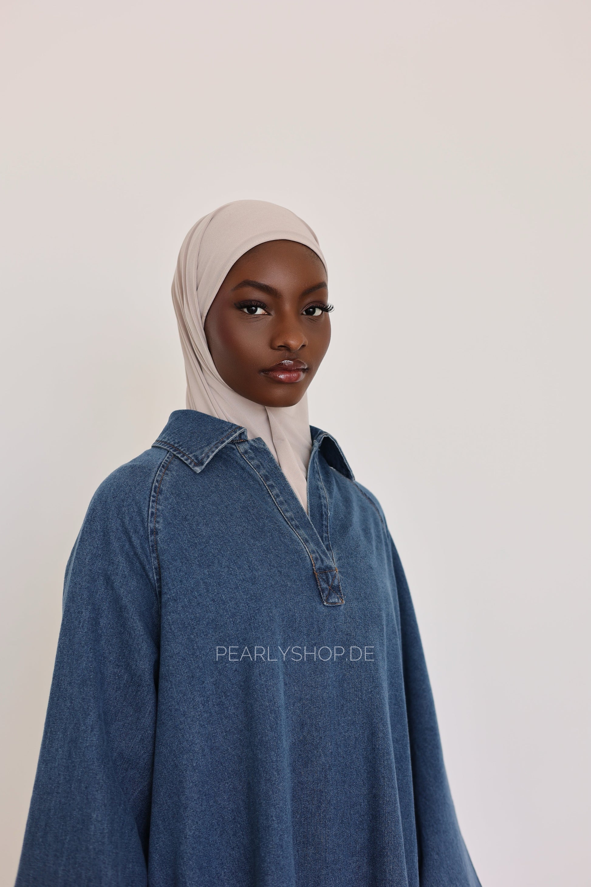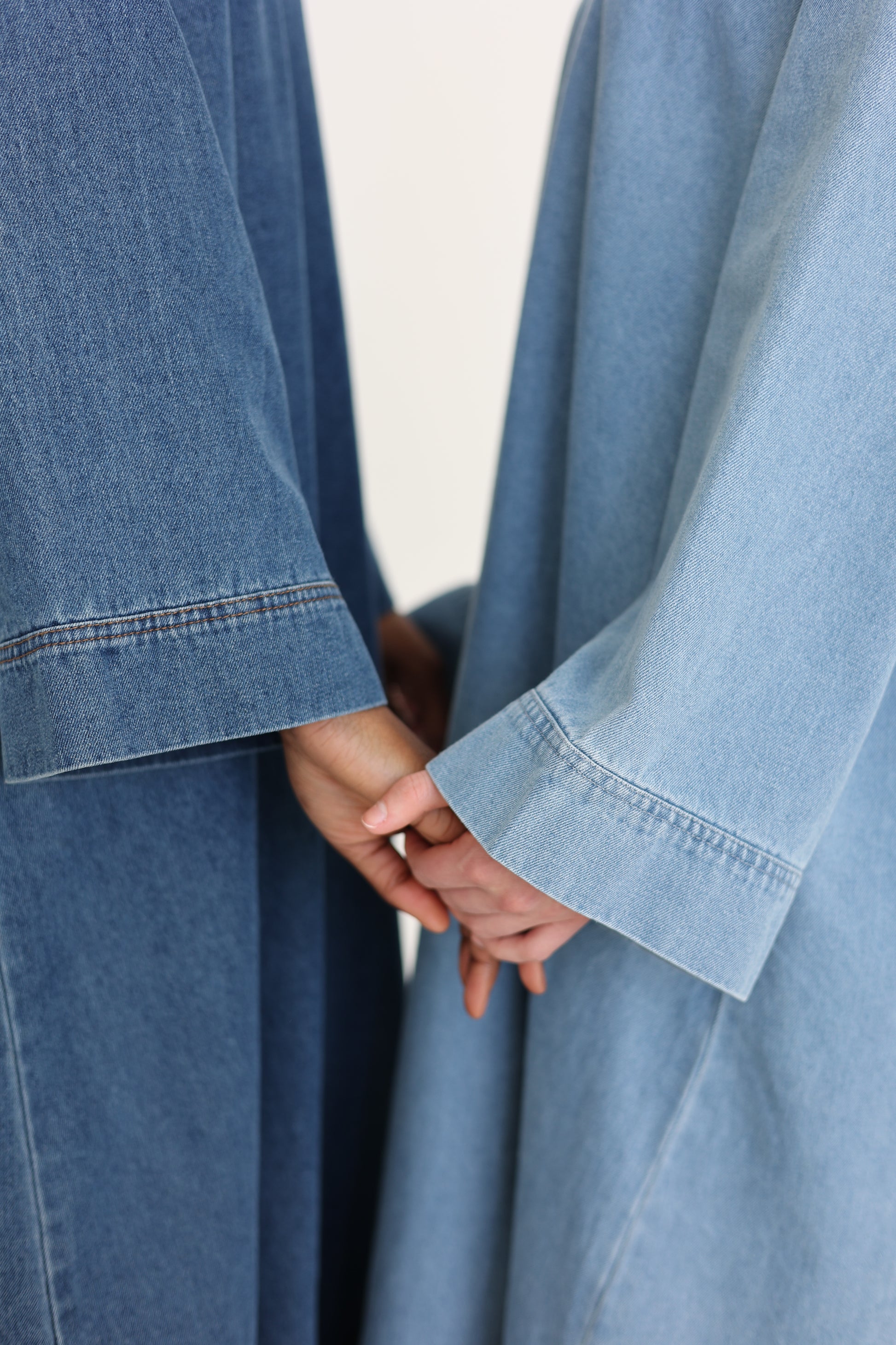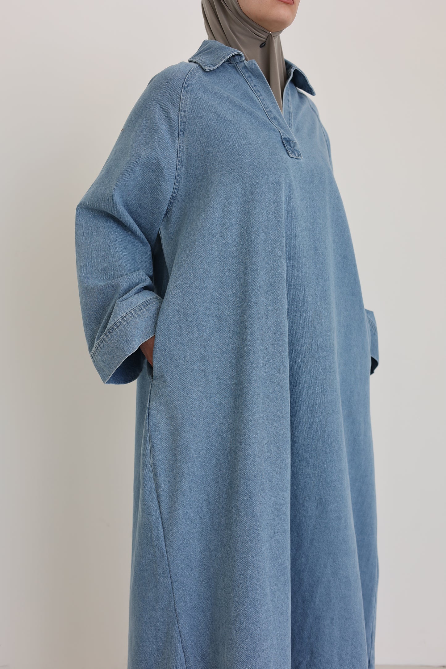 Diese Oversized-Jeans-Abaya vereint den lässigen Look von Denim mit dem Trage-komfort eines fließenden Kleides. Hergestellt aus 100 % hochwertiger Baumwolle, bietet sie ein angenehmes Tragegefühl und ist perfekt für die milden Temperaturen im Frühling.