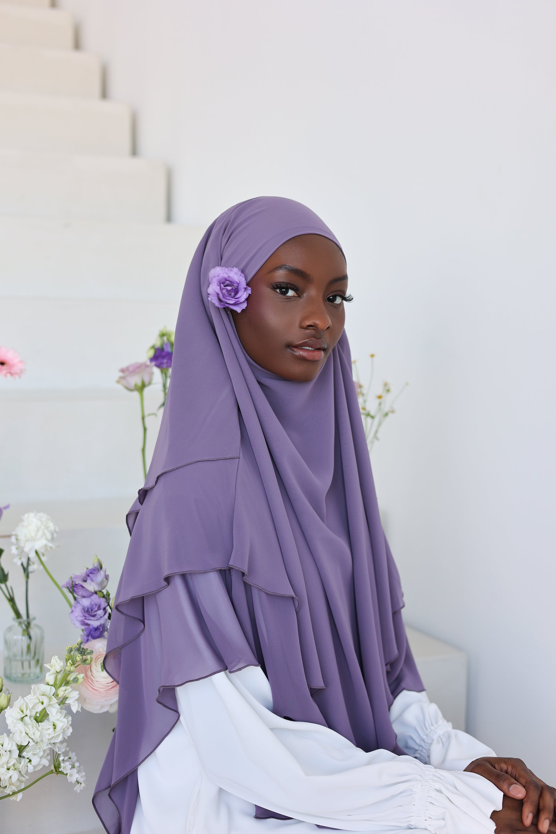 Notre khimar en mousseline à trois couches incarne l'élégance simple. Fabriqué en mousseline de haute qualité et cousu avec la plus grande précision, il offre une ampleur luxueuse et un beau drapé. La longueur généreuse et le manche souple assurent un confort maximal avec une couverture optimale. Avec son design romantique, ce khimar est parfait pour toutes les occasions et donne à votre visage le plus beau cadre ! N'hésitez pas à l'essayer, nous l'ADORONS !