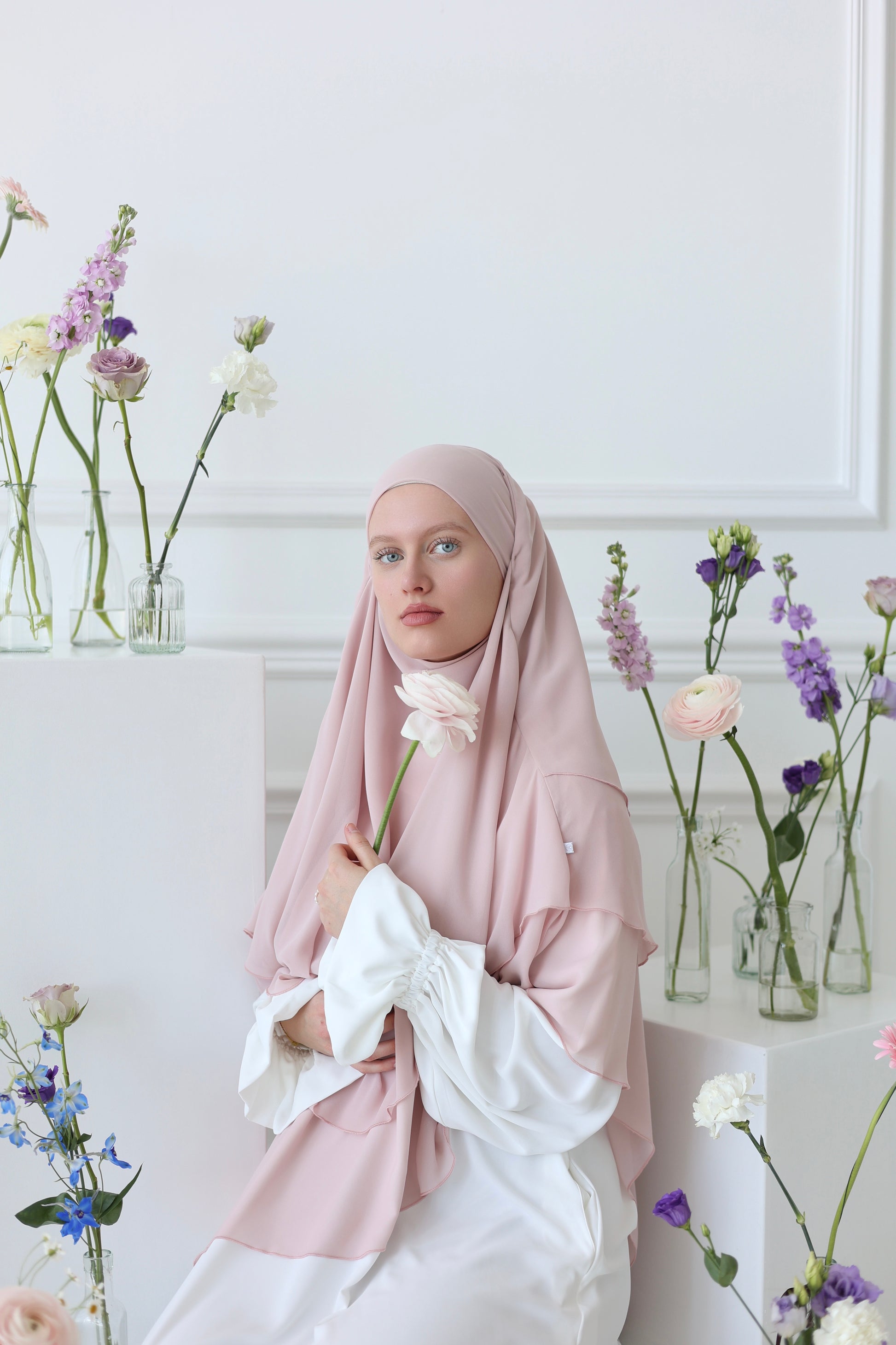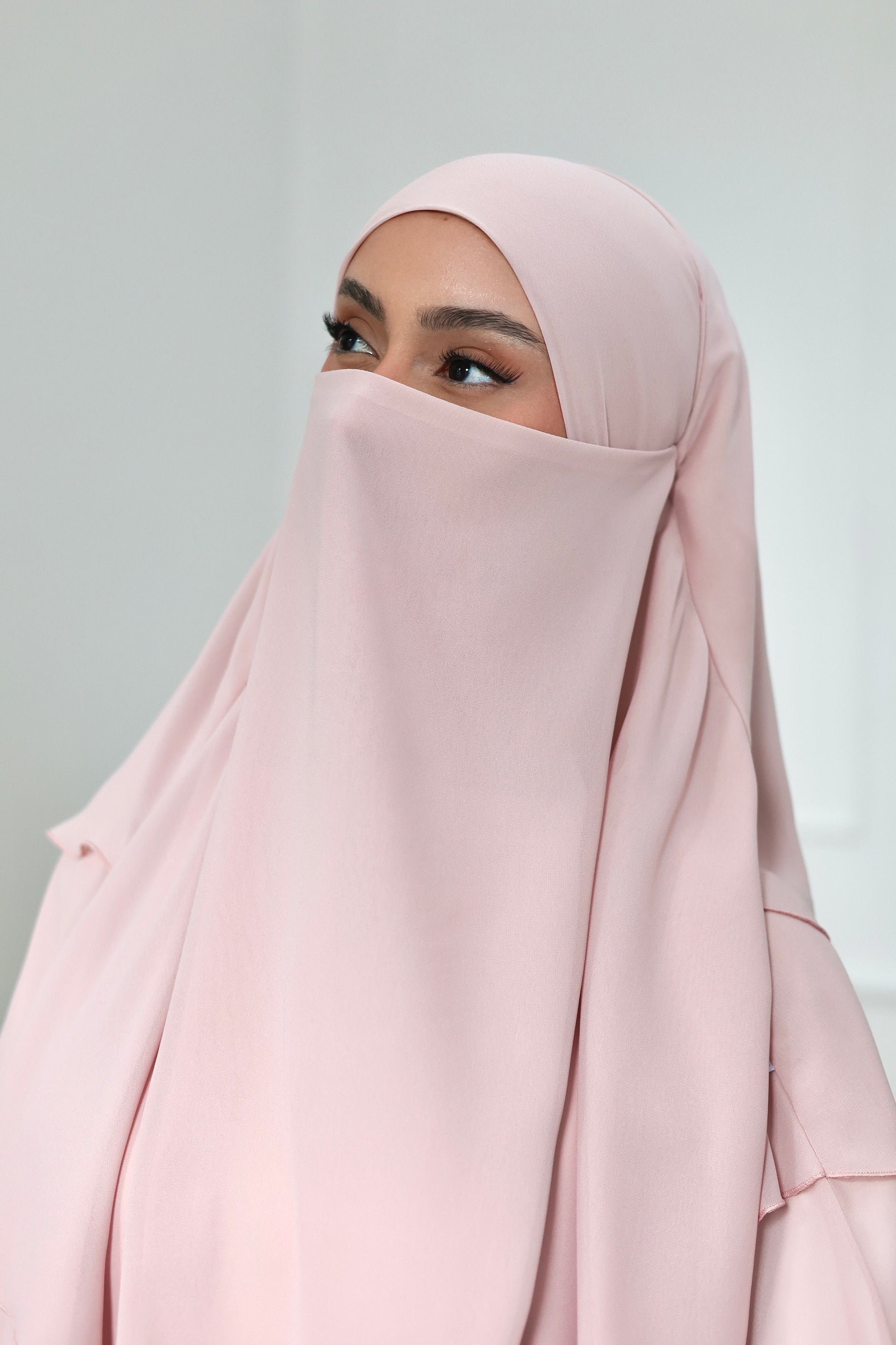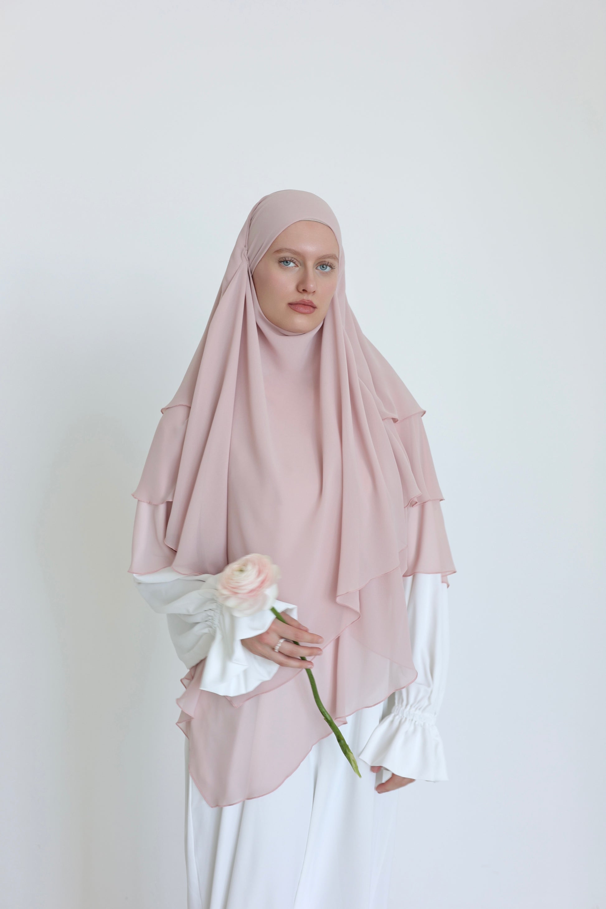 Notre khimar en mousseline à trois couches incarne l'élégance simple avec une légèreté maximale. Fabriqué en mousseline de haute qualité et cousu avec la plus grande précision, il offre une ampleur luxueuse et un beau drapé - tout en étant ultra-léger sur votre tête ! La longueur généreuse et le manche souple assurent un confort maximal avec une couverture optimale. Avec son design romantique, ce khimar est parfait pour toutes les occasions et donne à votre visage le plus beau cadre ! N'hésitez pas à l'essayer, nous l'ADORONS !