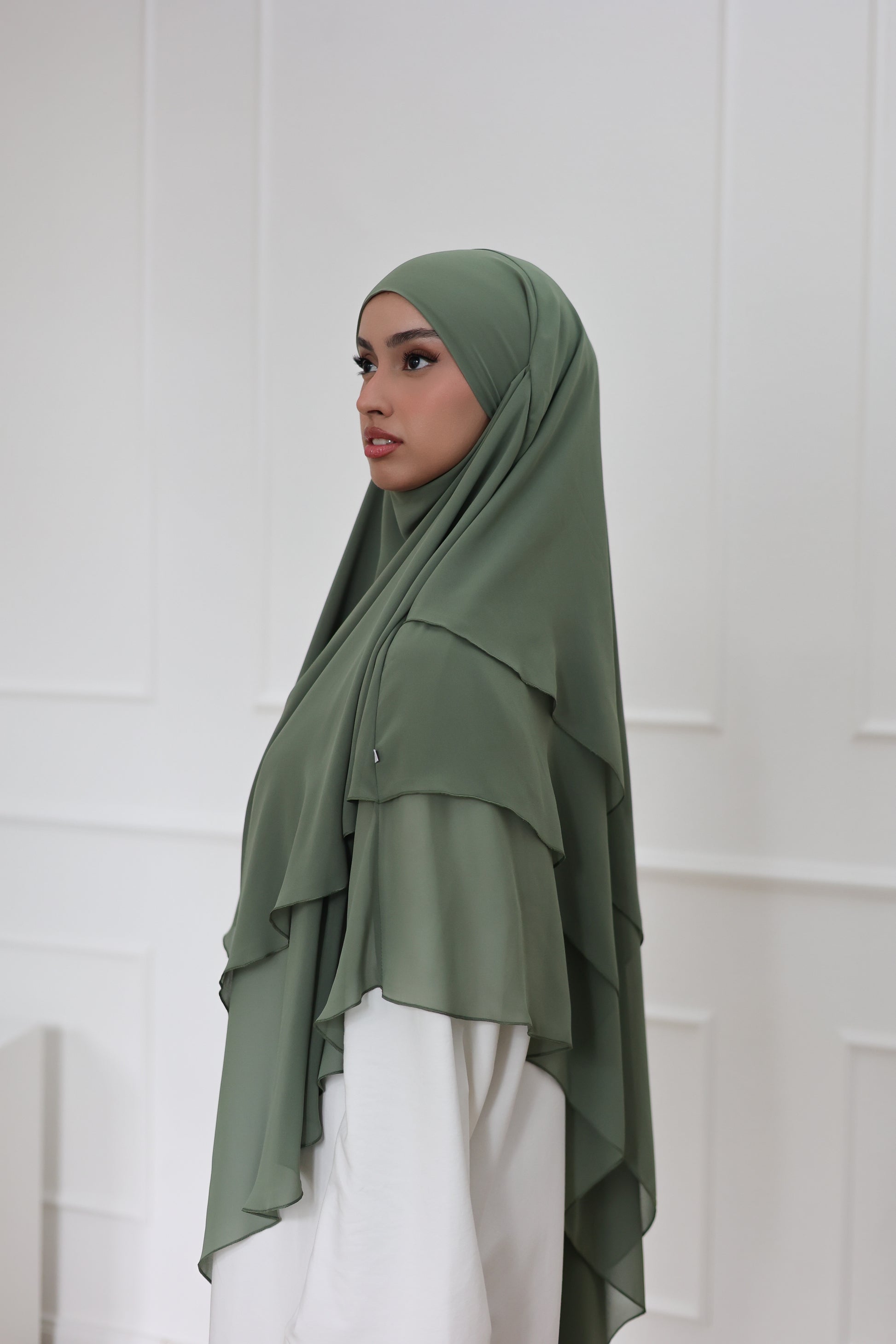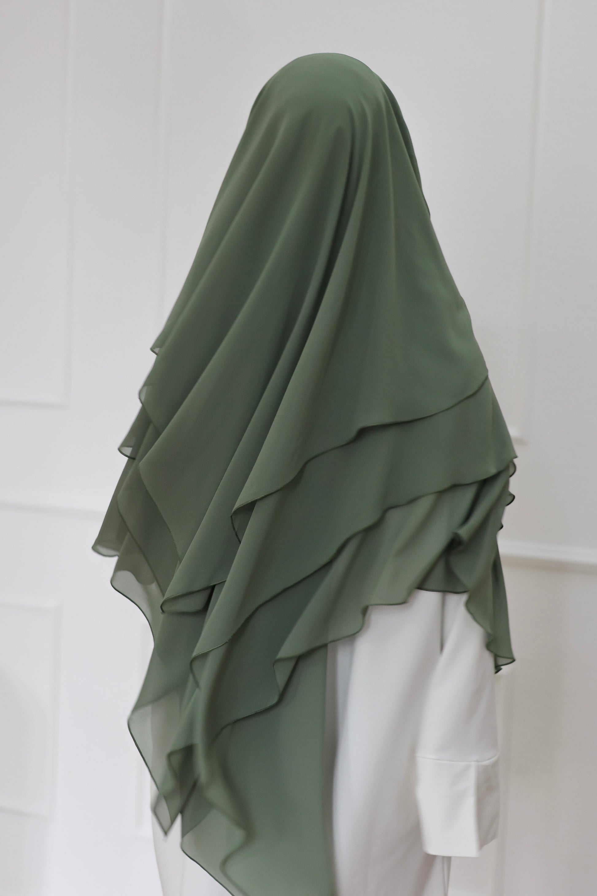 Notre khimar en mousseline incarne l'élégance simple avec une légèreté maximale. Fabriqué en mousseline de haute qualité et cousu avec la plus grande précision, il offre une ampleur luxueuse et un beau drapé - tout en étant ultra-léger sur votre tête ! La longueur généreuse et le manche souple assurent un confort maximal avec une couverture optimale. Avec son design romantique, ce khimar est parfait pour toutes les occasions et donne à votre visage le plus beau cadre ! N'hésitez pas à l'essayer, nous l'ADORONS !