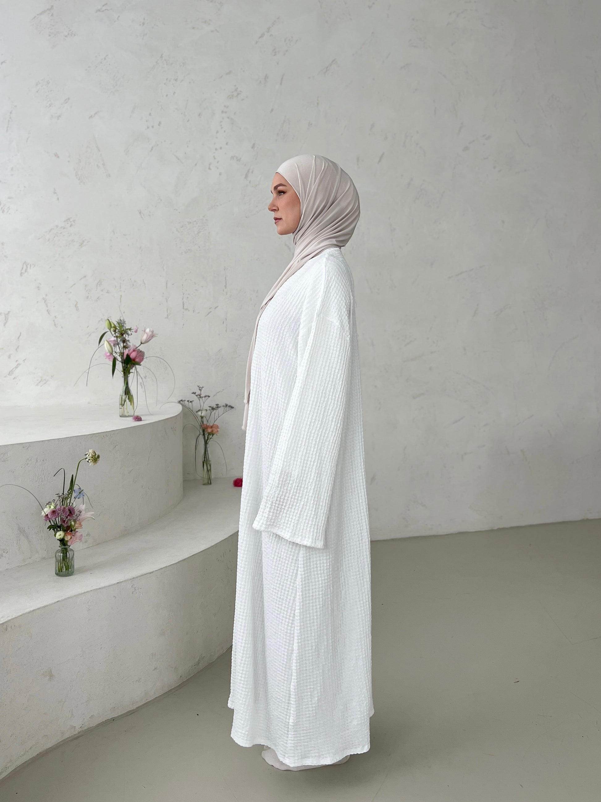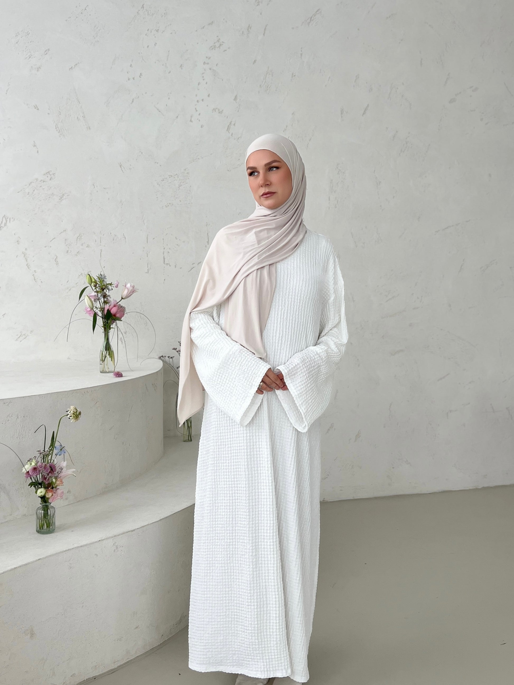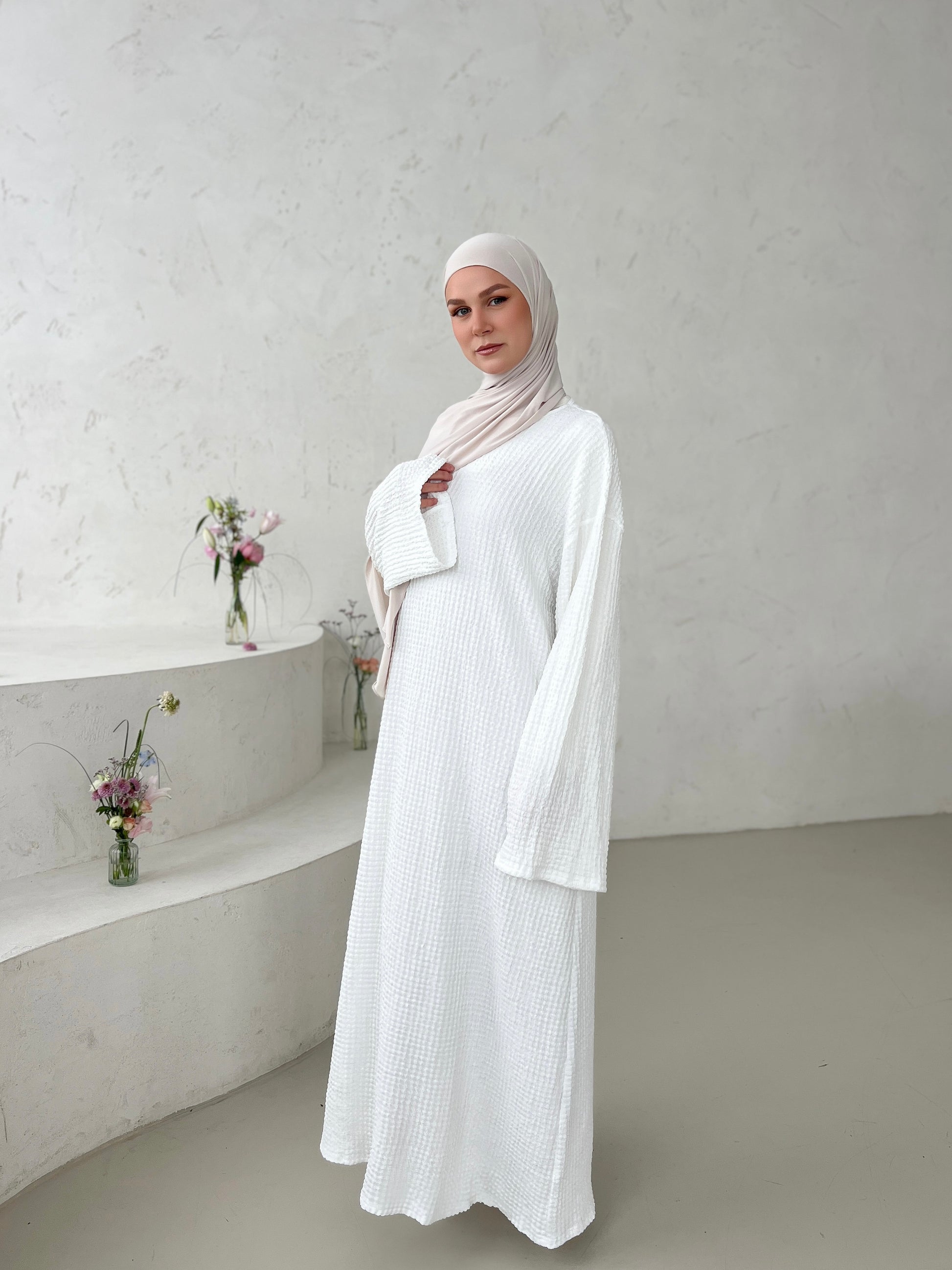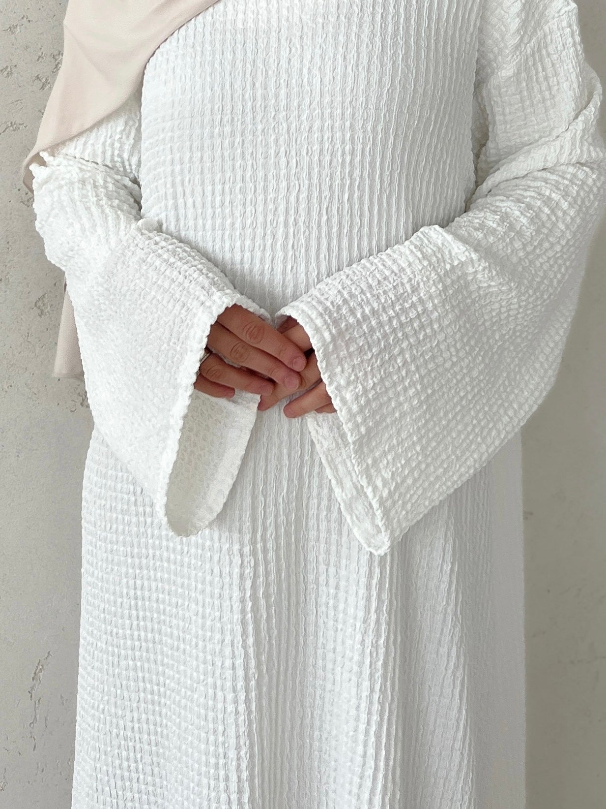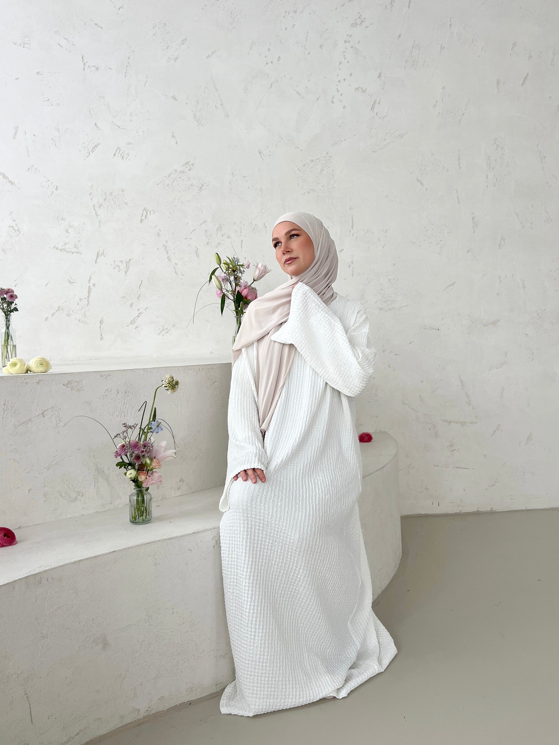 Das Daisy Dress vereint zeitlose Eleganz mit einem angenehm leichten Tragegefühl. Hergestellt aus feinem Strukturstoff, fällt es fließend und sorgt mit seinem lockeren, bodenlangen Schnitt und dem runden Halsausschnitt für eine stilvolle, dezente Silhouette – ganz im Sinne von Modest Fashion.