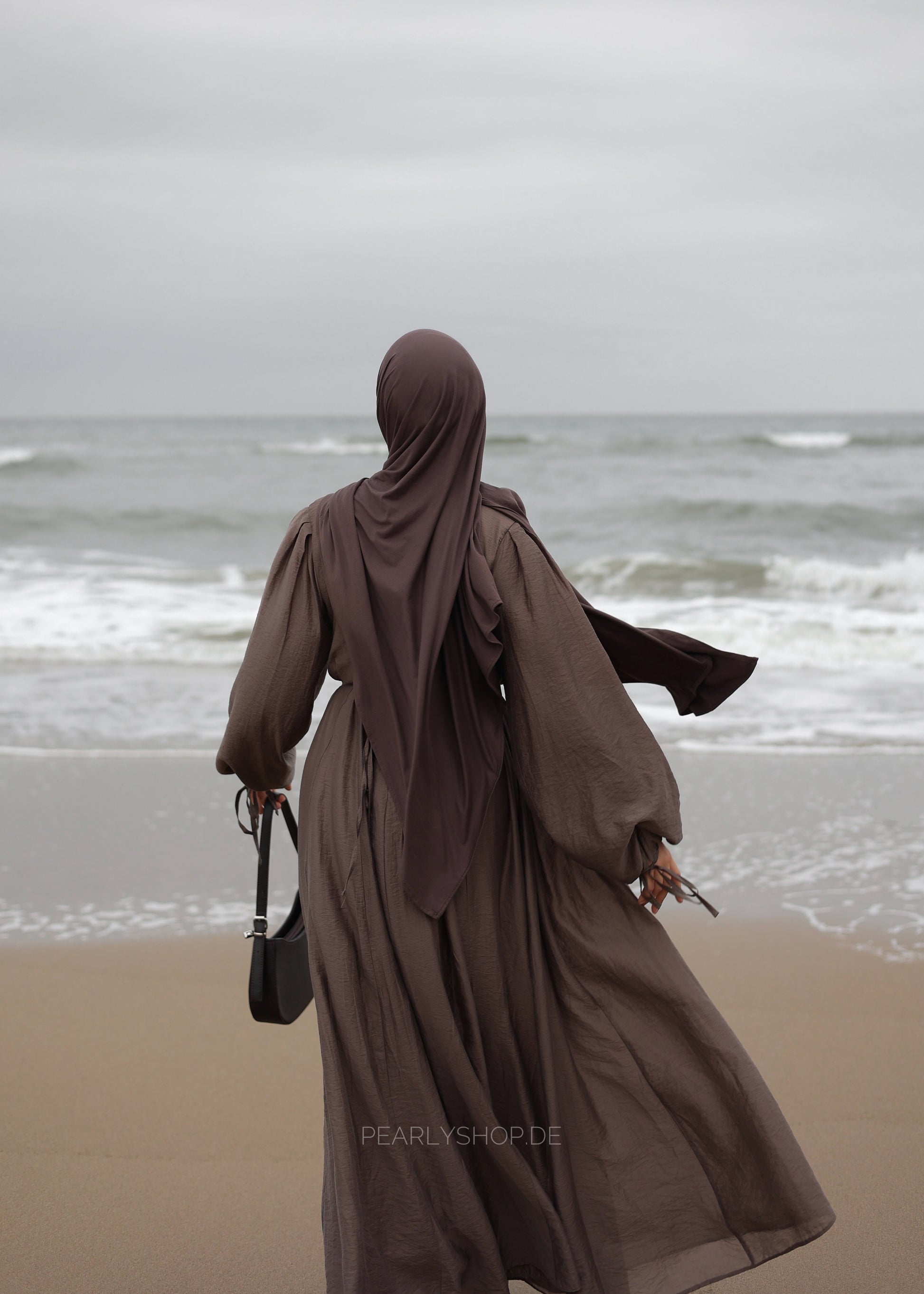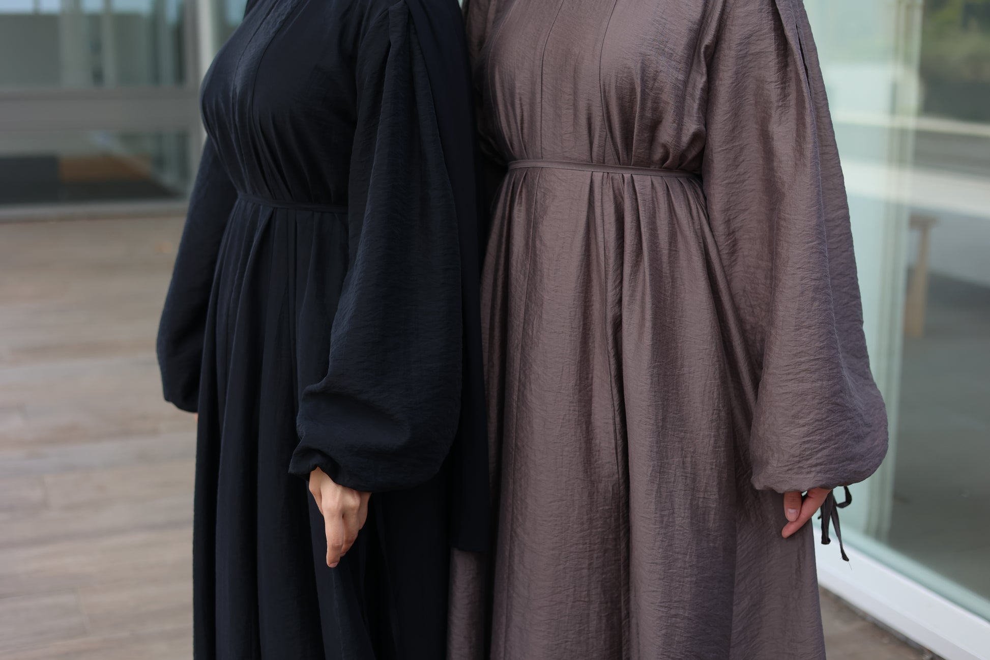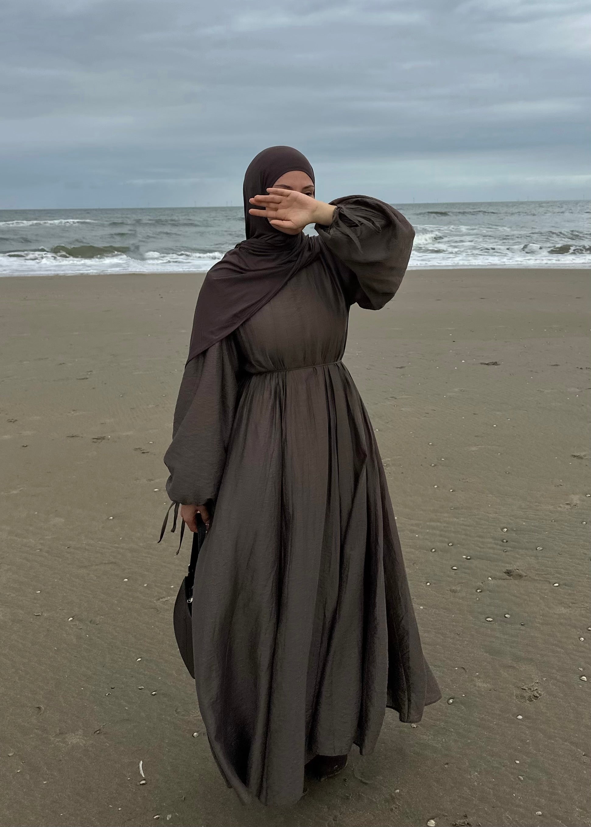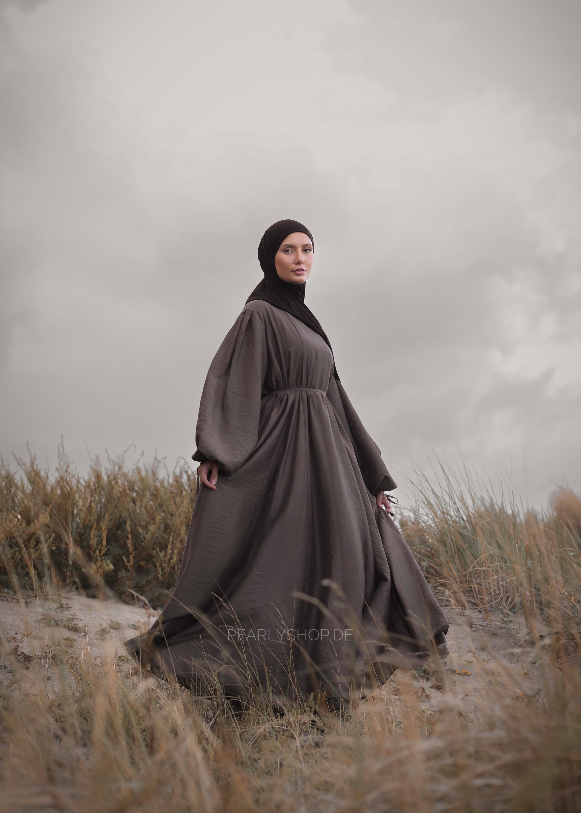 Dieses elegante Maxi-Kleid vereint Schlichtheit mit Eleganz. Der fließende Stoff fällt sanft und sorgt für einen angenehmen Tragekomfort. Mit seinen weiten, ballonartigen Ärmeln und der lockeren Passform bietet das Kleid nicht nur Bewegungsfreiheit, sondern auch eine dezente, stilvolle Silhouette.
