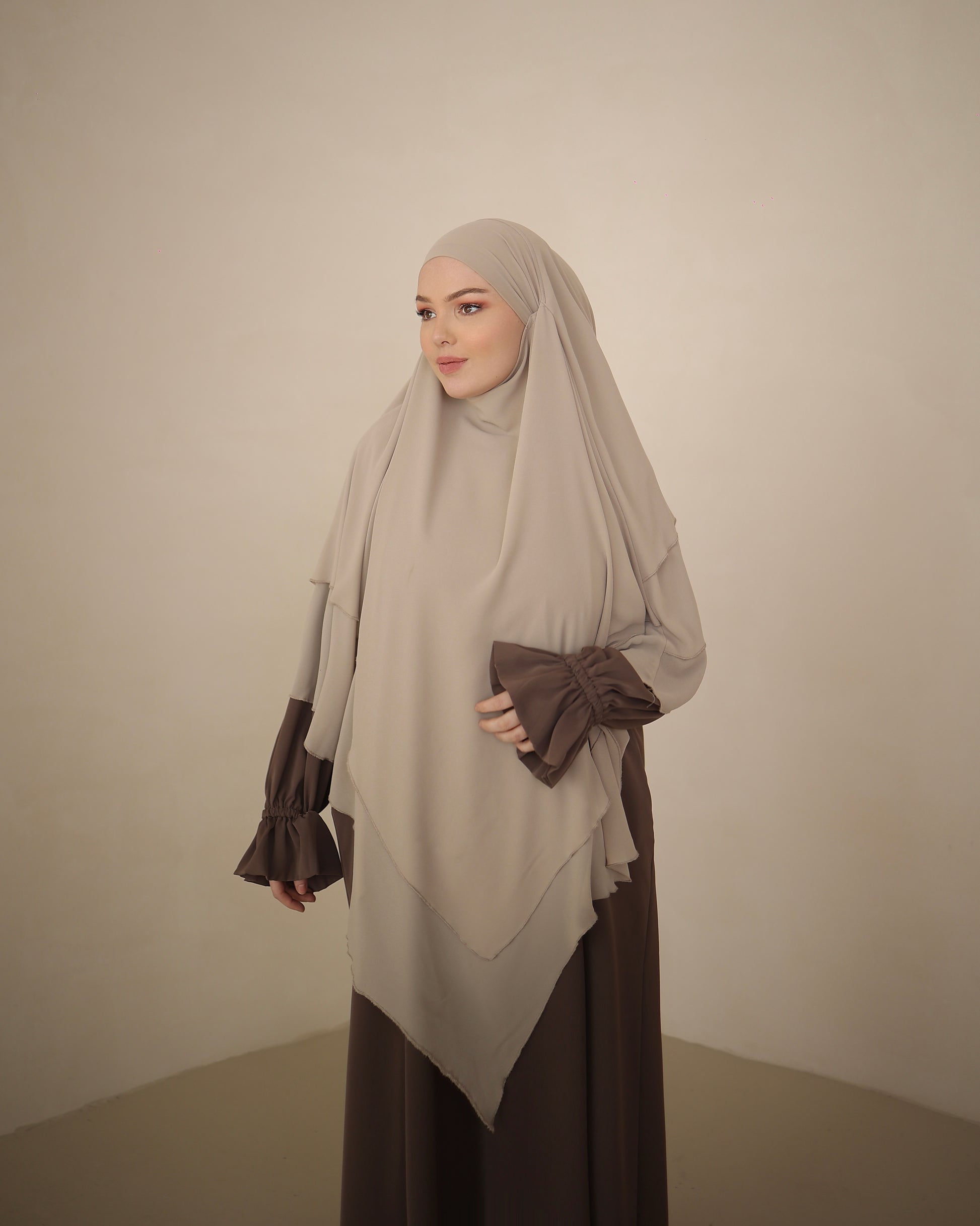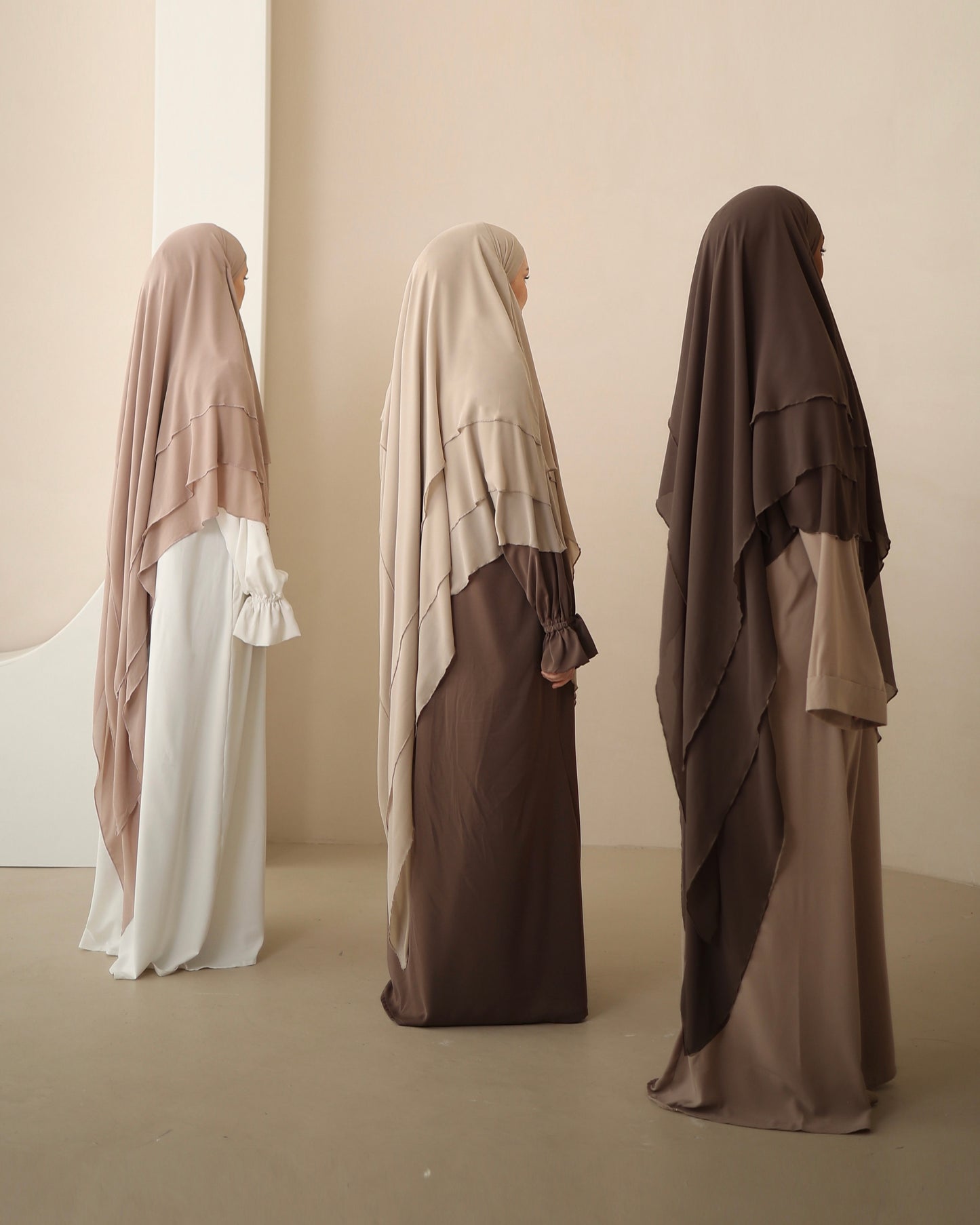 Composée de 5 couleurs limitées de nos khimars en mousseline à trois couches, cette collection reflète la beauté des couleurs douces.