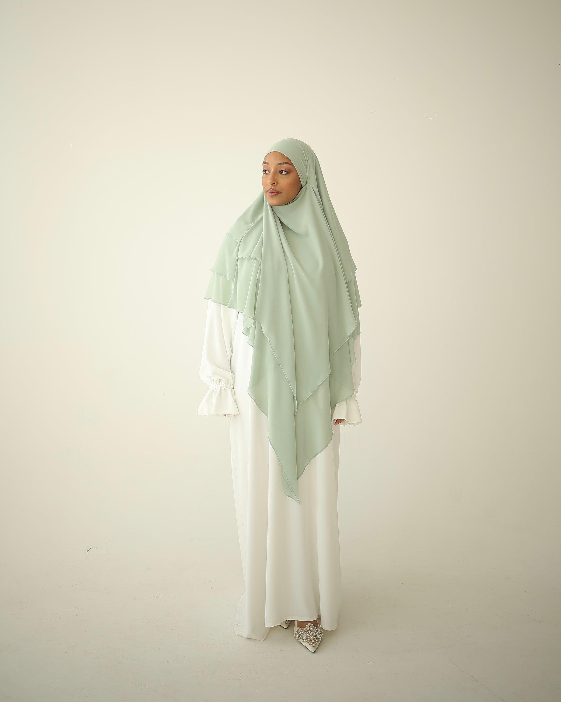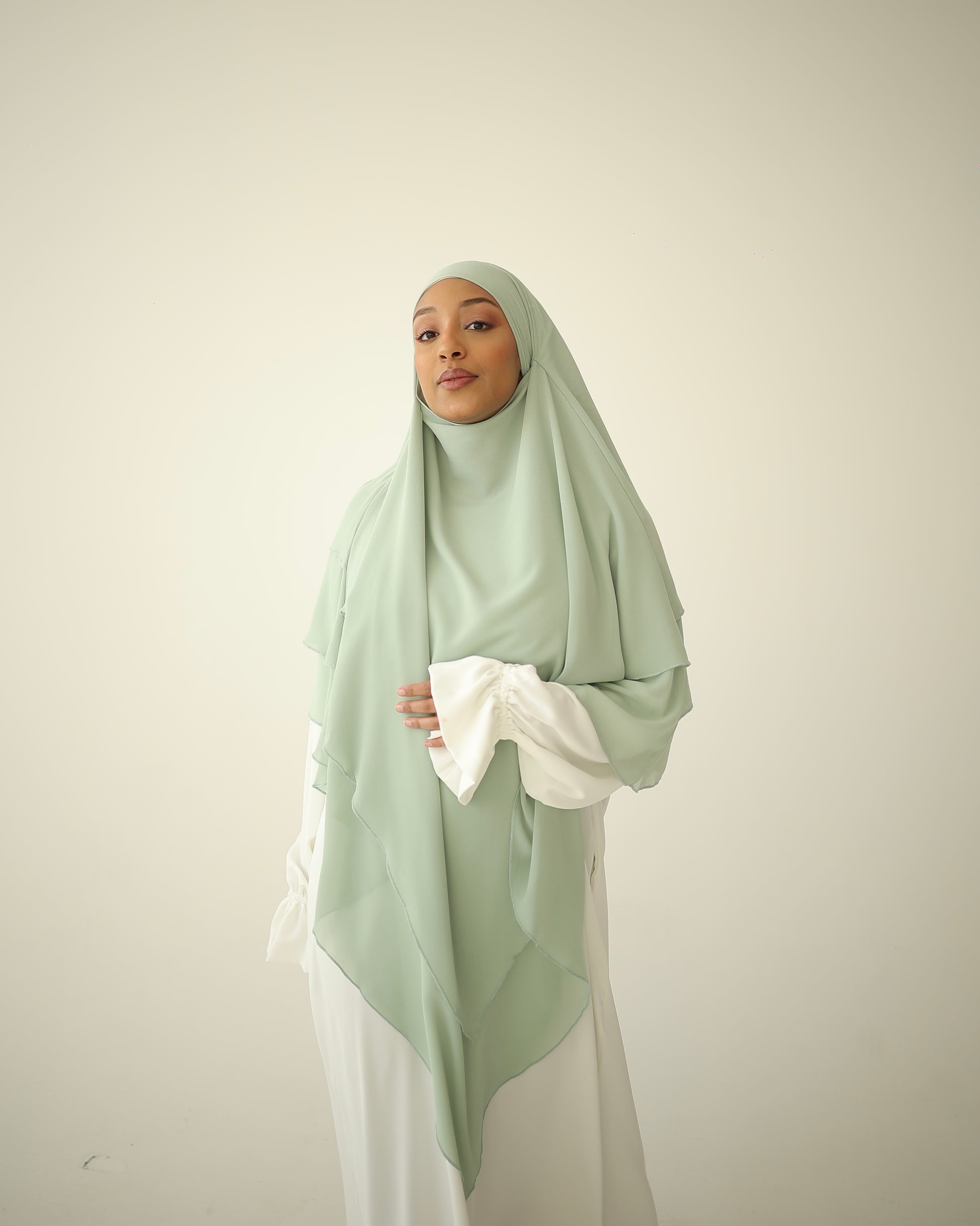 Fabriqués à partir de mousseline de soie de haute qualité, nos khimars en mousseline offrent une ampleur luxueuse et un beau drapé. La longueur généreuse et le manche souple assurent un confort maximal avec une couverture optimale. Avec son design romantique, ce khimar est parfait pour toutes les occasions et donne à votre visage le plus beau cadre ! N'hésitez pas à l'essayer, nous l'ADORONS !
