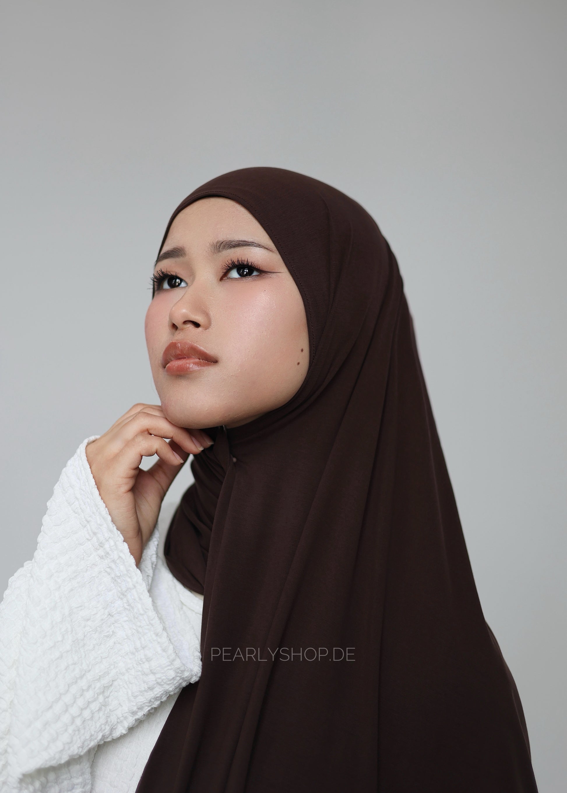 Das PEARLY Breathable Hijab überzeugt mit einer edlen, fast samtig wirkenden Oberfläche, die außergewöhnlich glatt aussieht, ganz ohne Knitter oder störende Struktur. Auch nach dem Waschen bleibt der Stoff, einfach aufgehängt, wunderbar glatt, sodass er nicht gebügelt werden muss und sofort wieder getragen werden kann. Anders als viele herkömmliche Jersey-Hijabs, die schnell sportlich wirken, bringt dieses Modell eine klare, elegante Note mit.