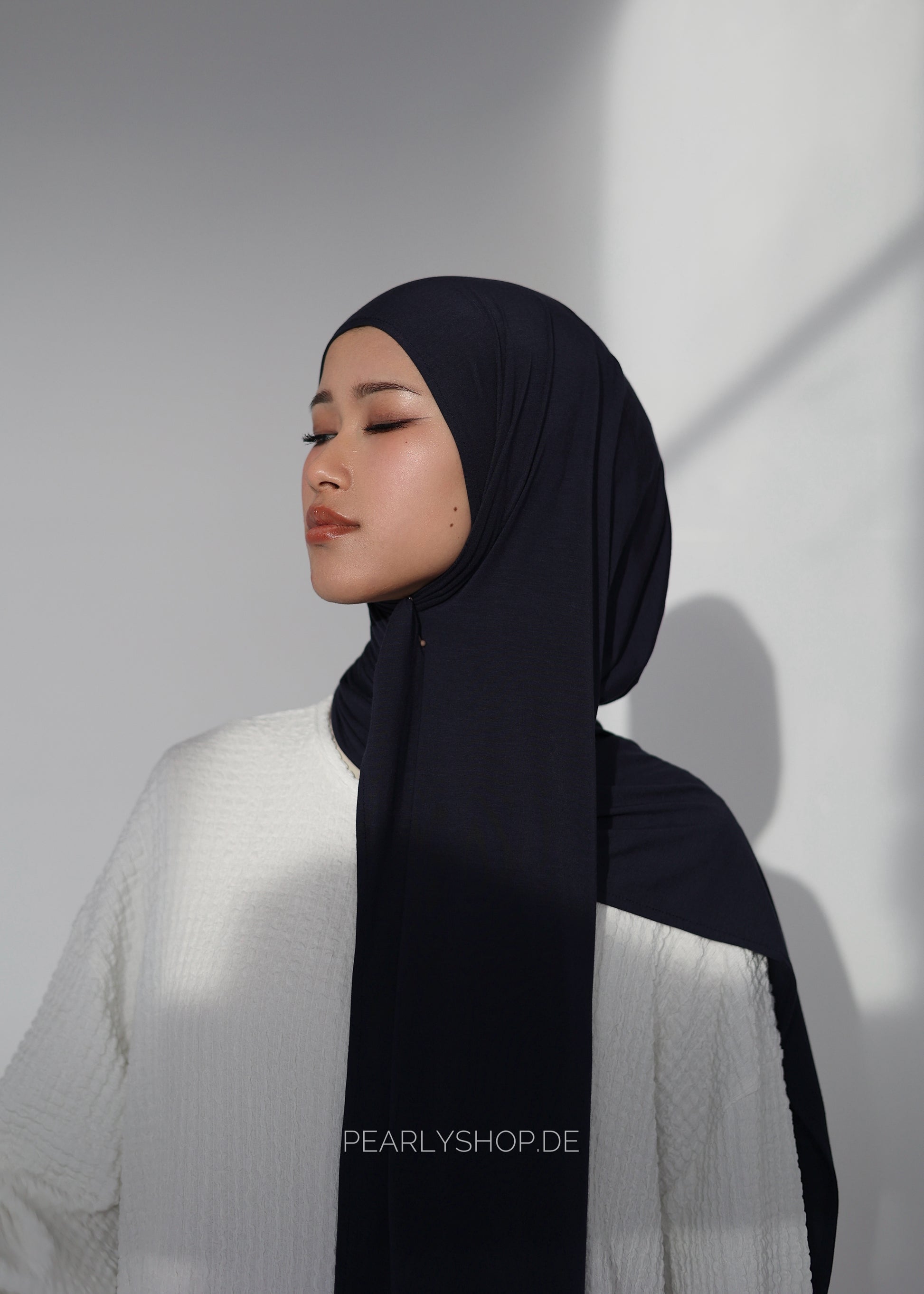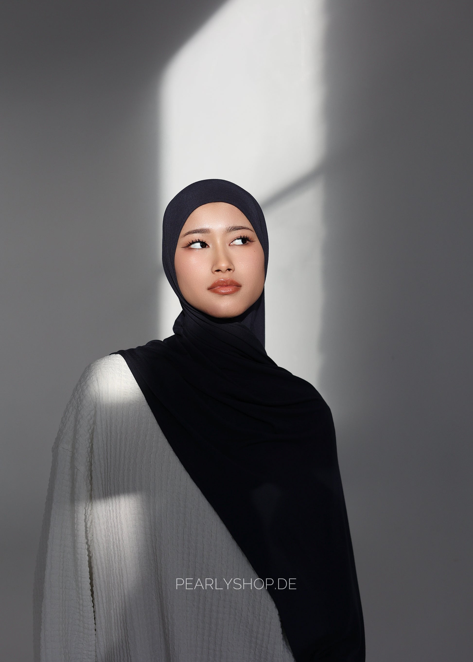 Der PEARLY DAILY Jersey Hijab überzeugt mit einer wunderbar weichen, natürlichen Oberfläche, die sofort ein Gefühl von Komfort vermittelt. Der hochwertige Bambus-Jersey liegt angenehm glatt auf der Haut, wirkt weder schwer noch künstlich und behält auch nach häufigem Tragen und Waschen seine feine, gleichmäßige Struktur. Einfach aufgehängt, trocknet er schön glatt und ist sofort wieder einsatzbereit. Ideal für alle, die es unkompliziert mögen.