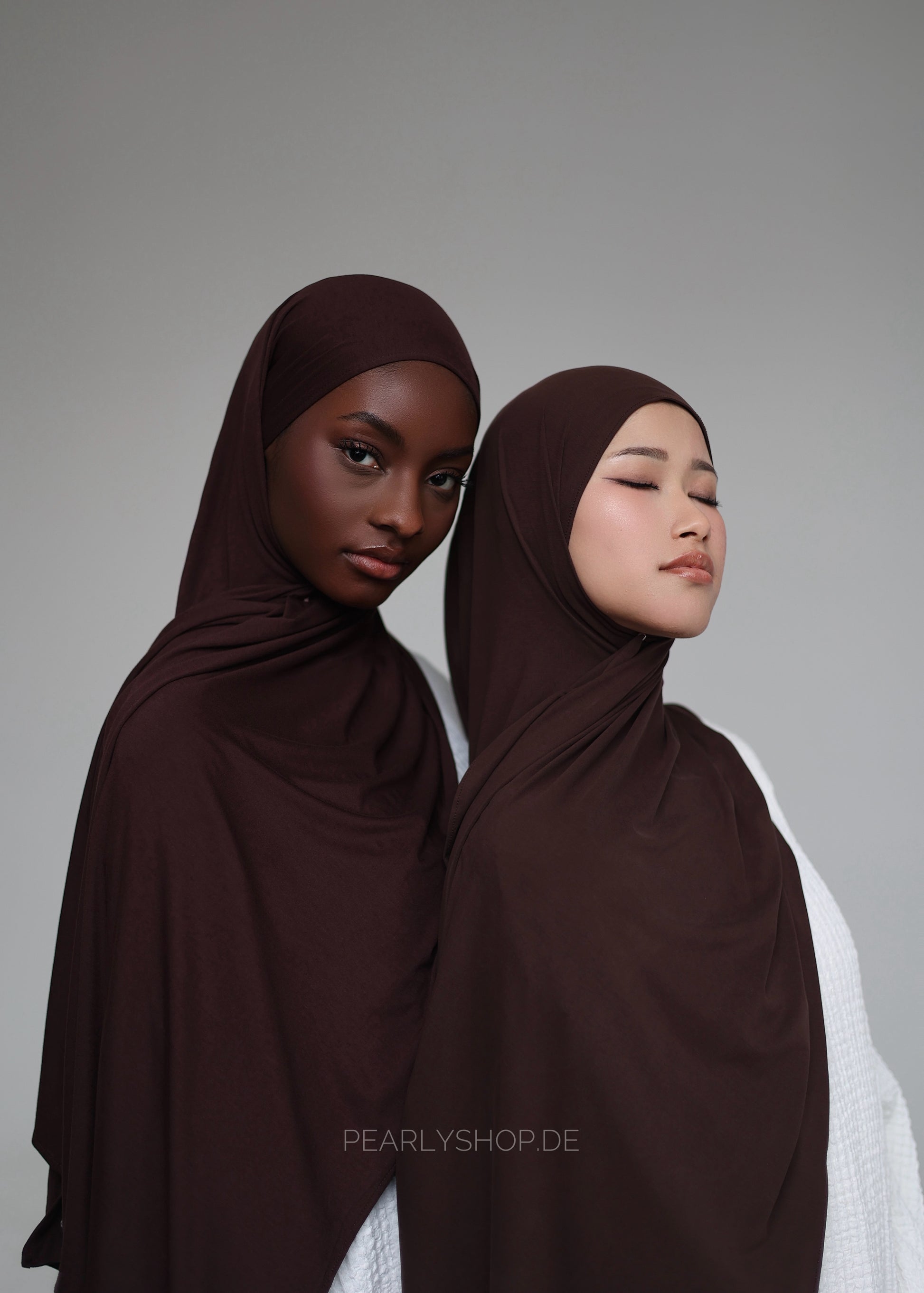 Der PEARLY DAILY Jersey Hijab überzeugt mit einer wunderbar weichen, natürlichen Oberfläche, die sofort ein Gefühl von Komfort vermittelt. Der hochwertige Bambus-Jersey liegt angenehm glatt auf der Haut, wirkt weder schwer noch künstlich und behält auch nach häufigem Tragen und Waschen seine feine, gleichmäßige Struktur. Einfach aufgehängt, trocknet er schön glatt und ist sofort wieder einsatzbereit. Ideal für alle, die es unkompliziert mögen.
