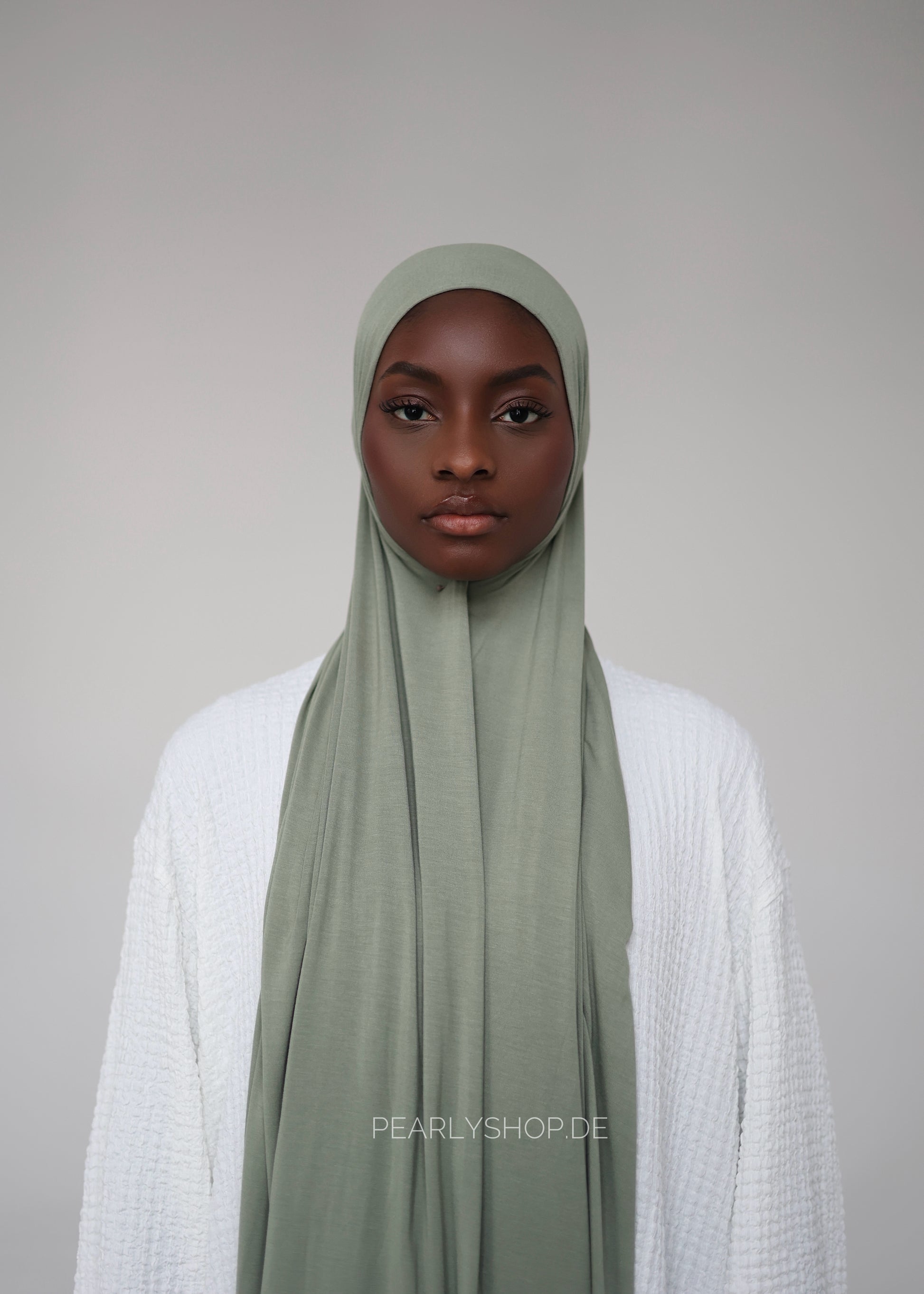 Der PEARLY DAILY Jersey Hijab überzeugt mit einer wunderbar weichen, natürlichen Oberfläche, die sofort ein Gefühl von Komfort vermittelt. Der hochwertige Bambus-Jersey liegt angenehm glatt auf der Haut, wirkt weder schwer noch künstlich und behält auch nach häufigem Tragen und Waschen seine feine, gleichmäßige Struktur. Einfach aufgehängt, trocknet er schön glatt und ist sofort wieder einsatzbereit. Ideal für alle, die es unkompliziert mögen.