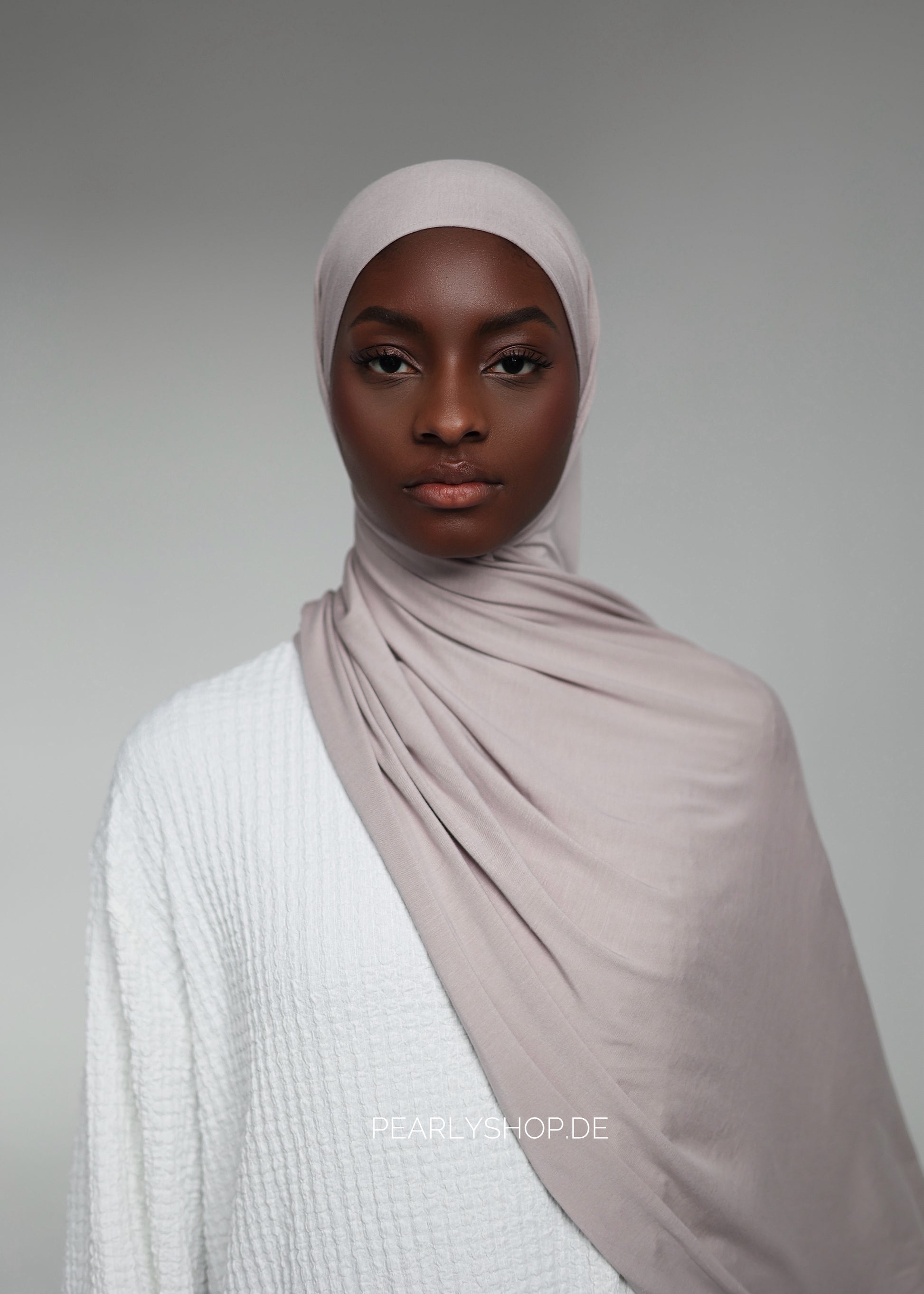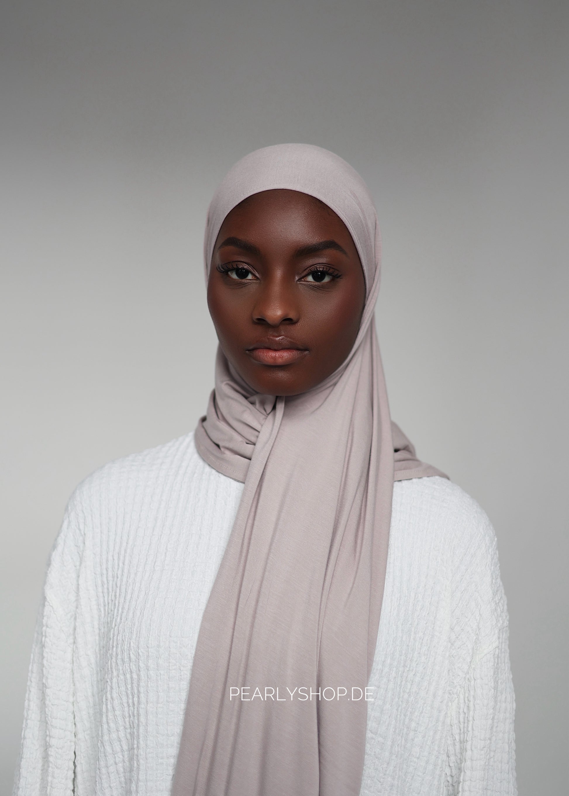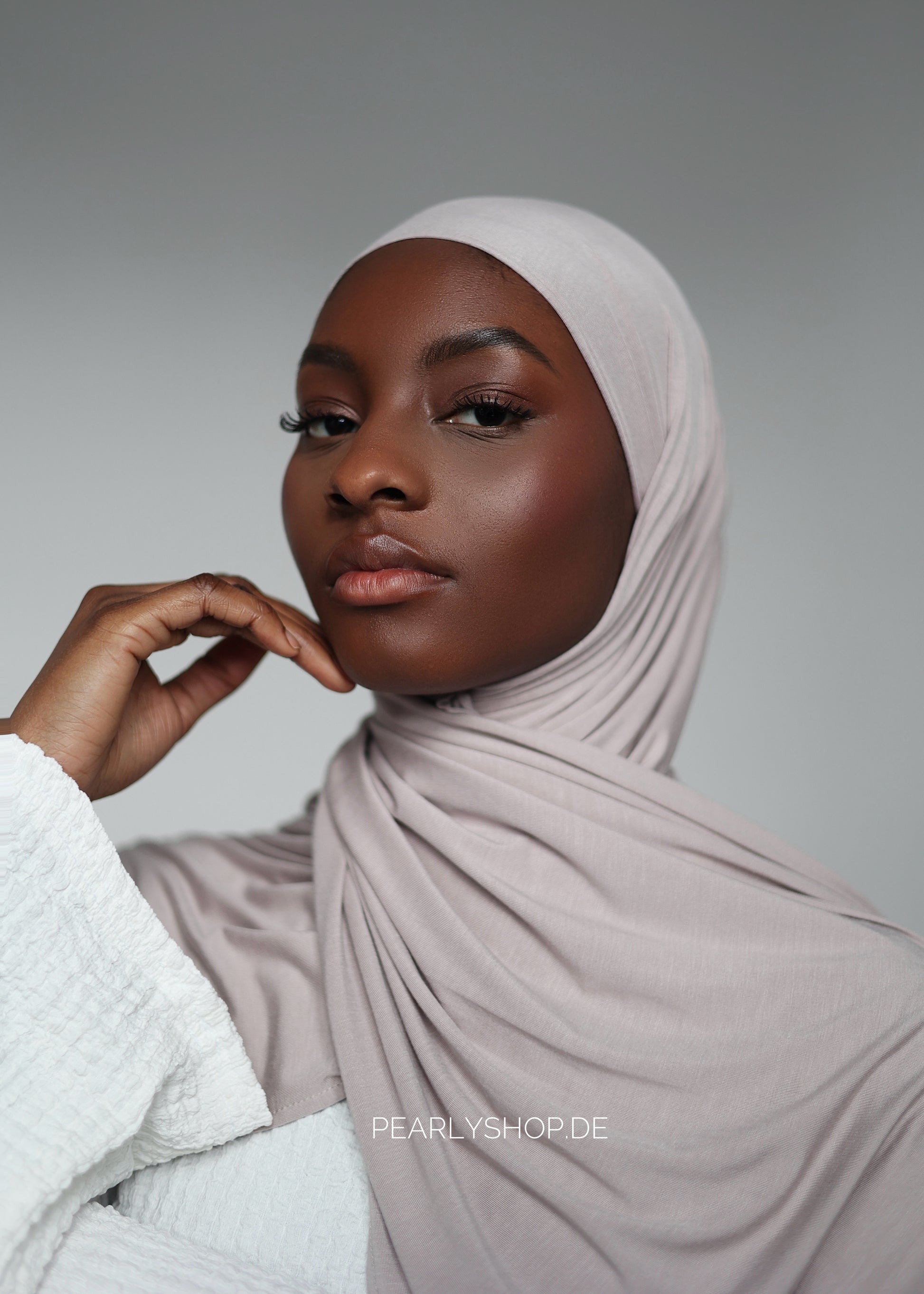 Der PEARLY DAILY Jersey Hijab überzeugt mit einer wunderbar weichen, natürlichen Oberfläche, die sofort ein Gefühl von Komfort vermittelt. Der hochwertige Bambus-Jersey liegt angenehm glatt auf der Haut, wirkt weder schwer noch künstlich und behält auch nach häufigem Tragen und Waschen seine feine, gleichmäßige Struktur. Einfach aufgehängt, trocknet er schön glatt und ist sofort wieder einsatzbereit. Ideal für alle, die es unkompliziert mögen.