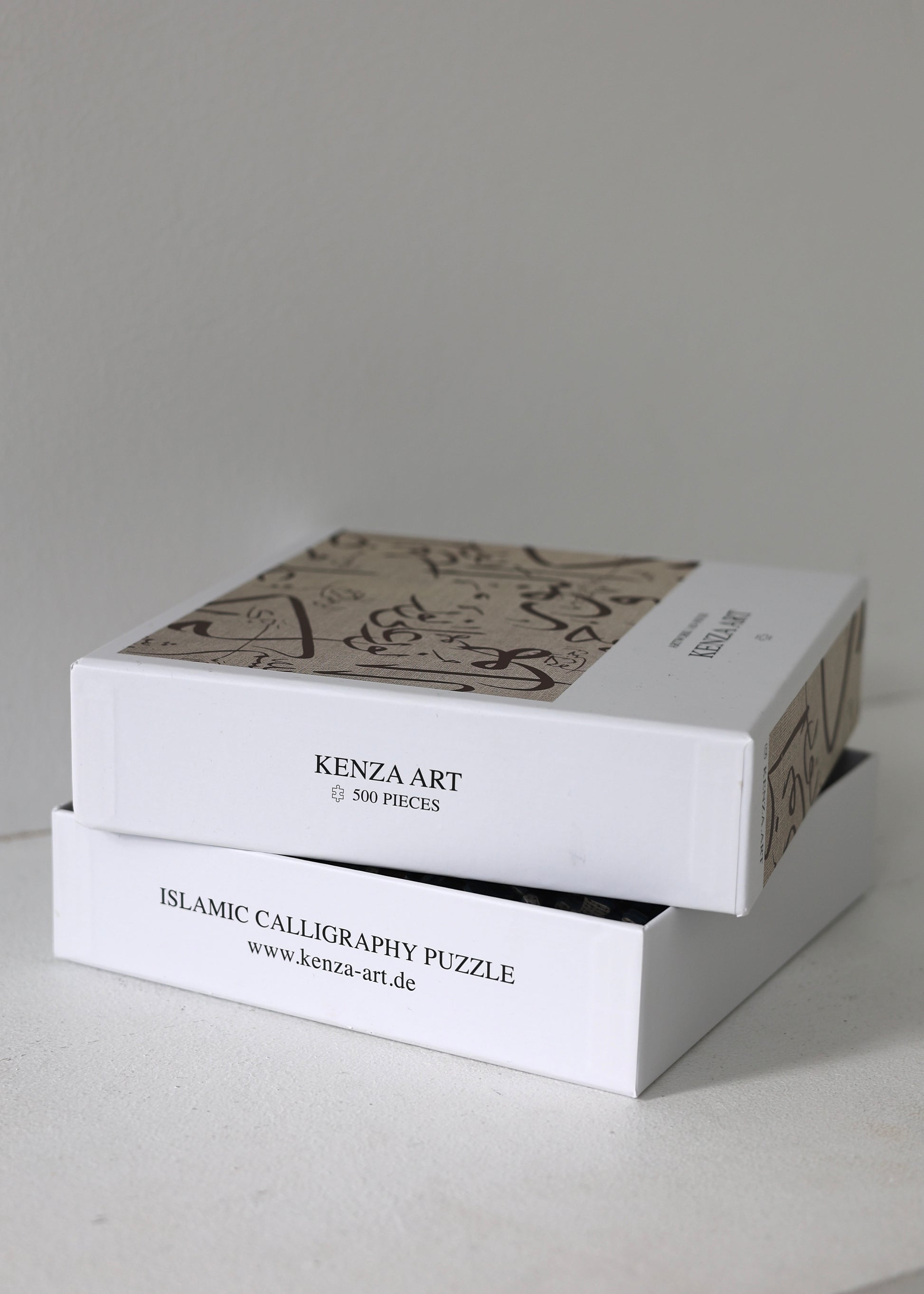 Ce puzzle exclusif de Kenza Art allie la fascination du puzzle à la beauté de la calligraphie islamique. Avec 500 pièces, il offre un défi relaxant et déploie pièce par pièce un motif artistique d'une œuvre d'art originale qui allie harmonieusement culture et design.