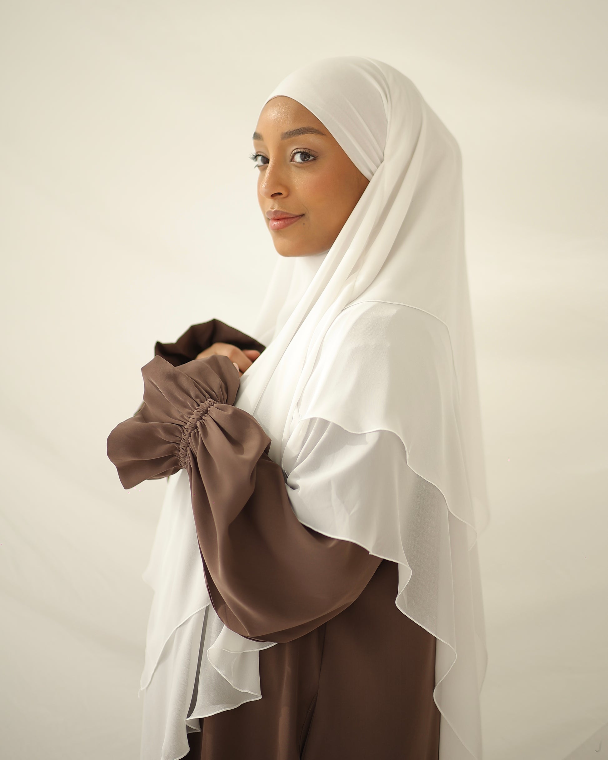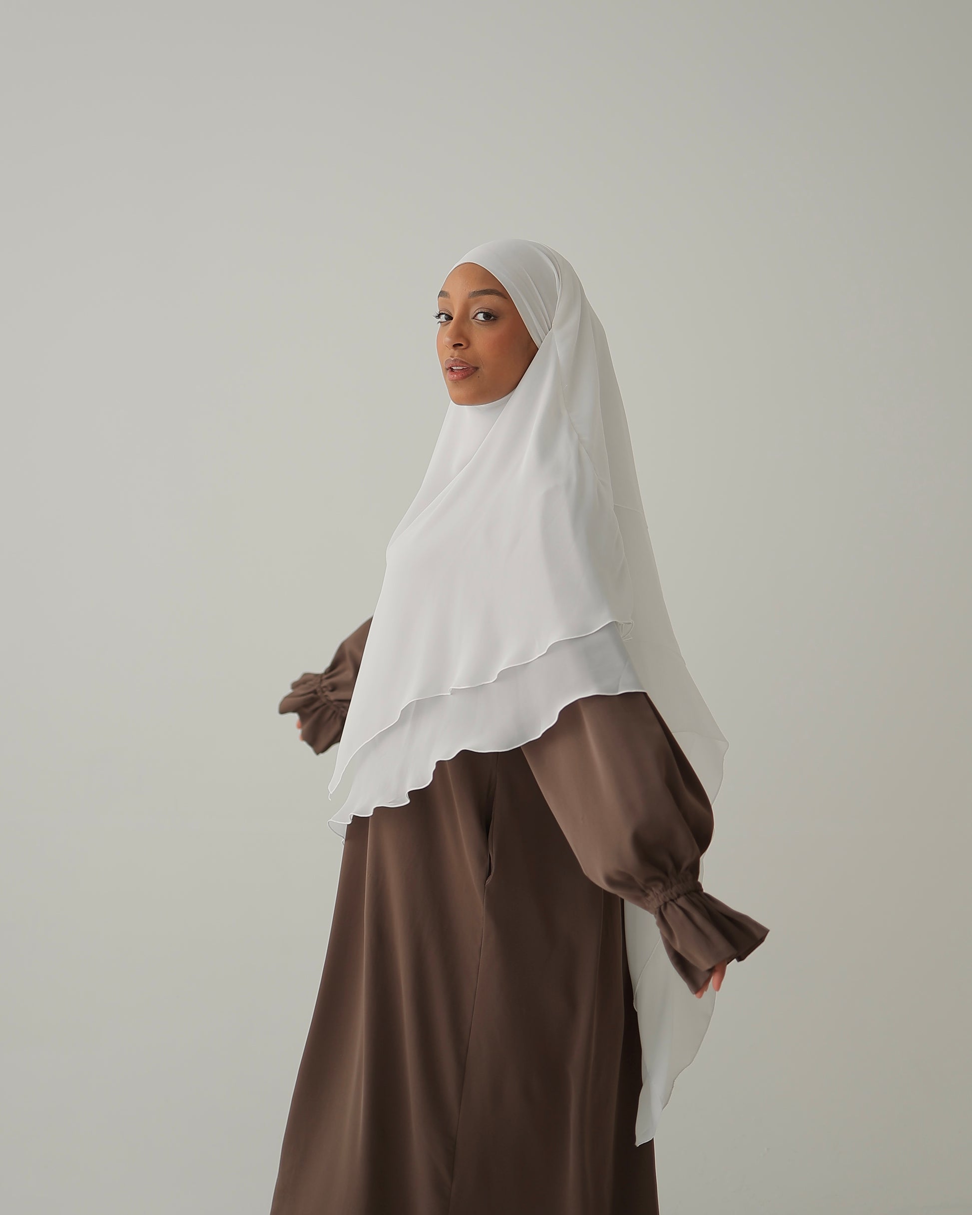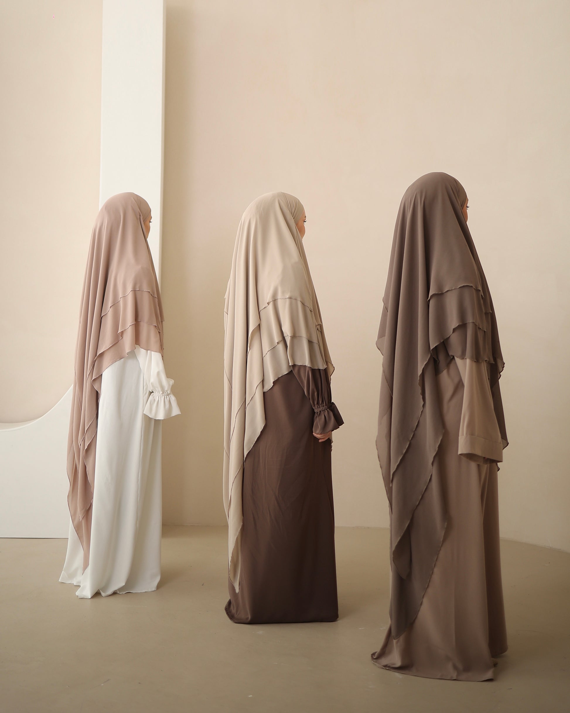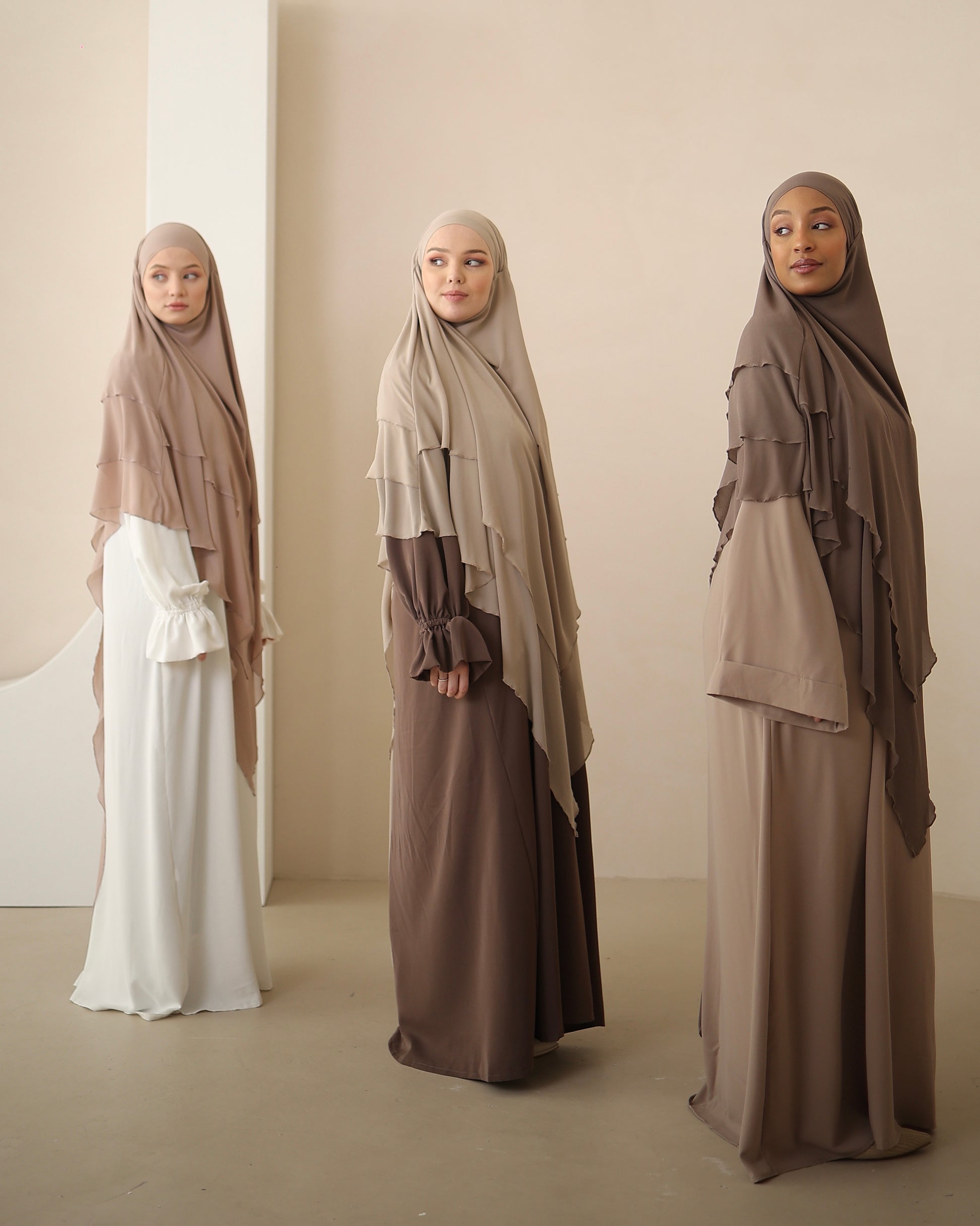 Combo : ici combiné avec notre Khimar en mousseline à trois couches MOON & notre Khimar en mousseline longue DUNE