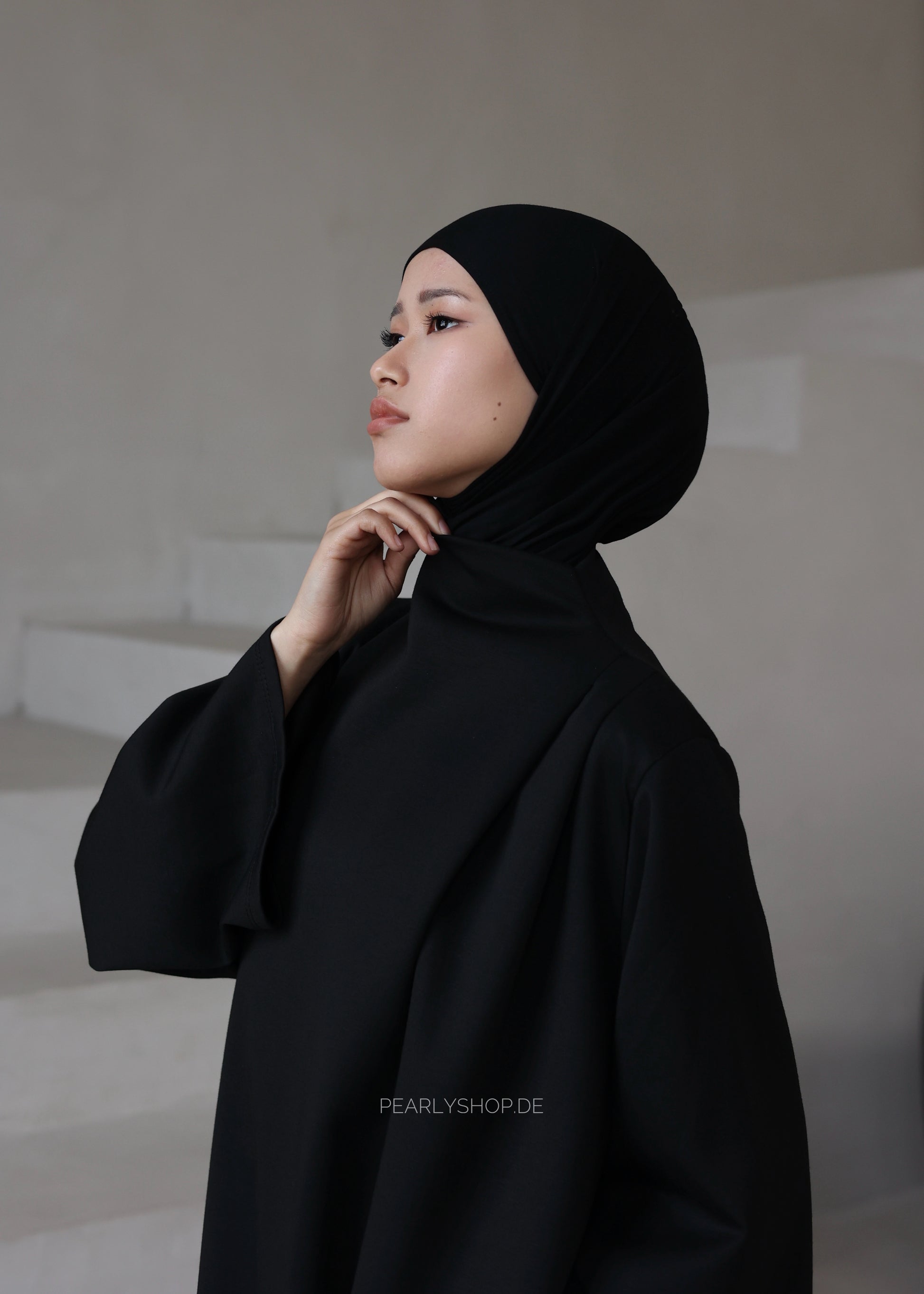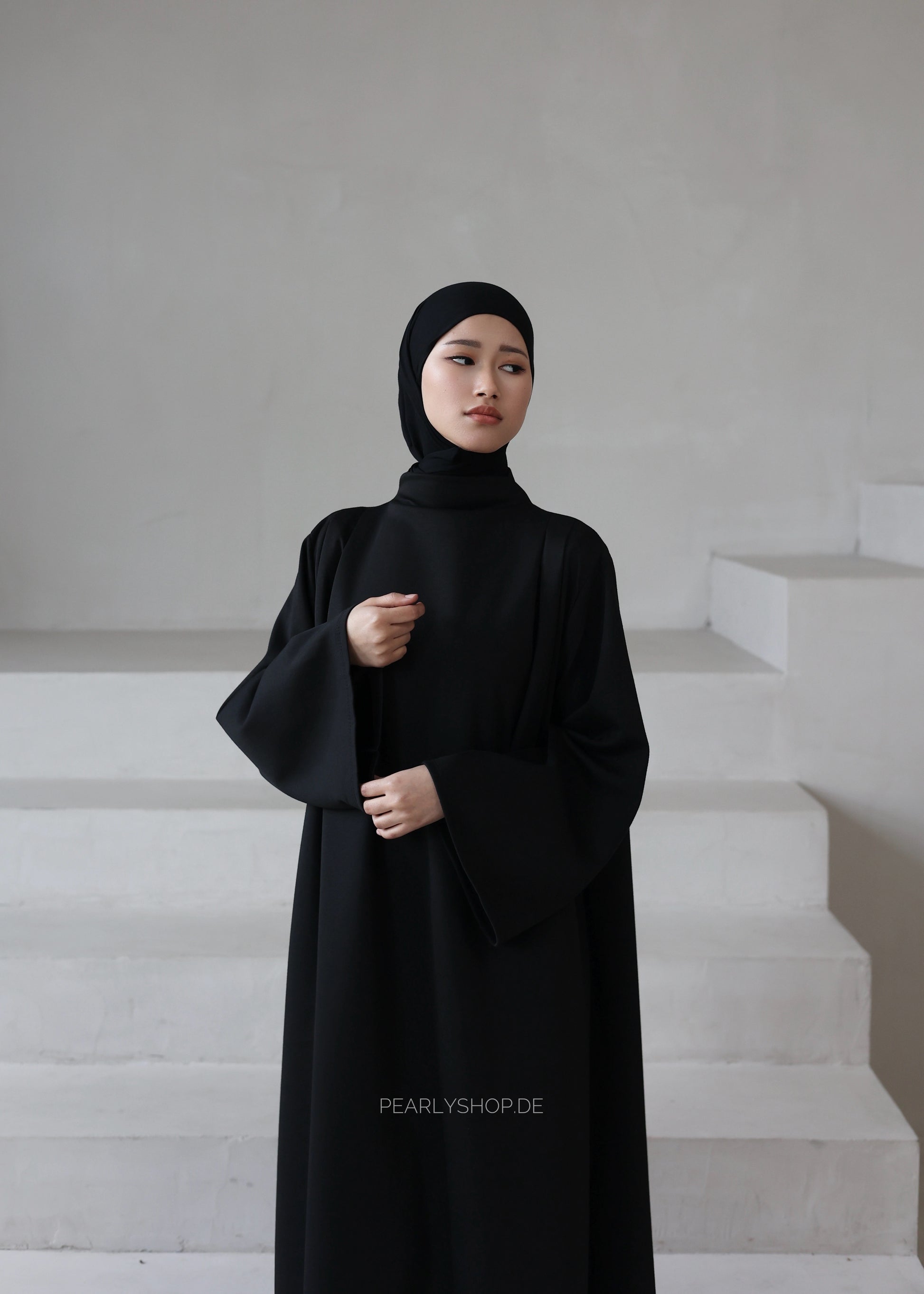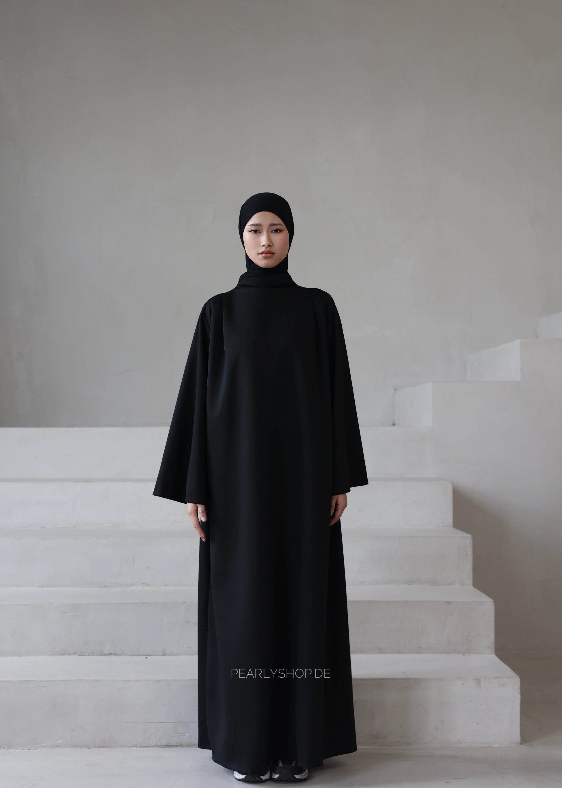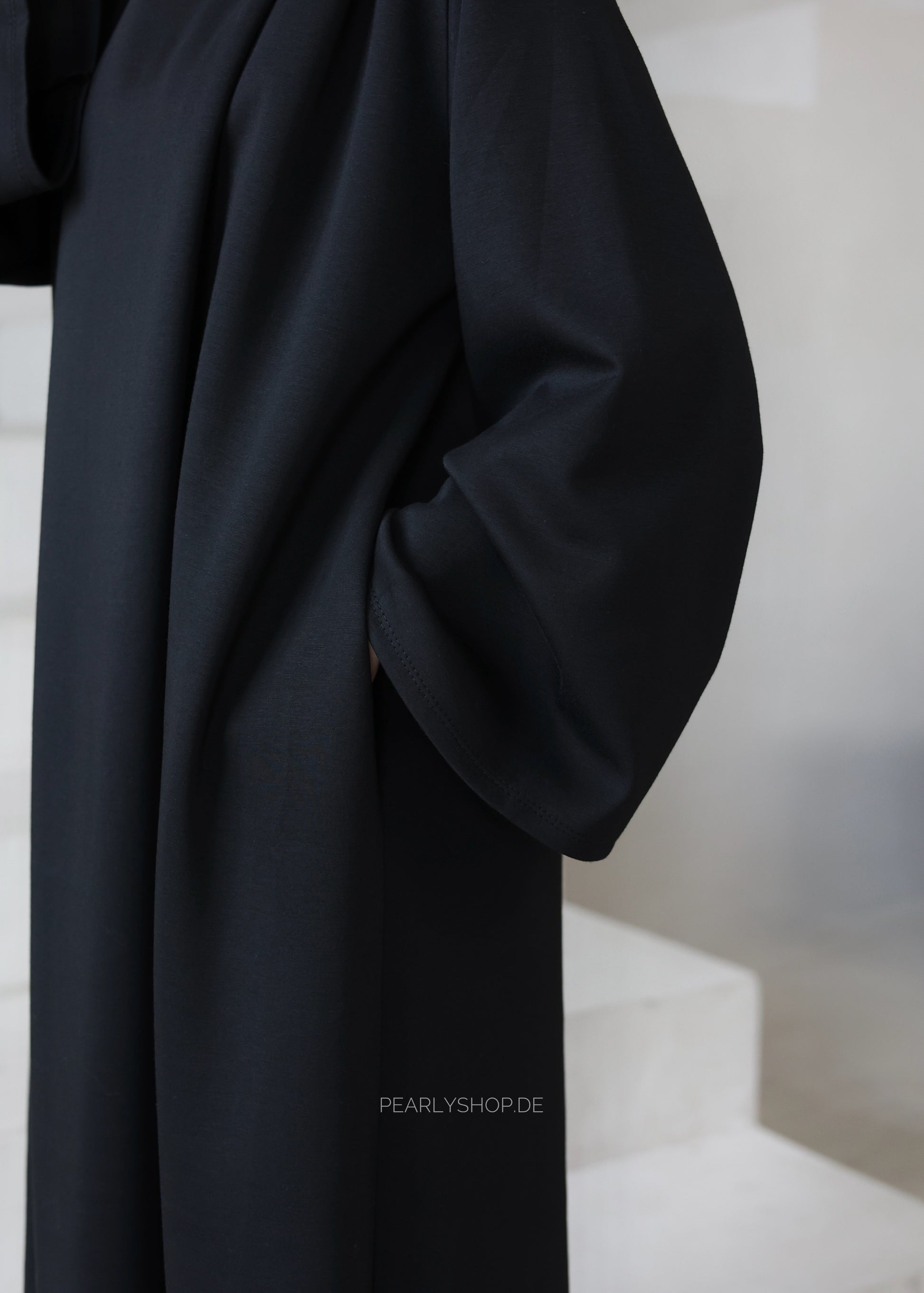 Dieses elegante Maxi-Kleid verbindet modernen, modesten Stil mit hohem Tragekomfort. Der hohe Kragen verleiht dem Design eine klare, zeitlose Linie und sorgt zugleich für eine schöne, bedeckende Optik. Der weite, locker fallende Schnitt mit großzügigen Ärmeln umspielt sanft die Silhouette und bietet maximale Bewegungsfreiheit.