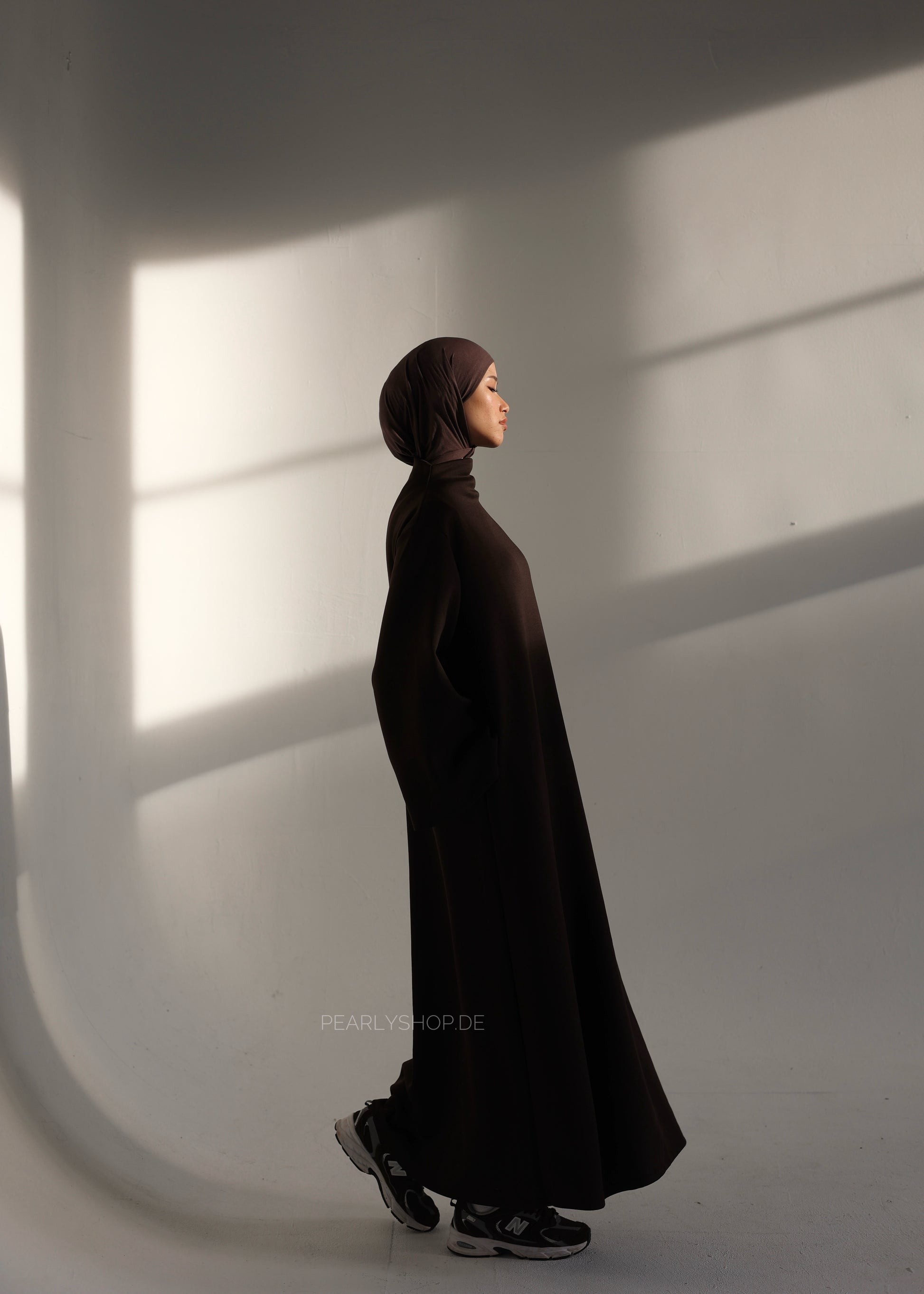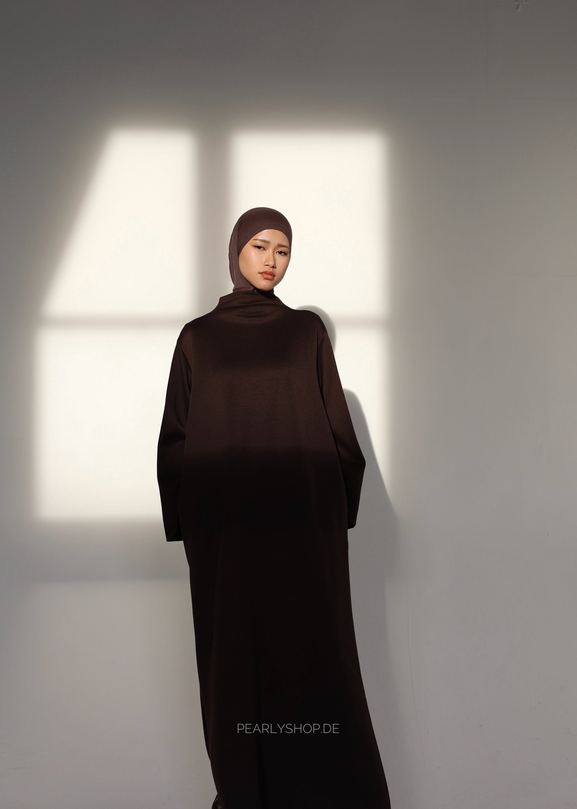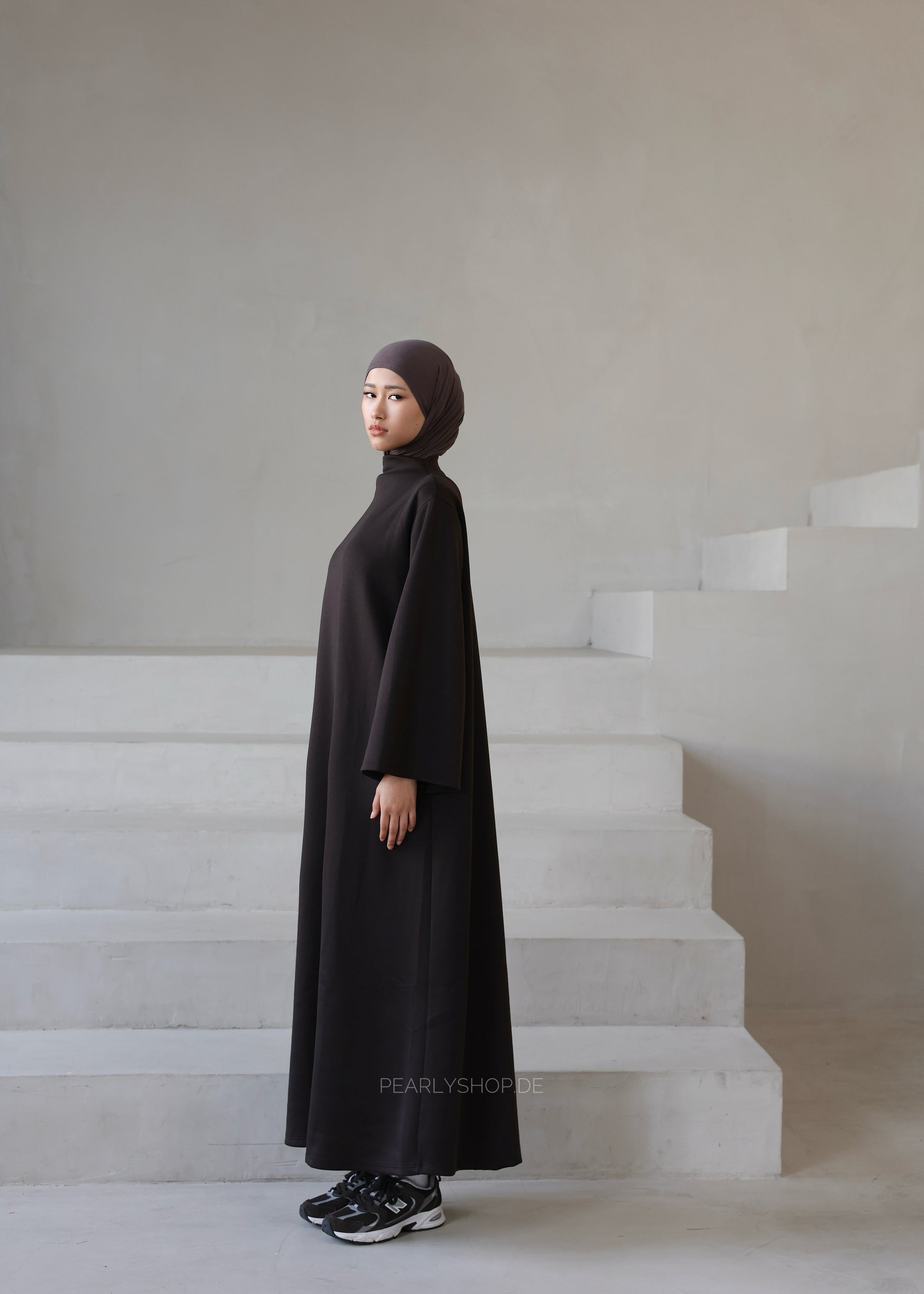 Dieses elegante Maxi-Kleid verbindet modernen, modesten Stil mit hohem Tragekomfort. Der hohe Kragen verleiht dem Design eine klare, zeitlose Linie und sorgt zugleich für eine schöne, bedeckende Optik. Der weite, locker fallende Schnitt mit großzügigen Ärmeln umspielt sanft die Silhouette und bietet maximale Bewegungsfreiheit.