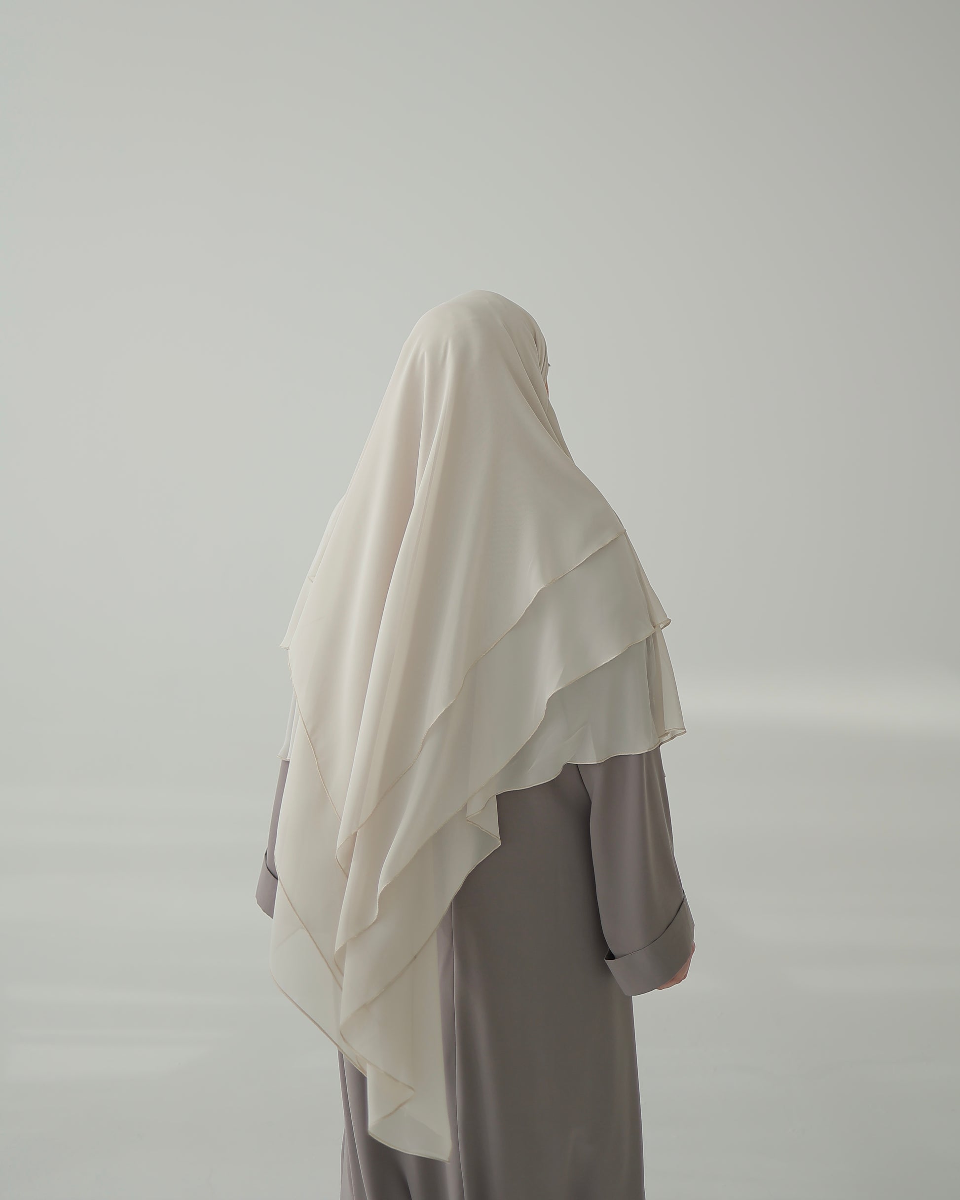 Unser dreilagiger Chiffon Khimar verkörpert schlichte Eleganz mmit maximaler Leichtigkeit. Hergestellt aus hochwertigem Chiffon und vernäht mit größter Präzision, bietet er eine luxuriöse Fülle und einen schönen Fall - und ist dabei ultralcht auf deinem Kopf! Die großzügige Länge und der weiche Griff sorgen für maximalen Tragekomfort bei optimaler Bedeckung. Mit seinem romantischen Design ist dieser Khimar perfekt für jeden Anlass und verleiht deinem Gesicht die schönste Umrandung! Probier‘s unbedingt aus - wir LIEBEN es!
