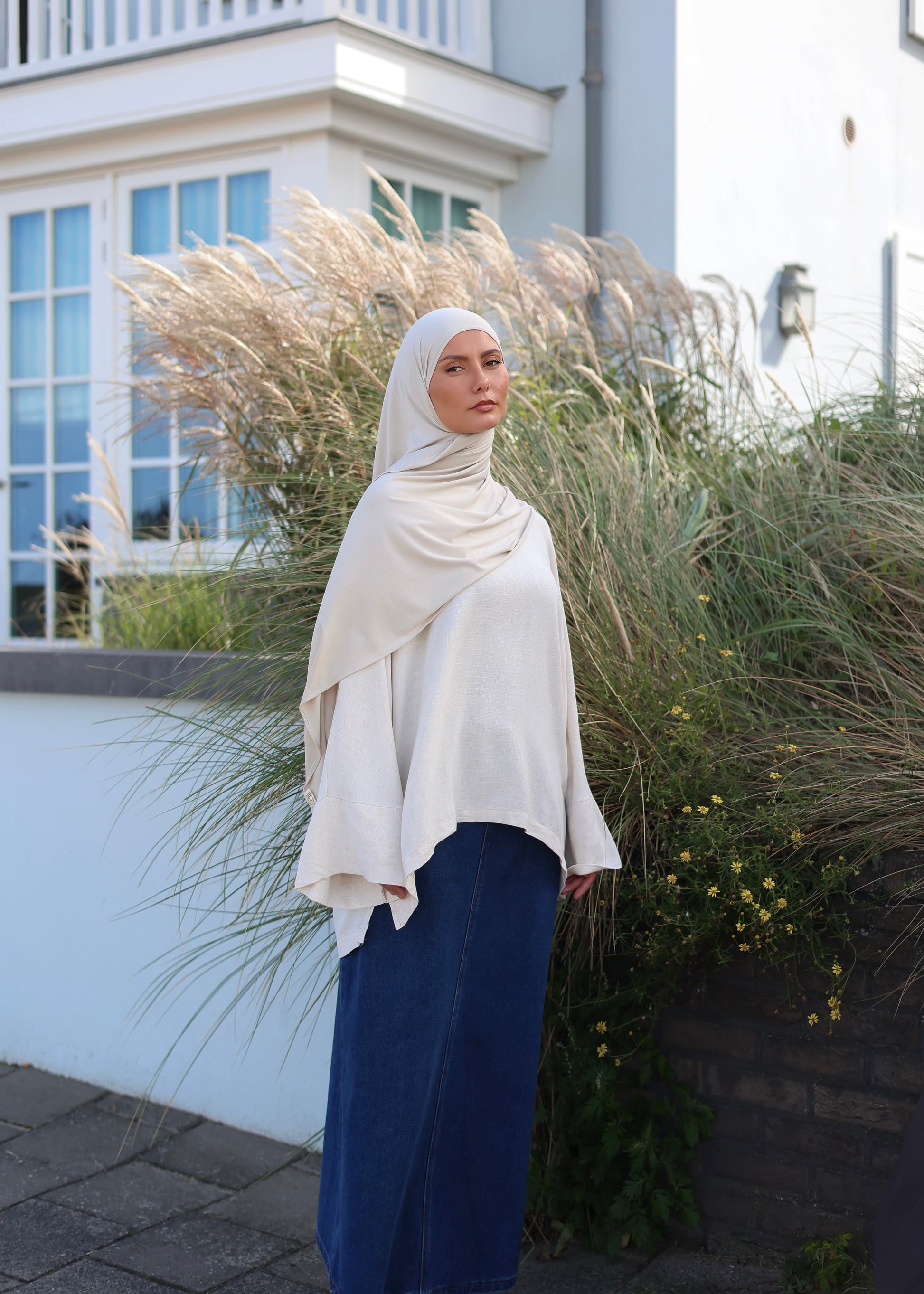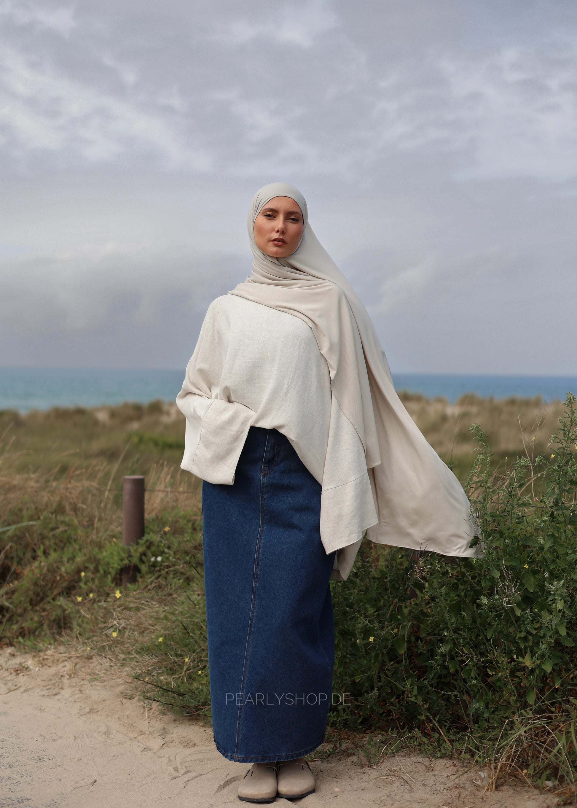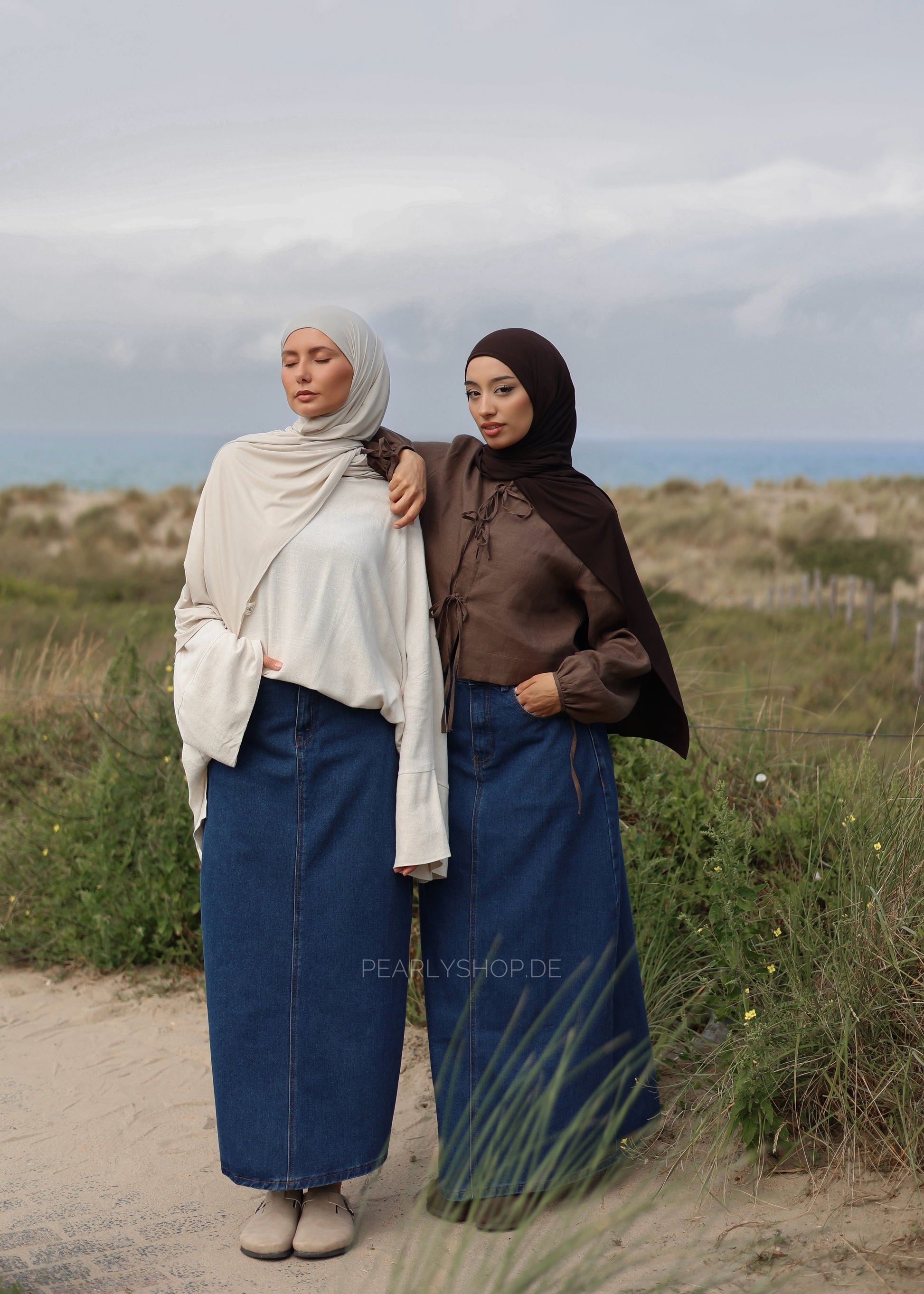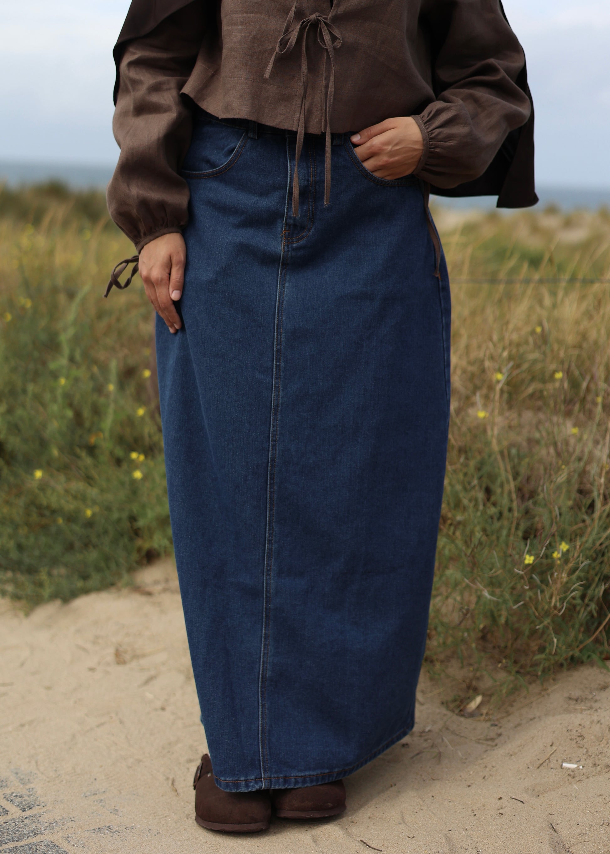 Für modest Denim lover: Entdecken Sie unseren langen Jeansrock, ein modisches Statement, das klassische Denim-Ästhetik mit funktionaler Raffinesse vereint. Die verlängerte Silhouette verleiht dem Rock eine stilvolle Eleganz, während markante Details wie rückseitige sowie seitliche Taschen lässige Akzente setzen und gleichzeitig praktische Trageeigenschaften bieten.