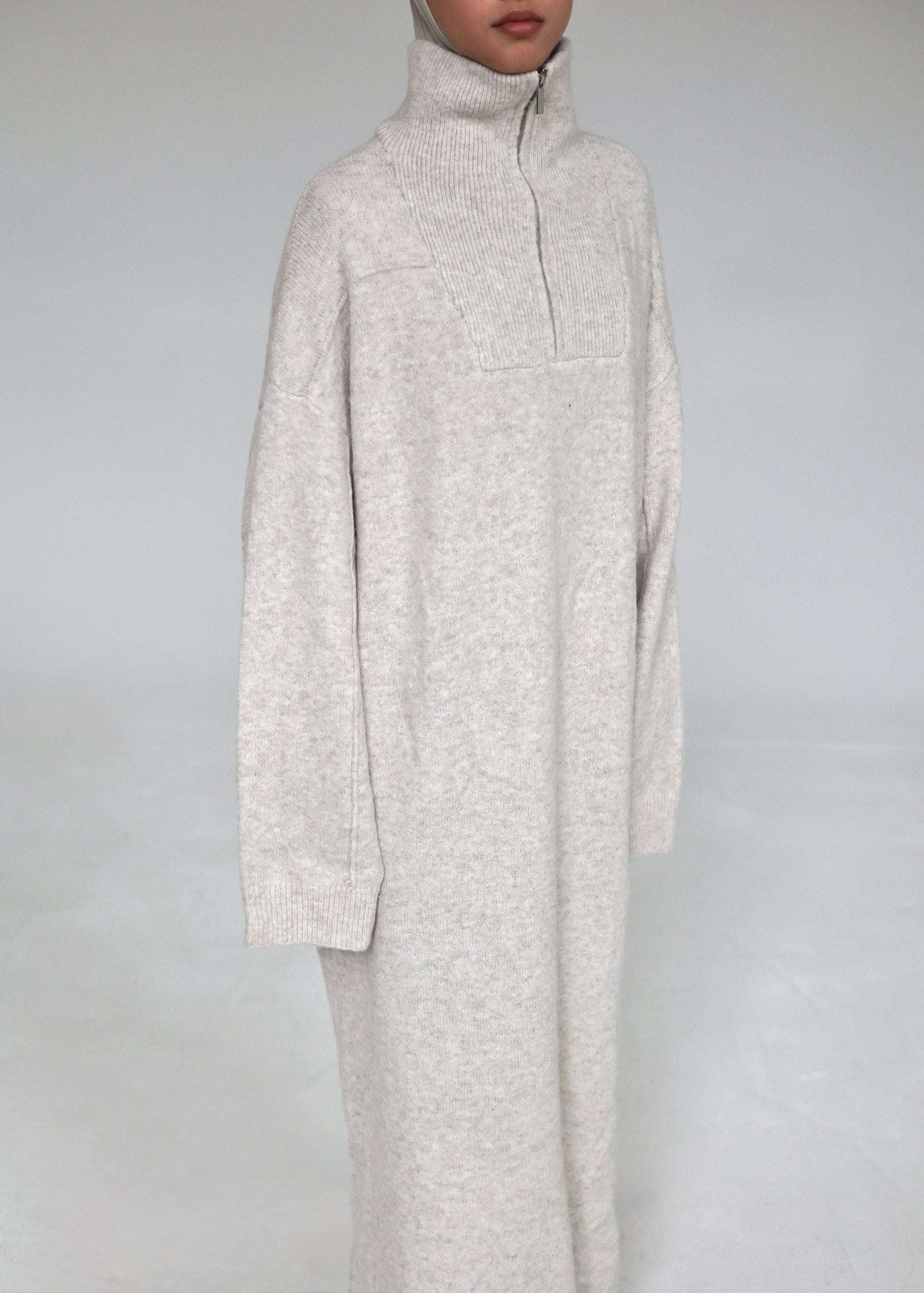 Kuschliges Maxi-Pulloverkleid mit Zipper & Stehkragen
